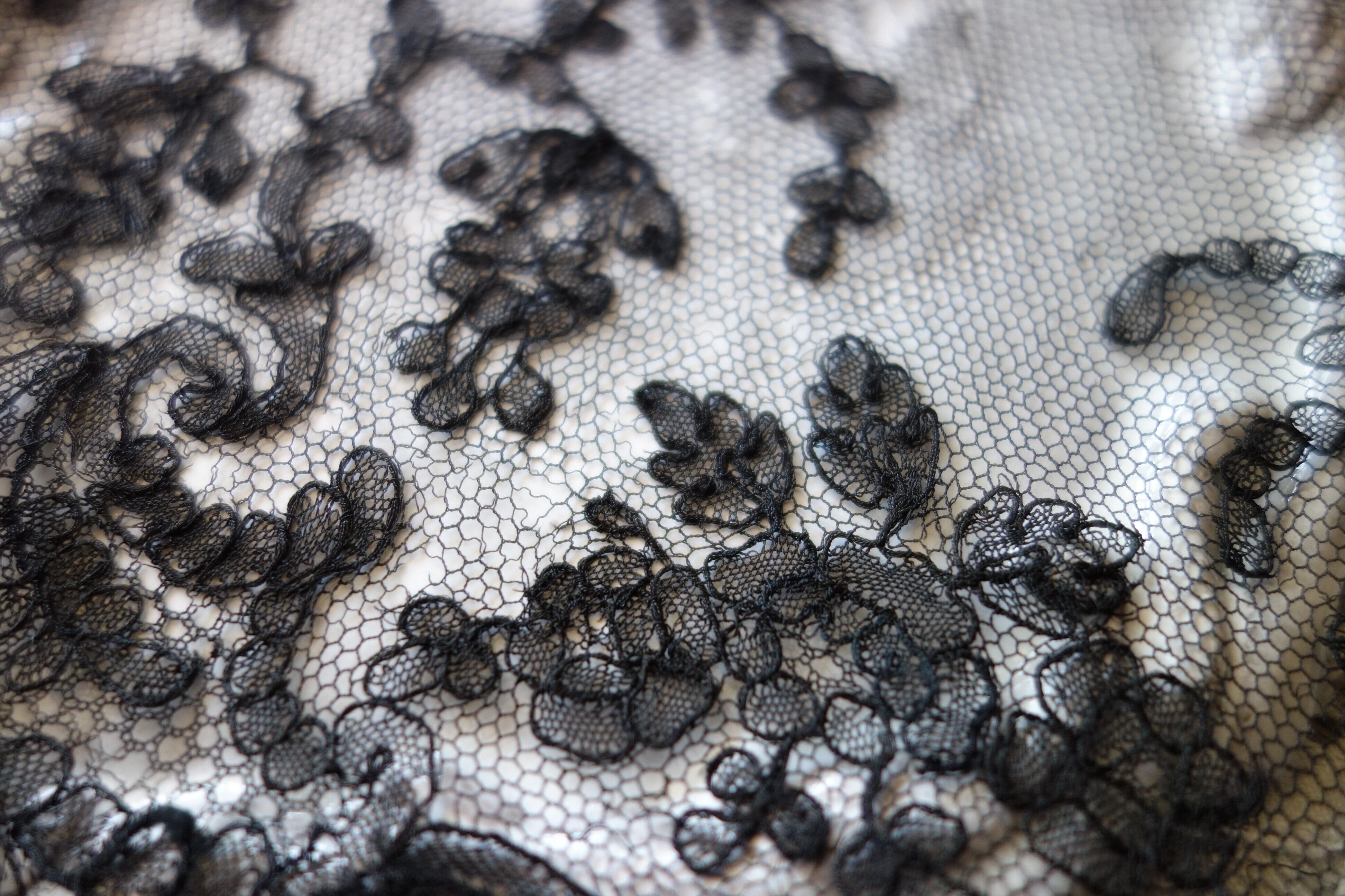 お花、植物モチーフの黒チュールレース