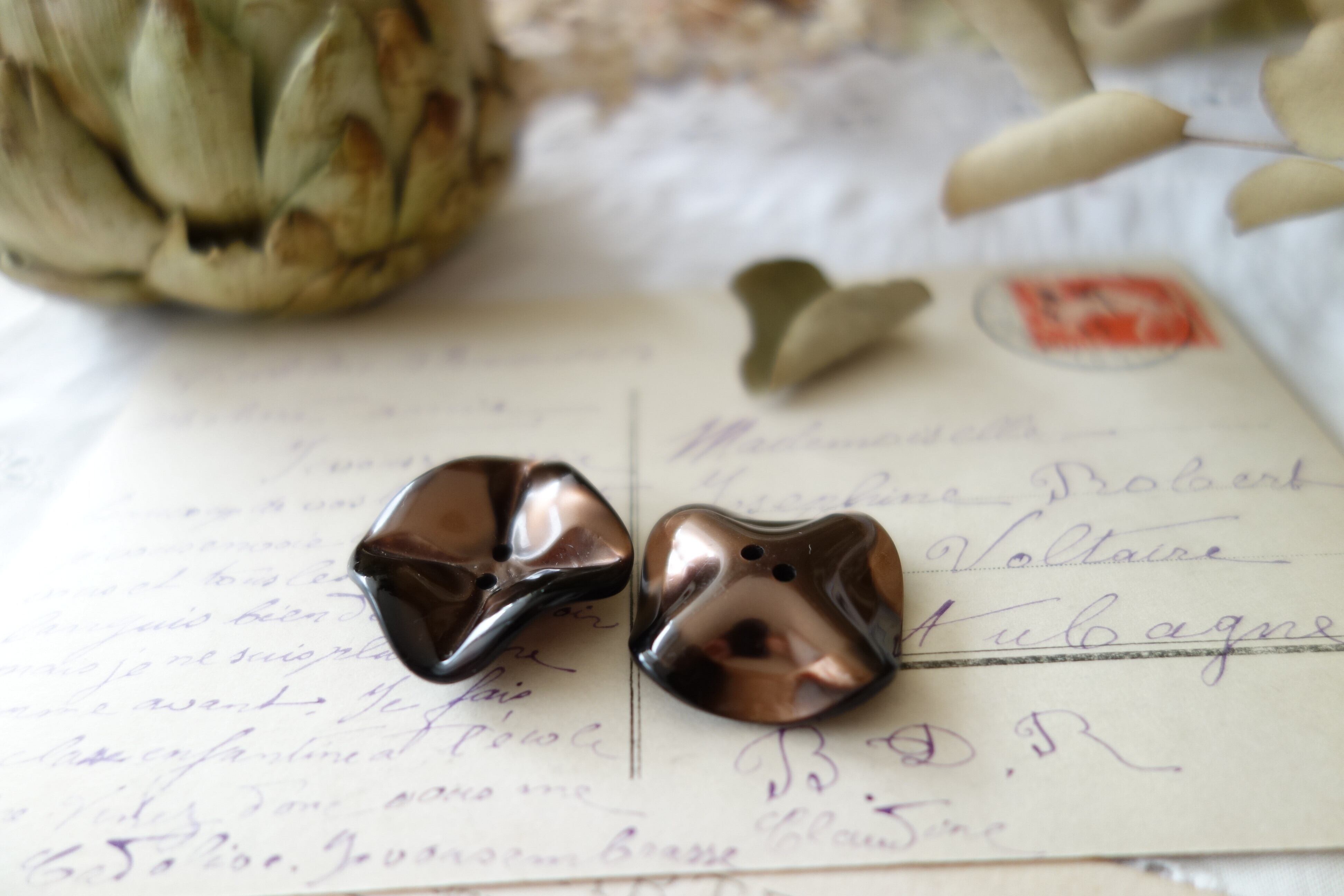 22㎜ 花びらアンティークボタン A521 ブラウン