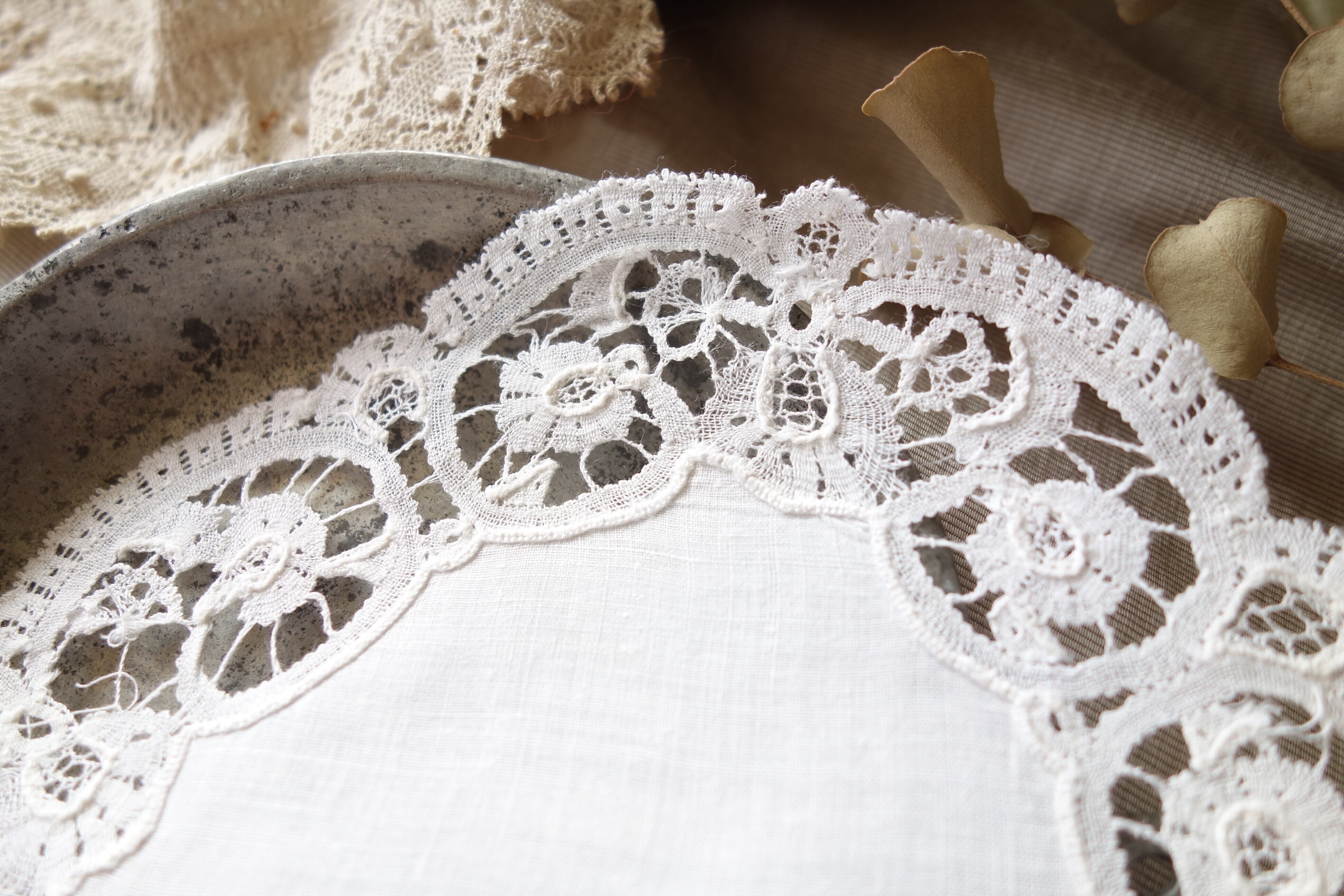 フラワーモチーフレースで華やかな可愛いドイリーです。