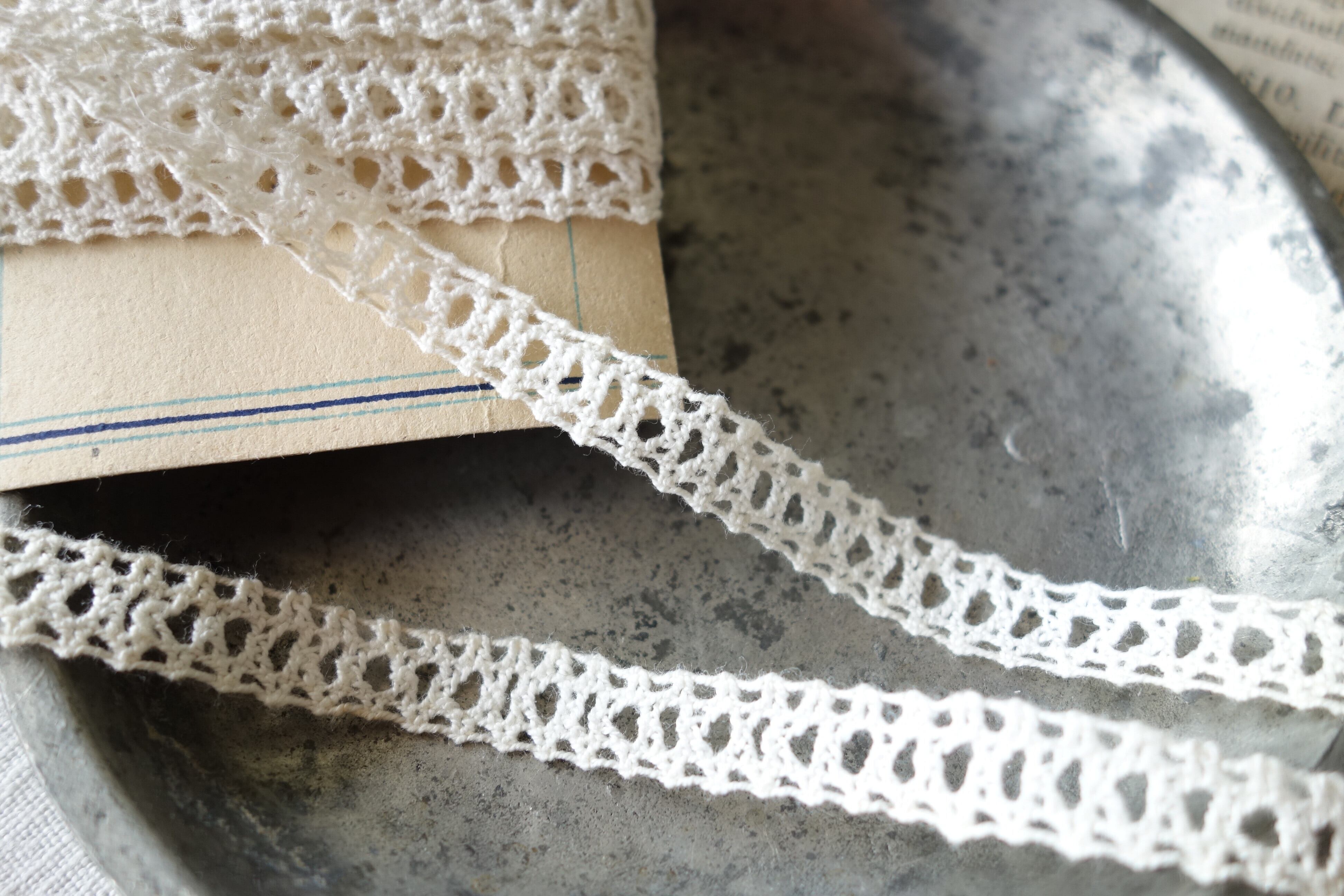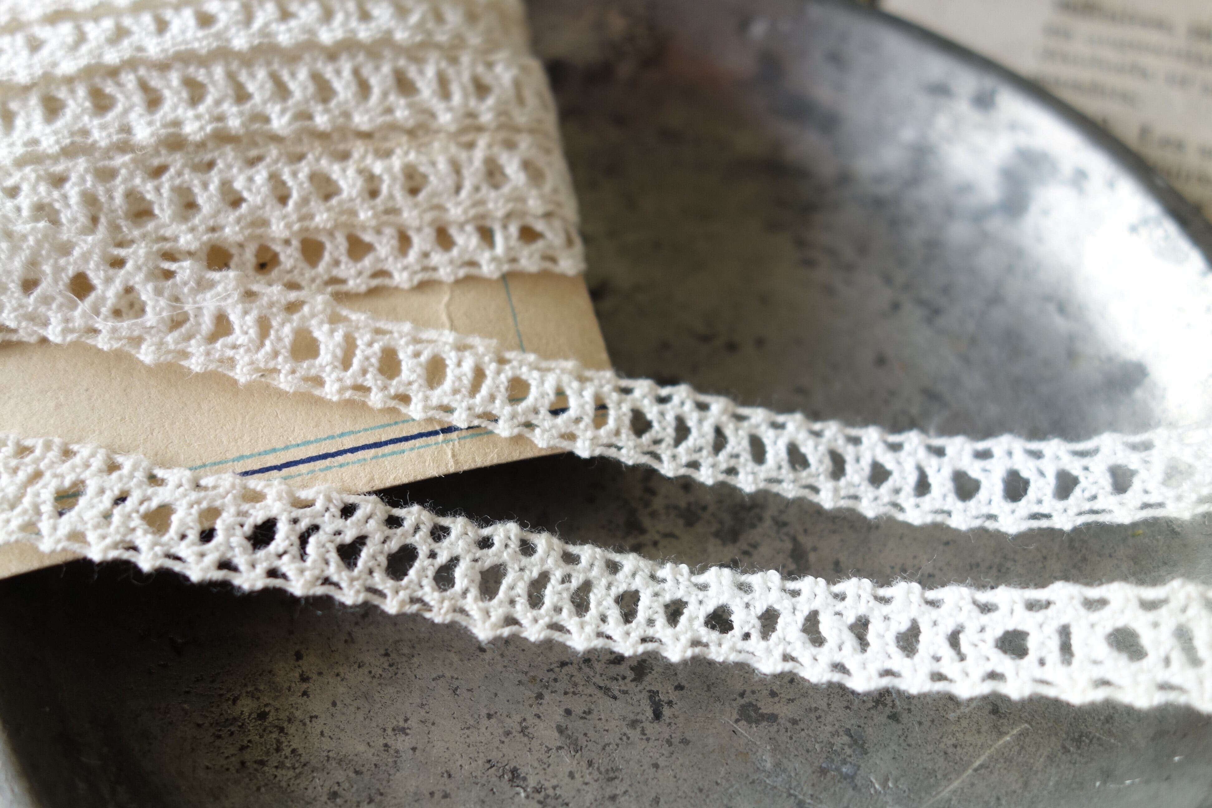 50㎝ アンティーク手編み細レース C217 アイボリー