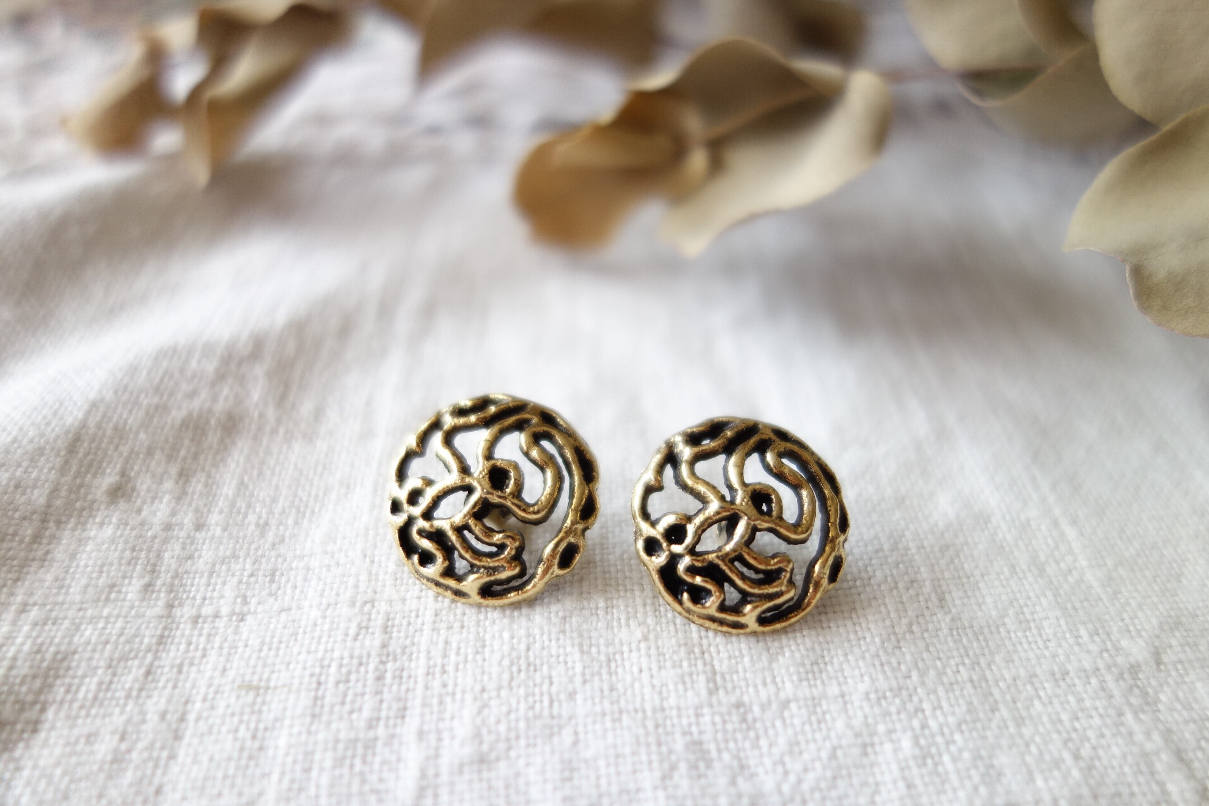 フランス製 薔薇透かし アンティークボタン A556 ゴールド