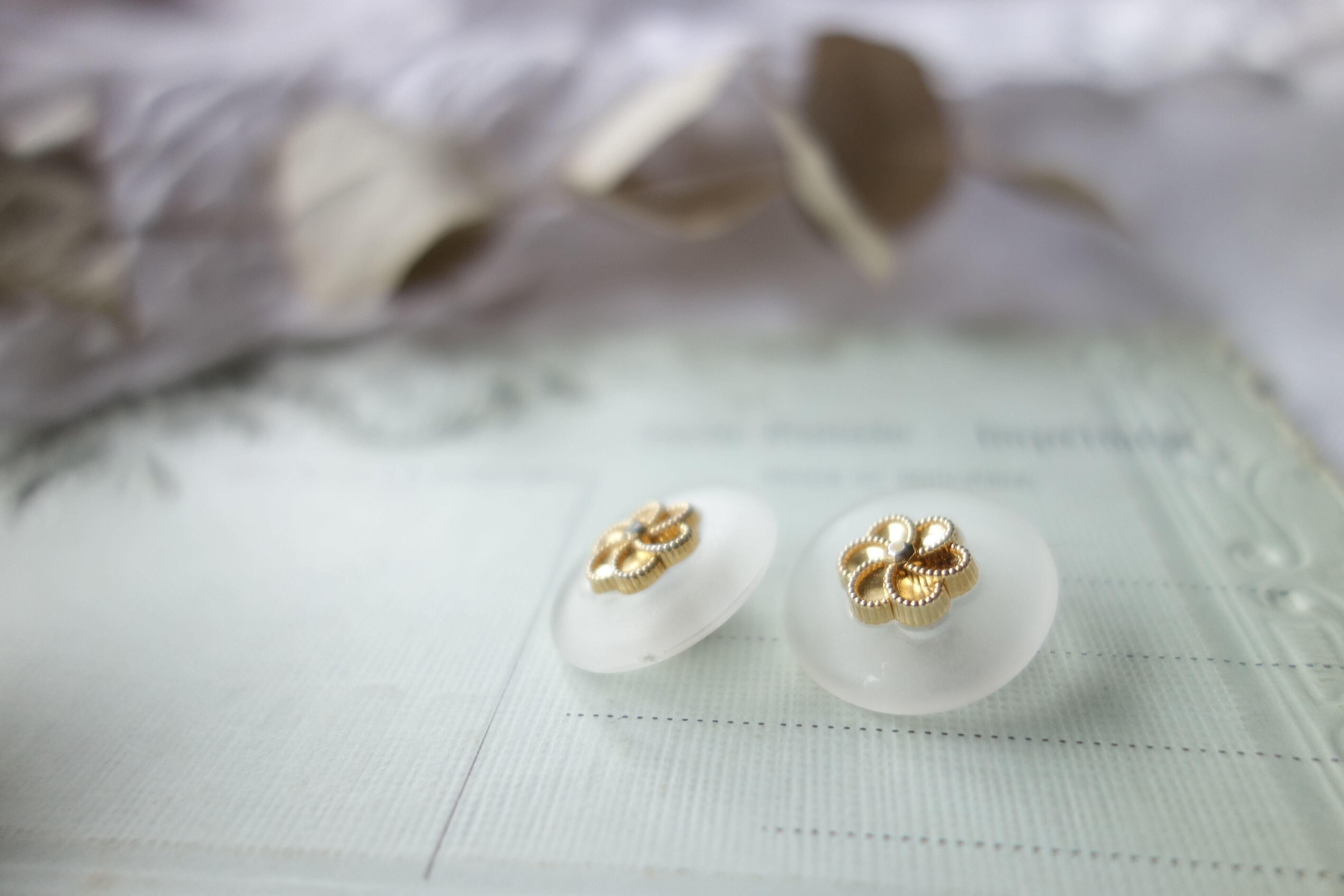 フランス製 17㎜ 花モチーフ アンティークボタン A589 クリア