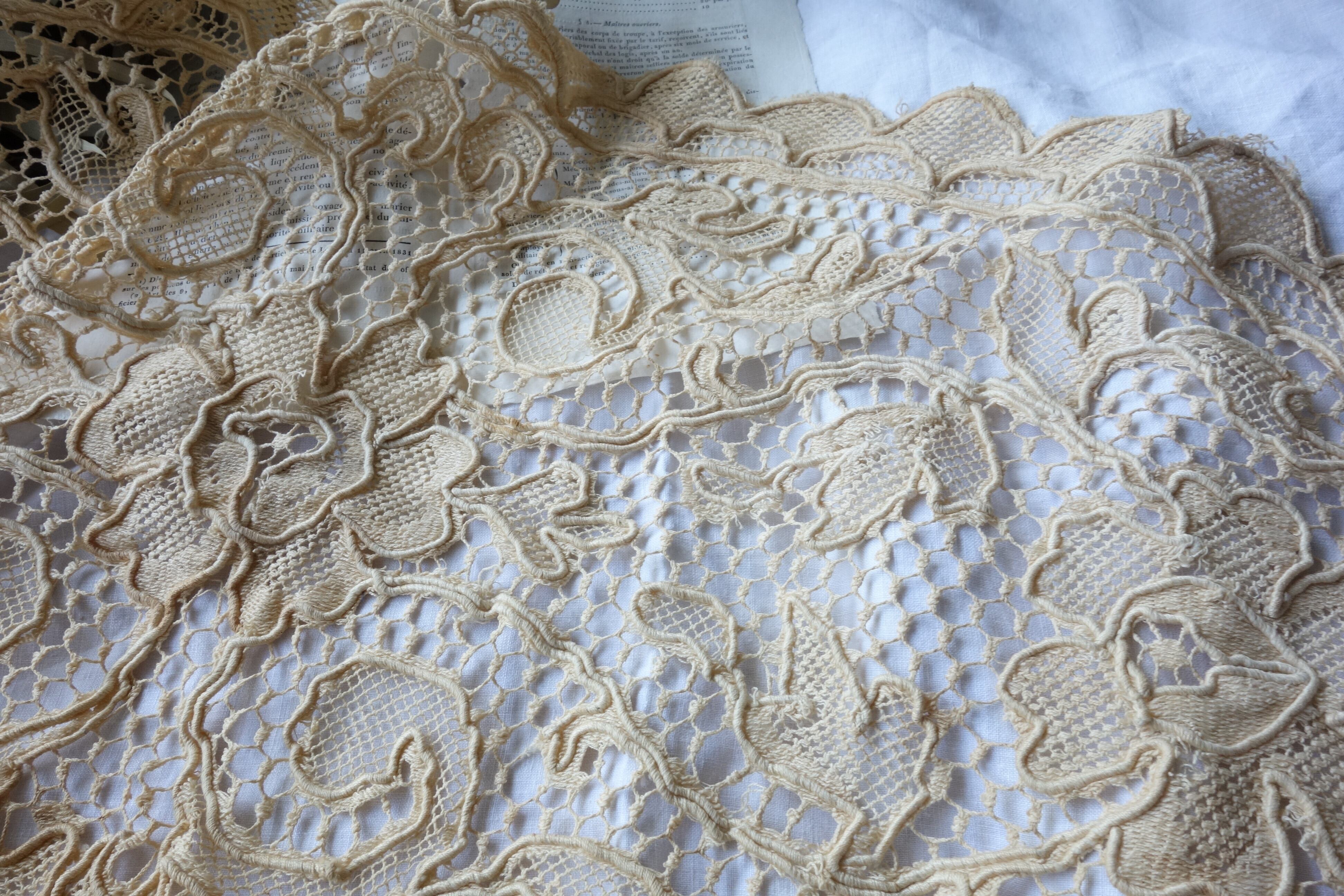 フランス製 大判の手編みレースドイリー B113 ベージュ