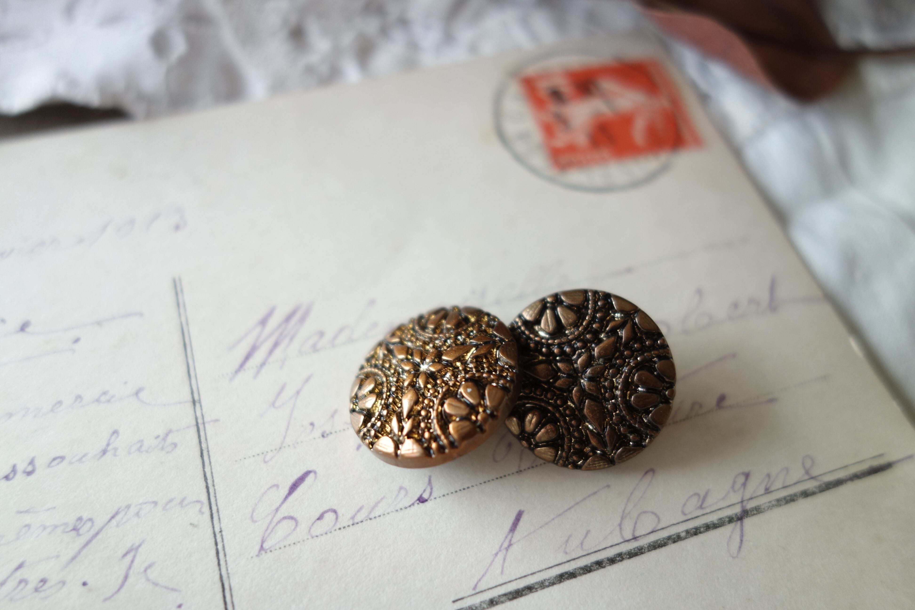 フランス製 18㎜ アンティークボタン花柄 A620 ショコラ