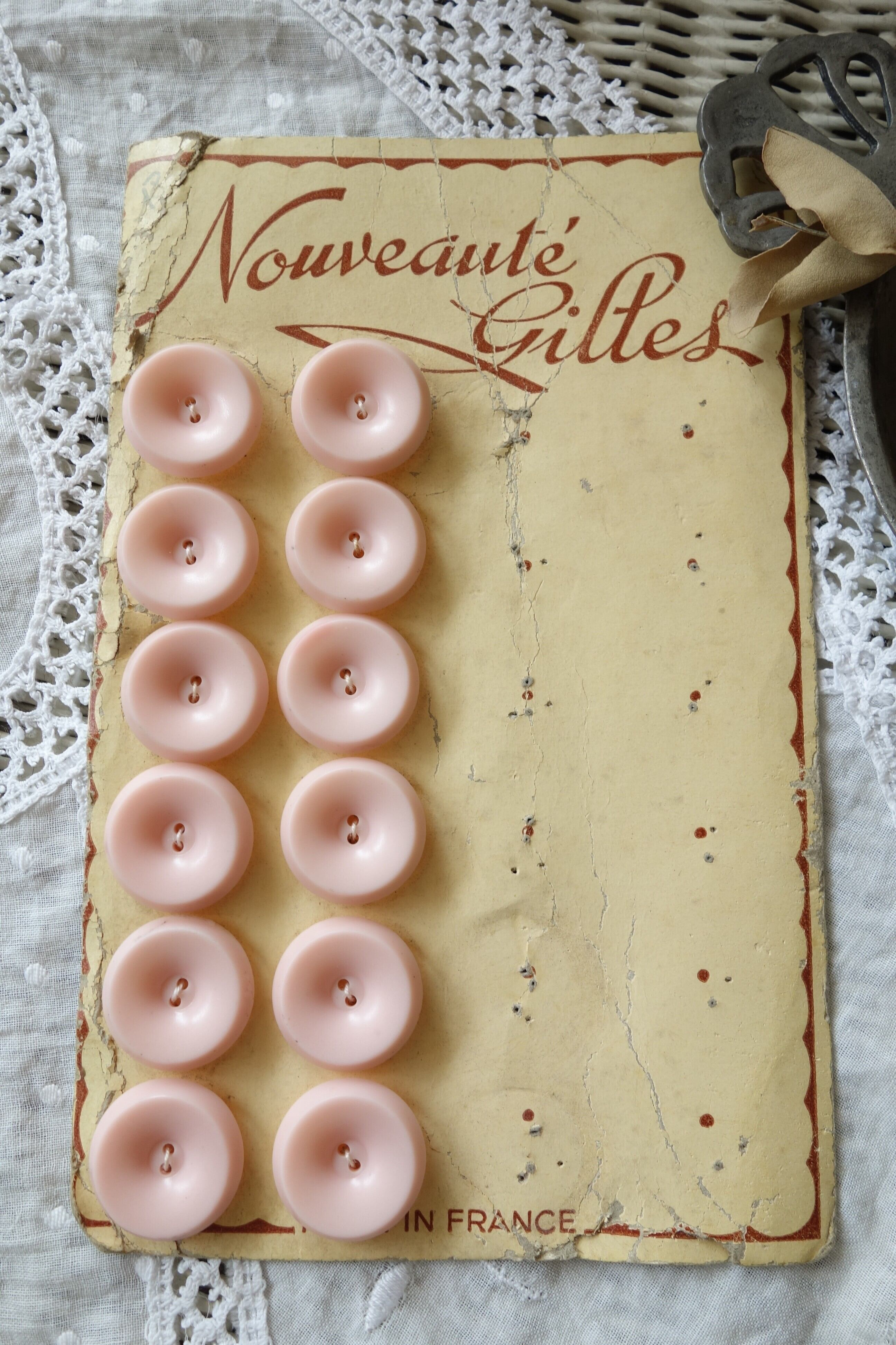 フランス製 4個(大)アンティークボタン A630 ベビーピンク