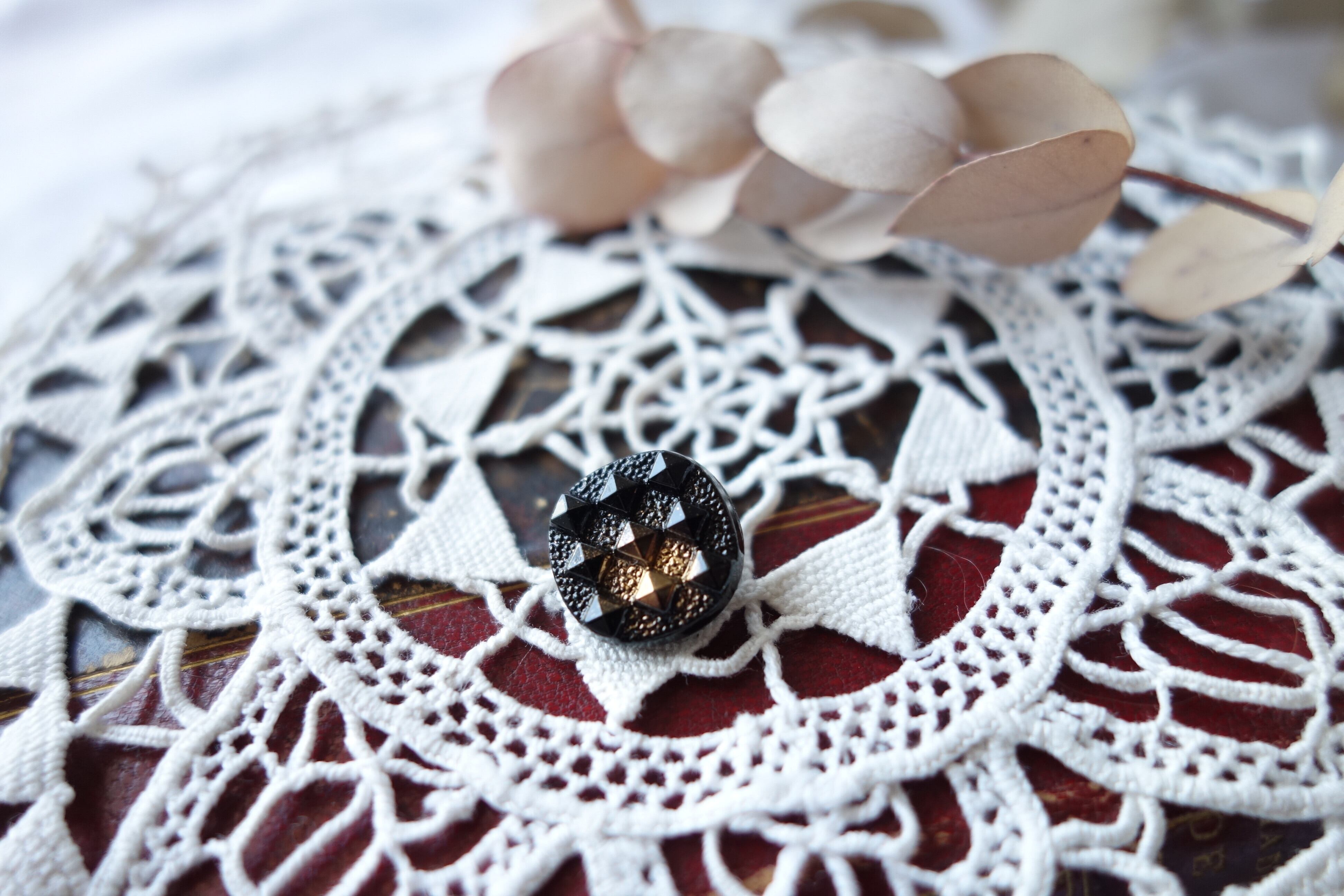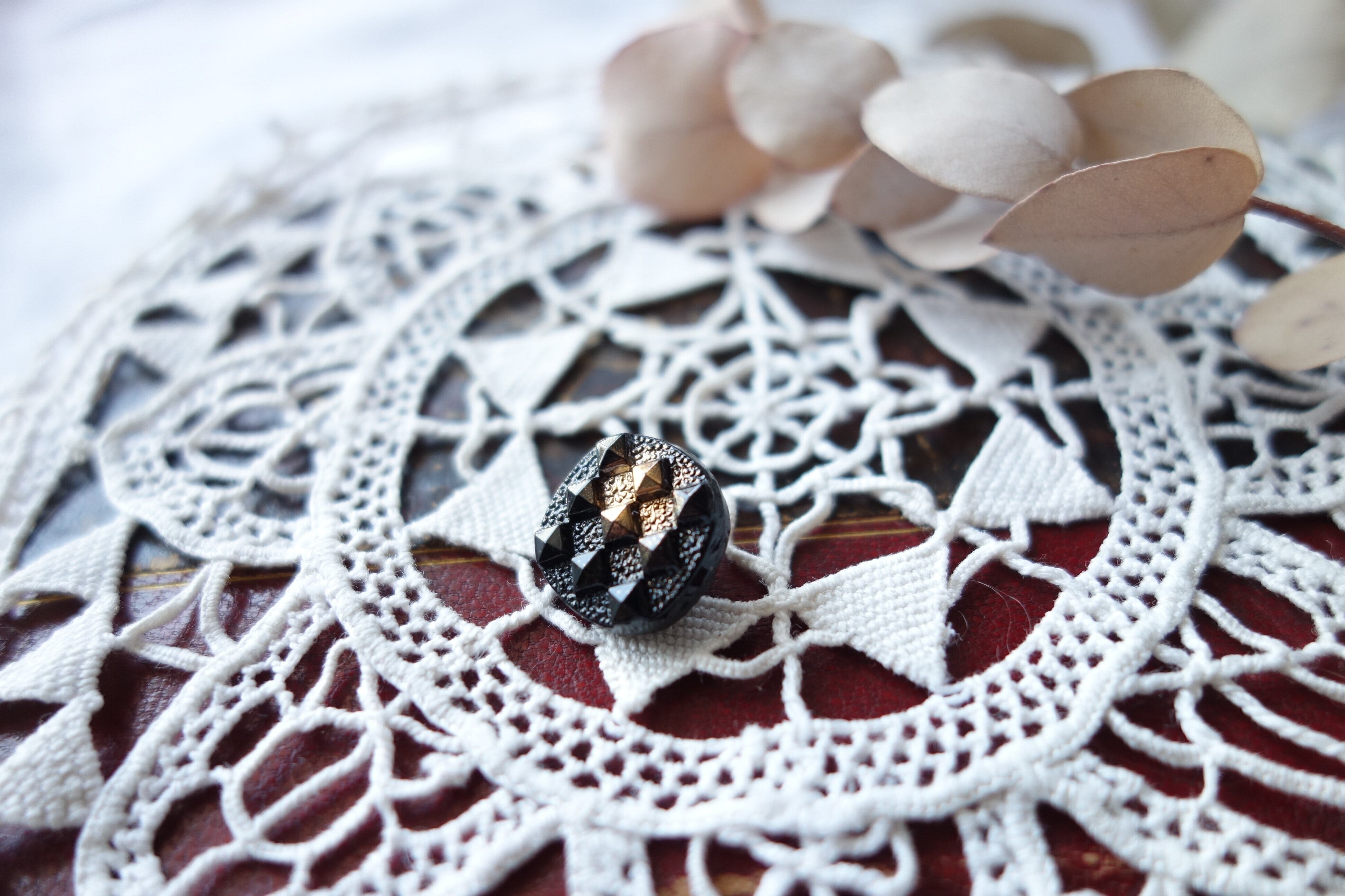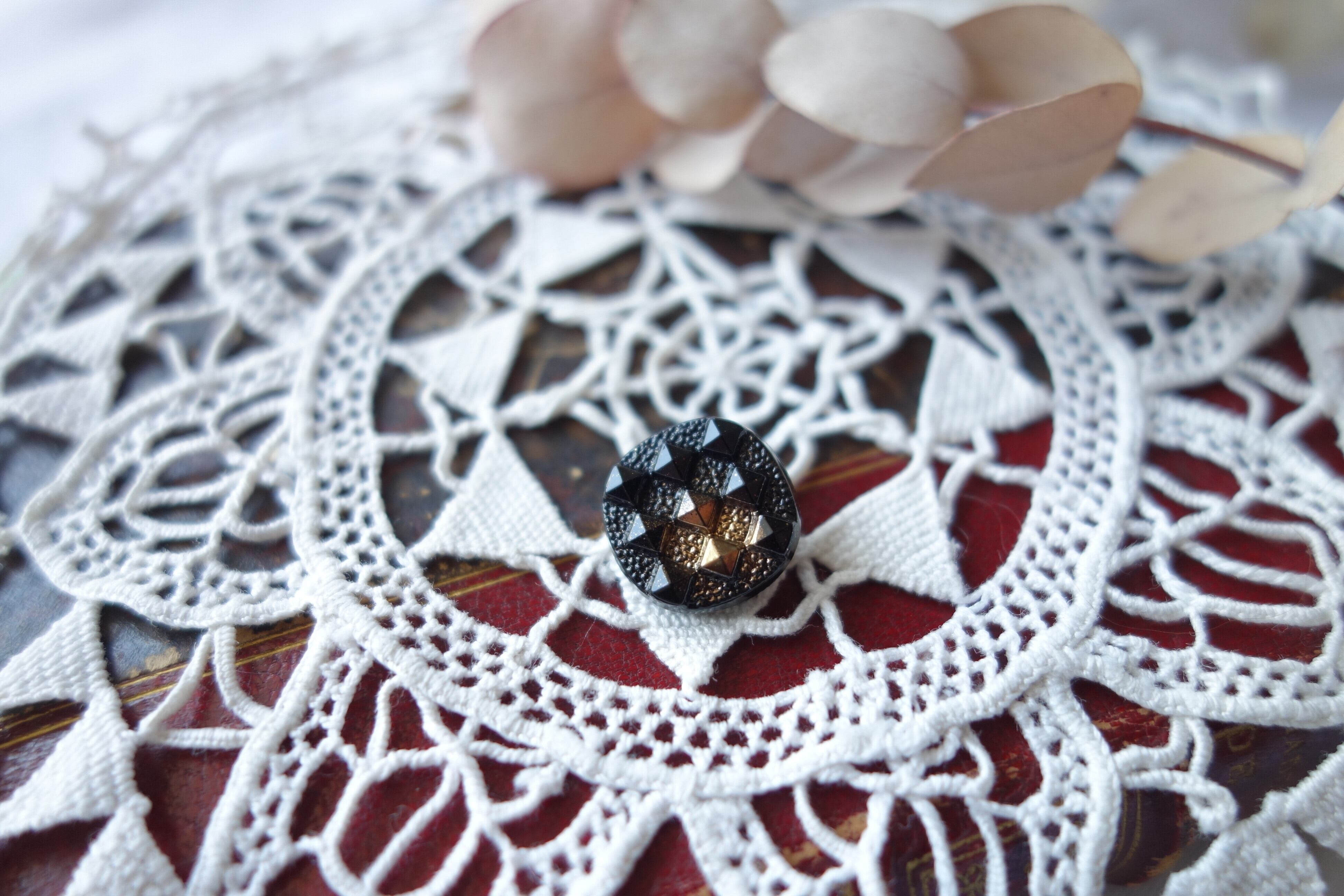 フランス プチ アンティークガラスボタン A700 スクエアゴールド黒