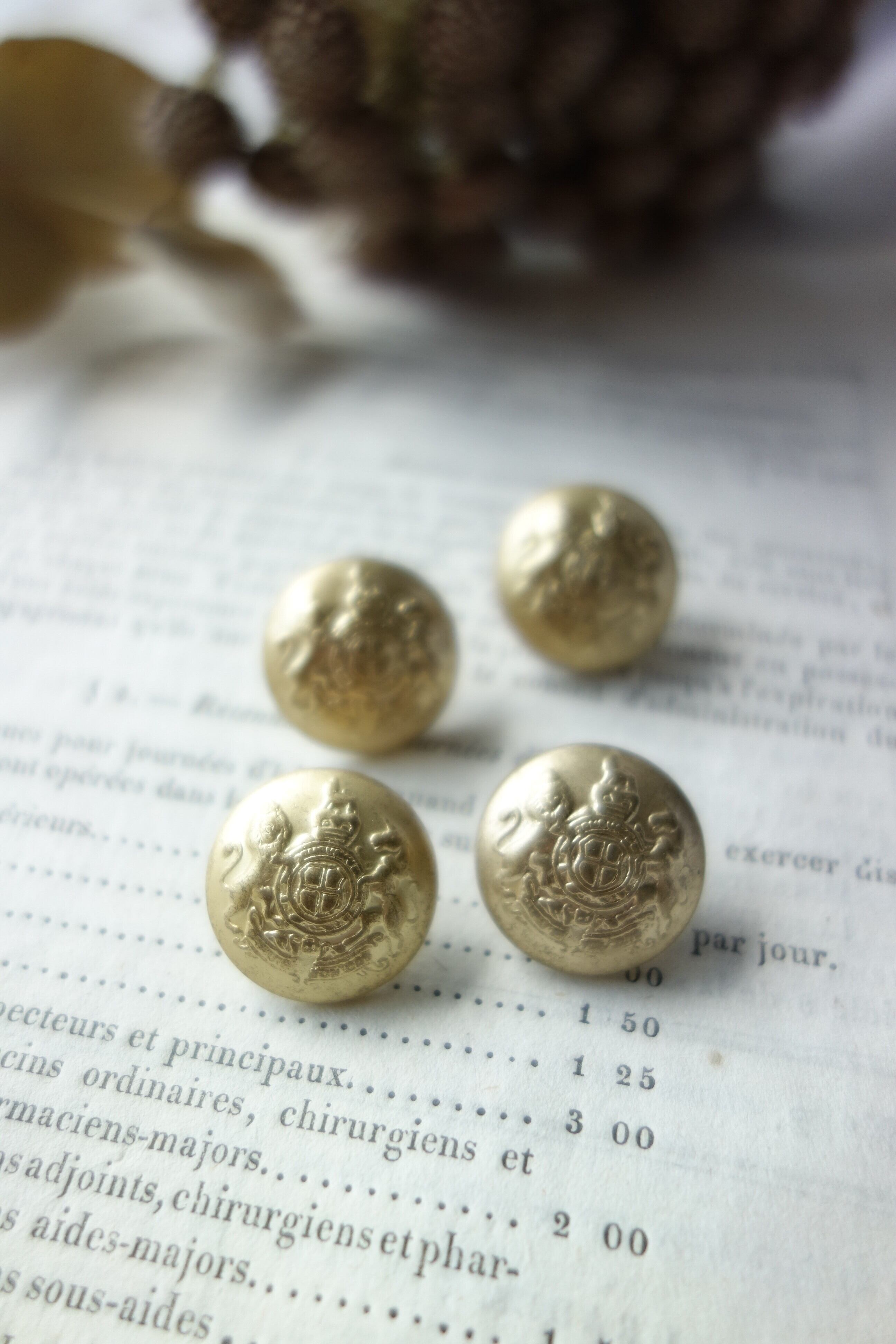 2個 仏アンティークエンブレムボタン A657 ゴールド