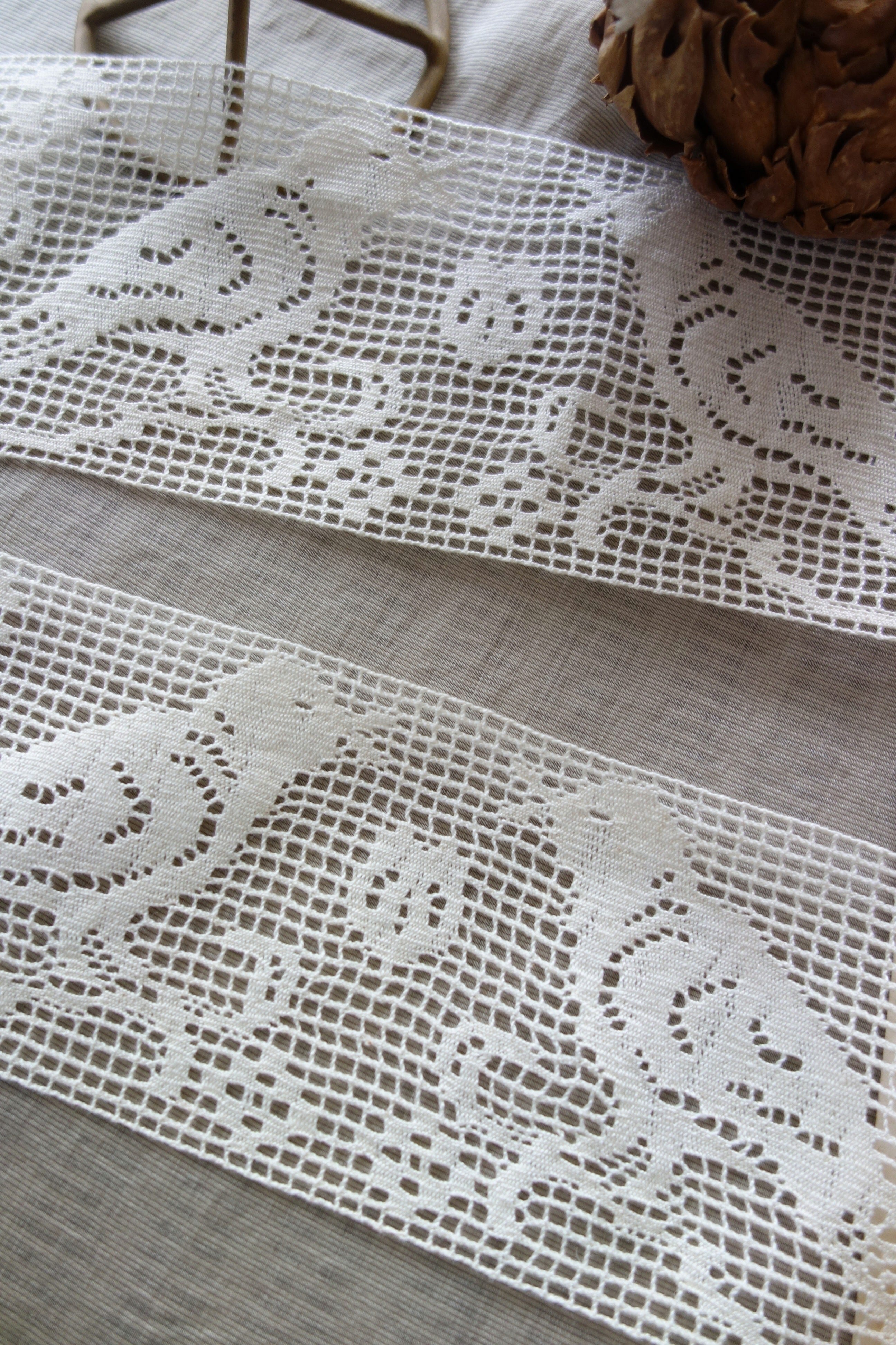 80㎝ 鳥モチーフ アンティークレース C267 アイボリー