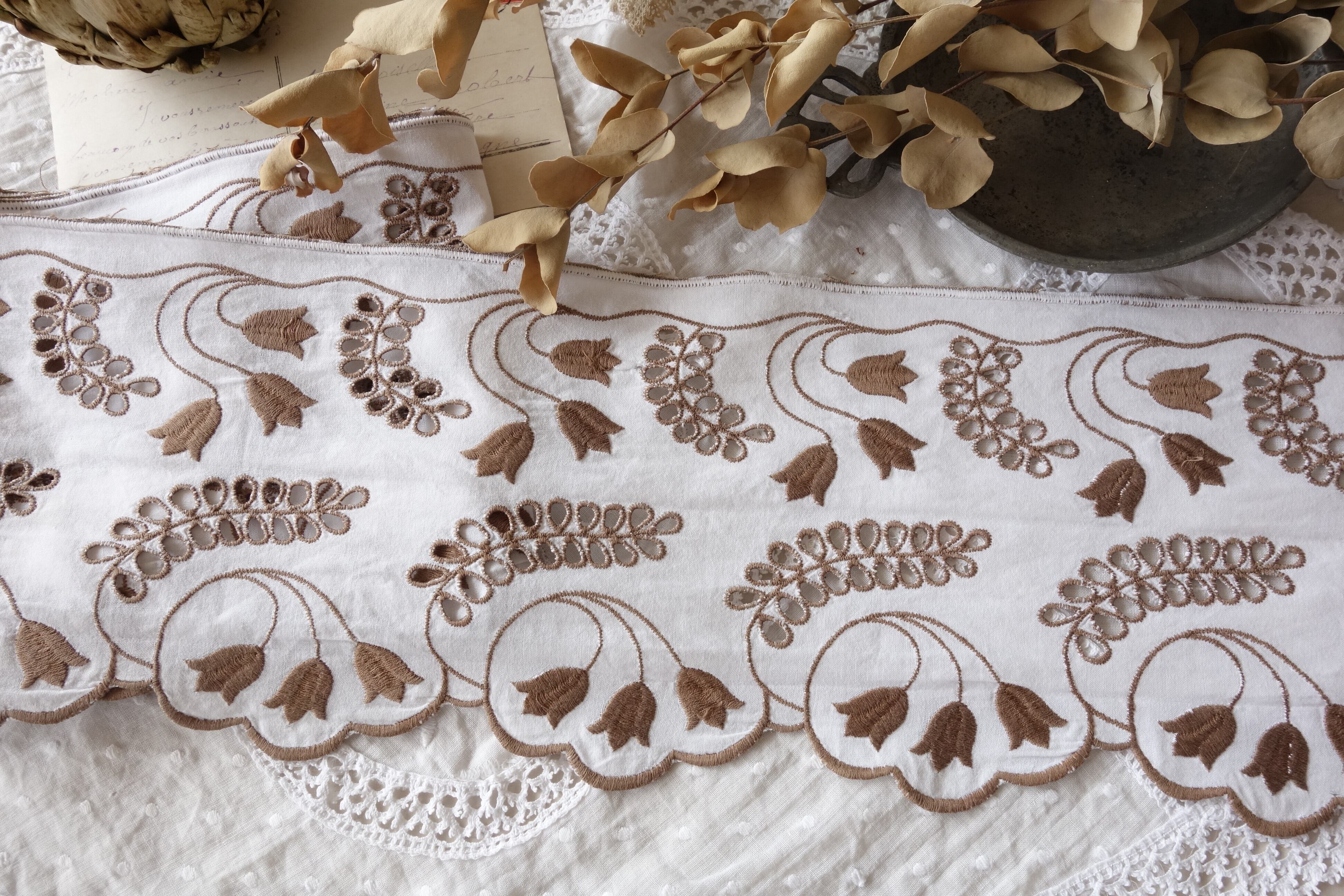 フランス伝統のキッチンアイテムの幅広刺繍レースです。