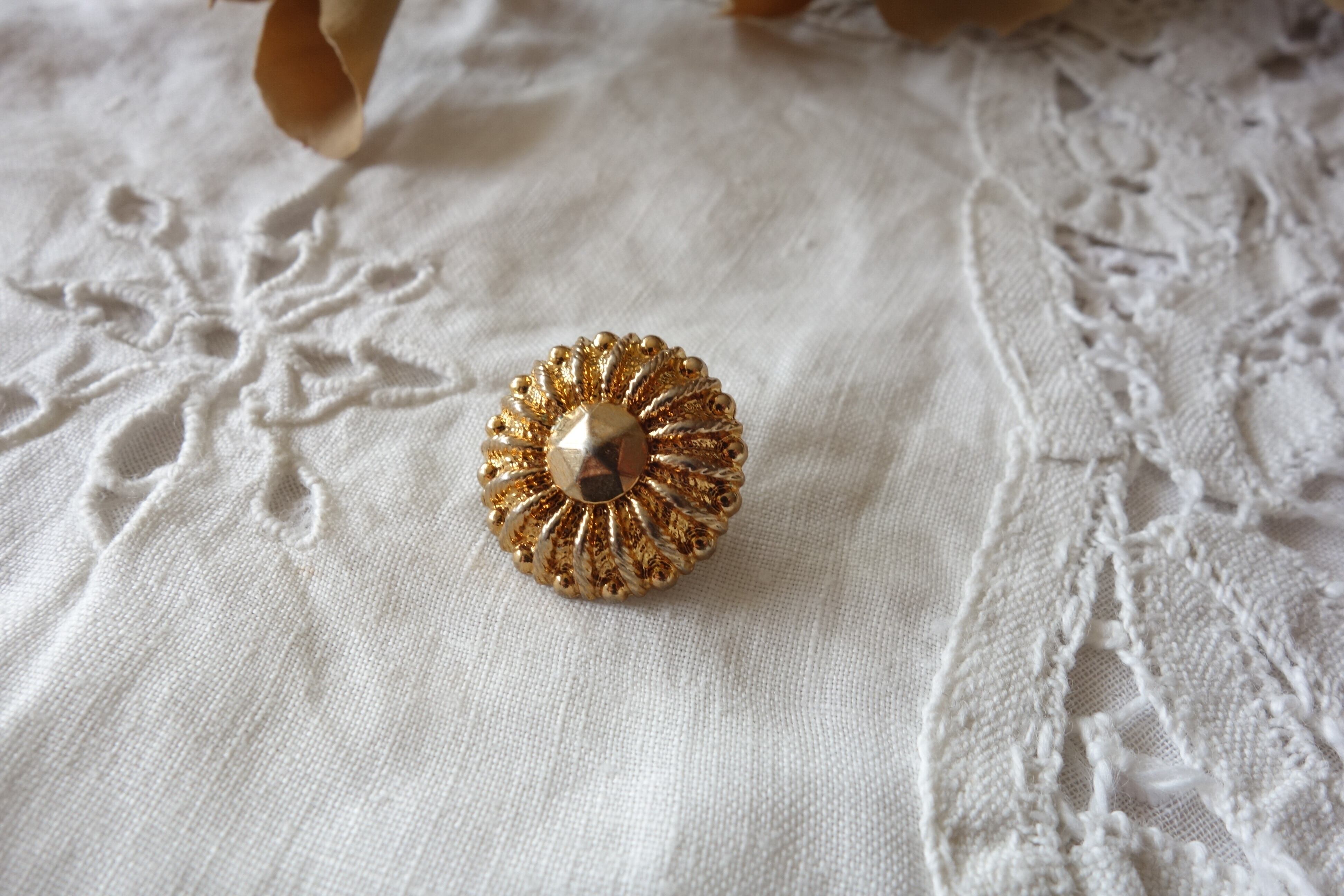 17㎜ アンティークボタンお花 A669 ゴールド