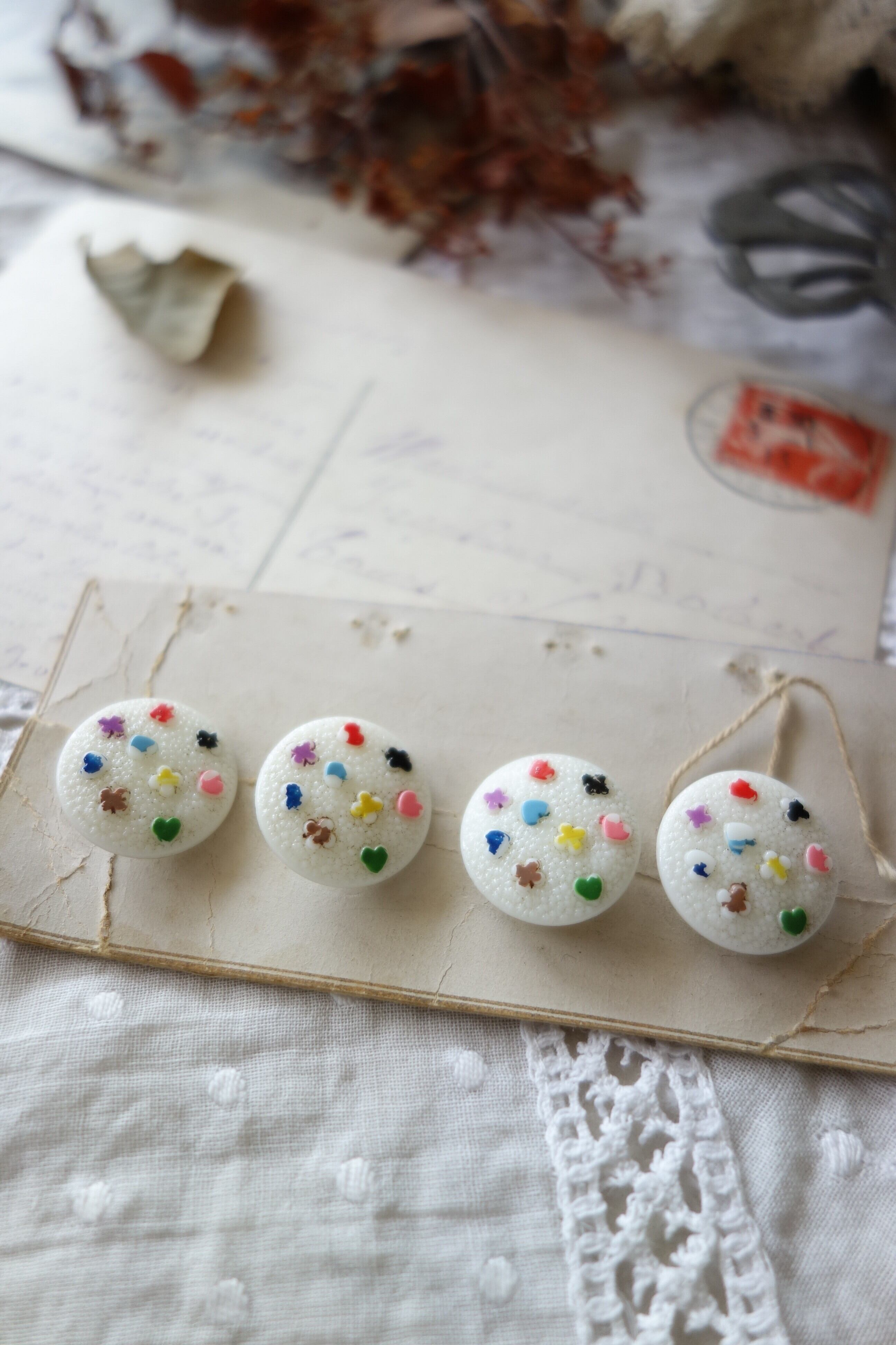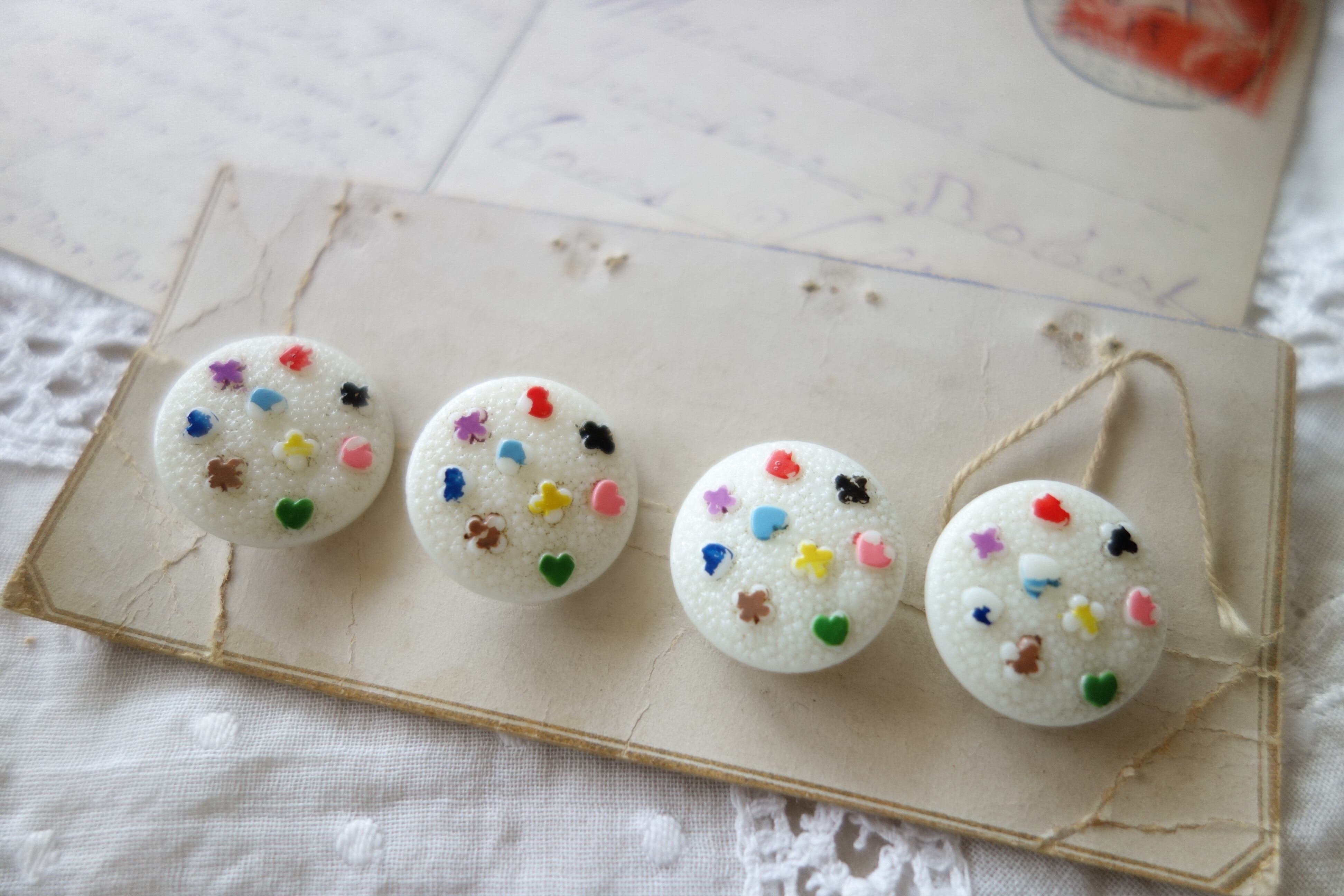 18㎜ 4個アンティーク カラフルなガラスボタン A658 ホワイト
