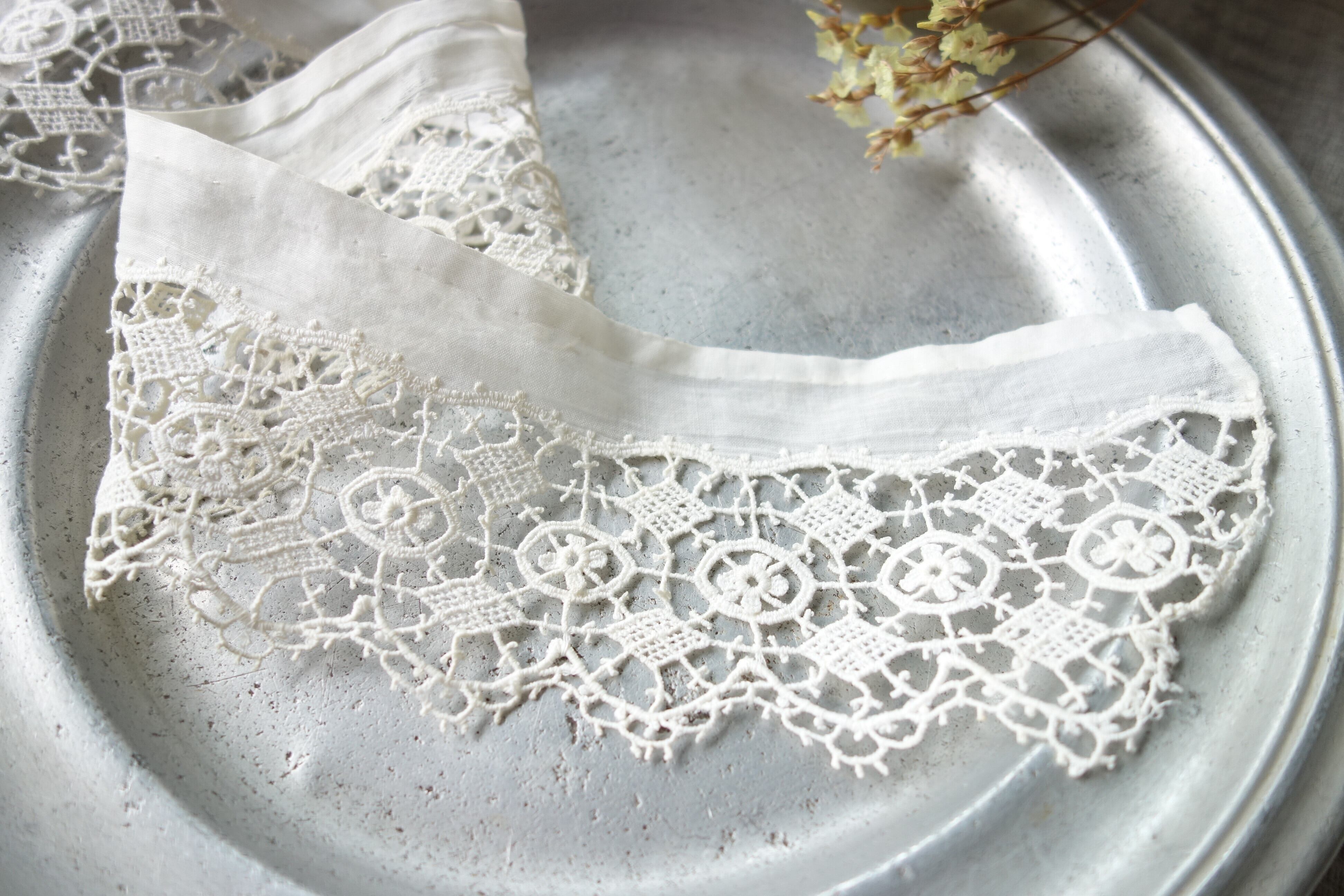 お花とひし形のモチーフをレース糸で繋げているレースです。