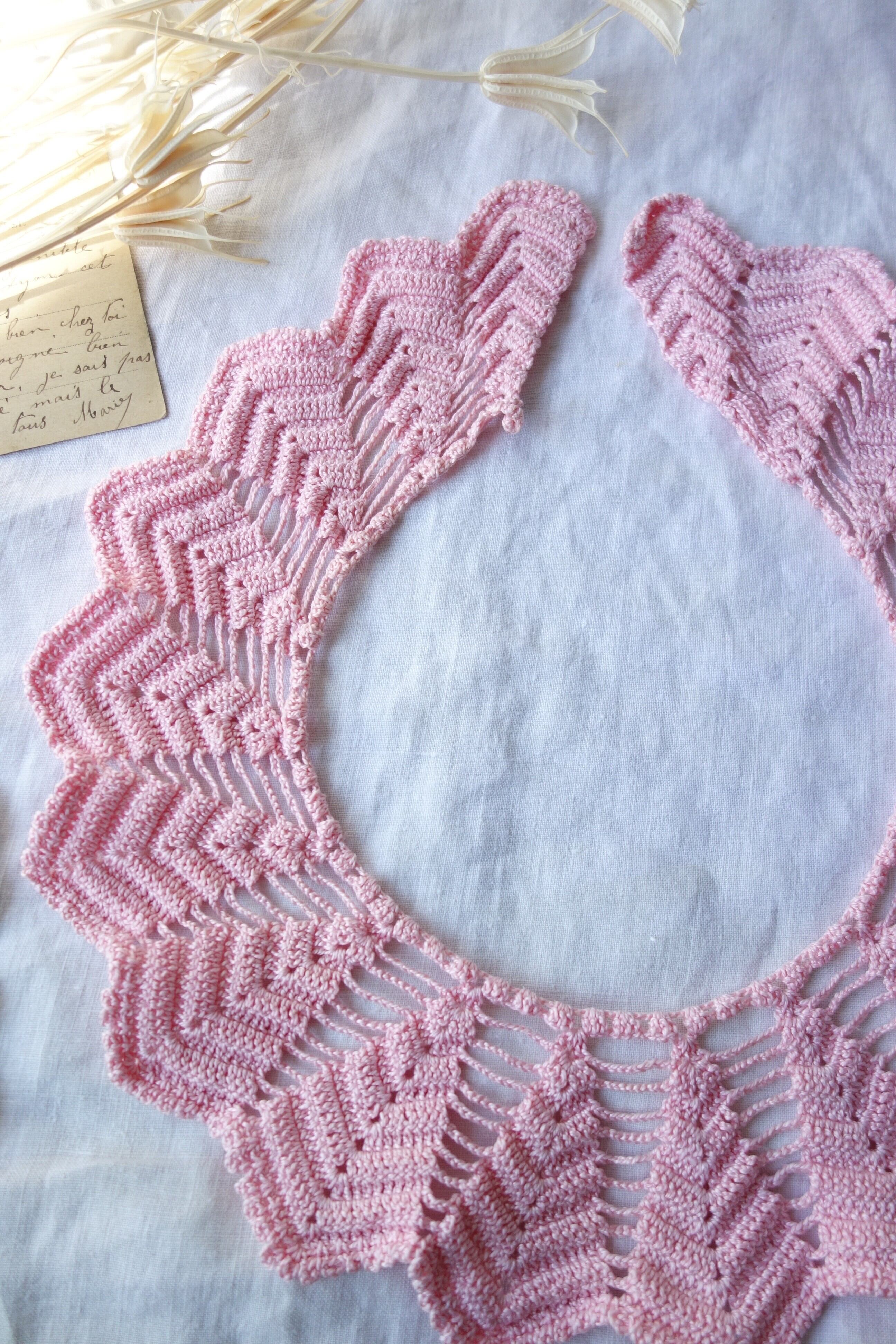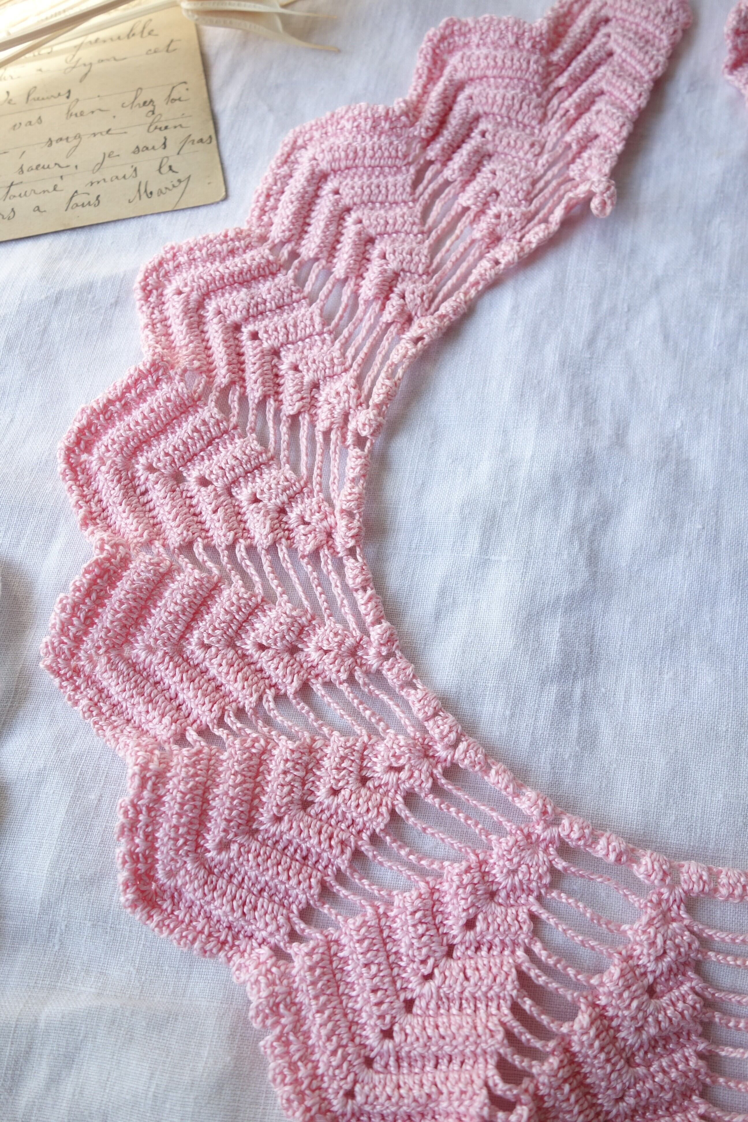 アンティーク手編みレース B138 ピンク