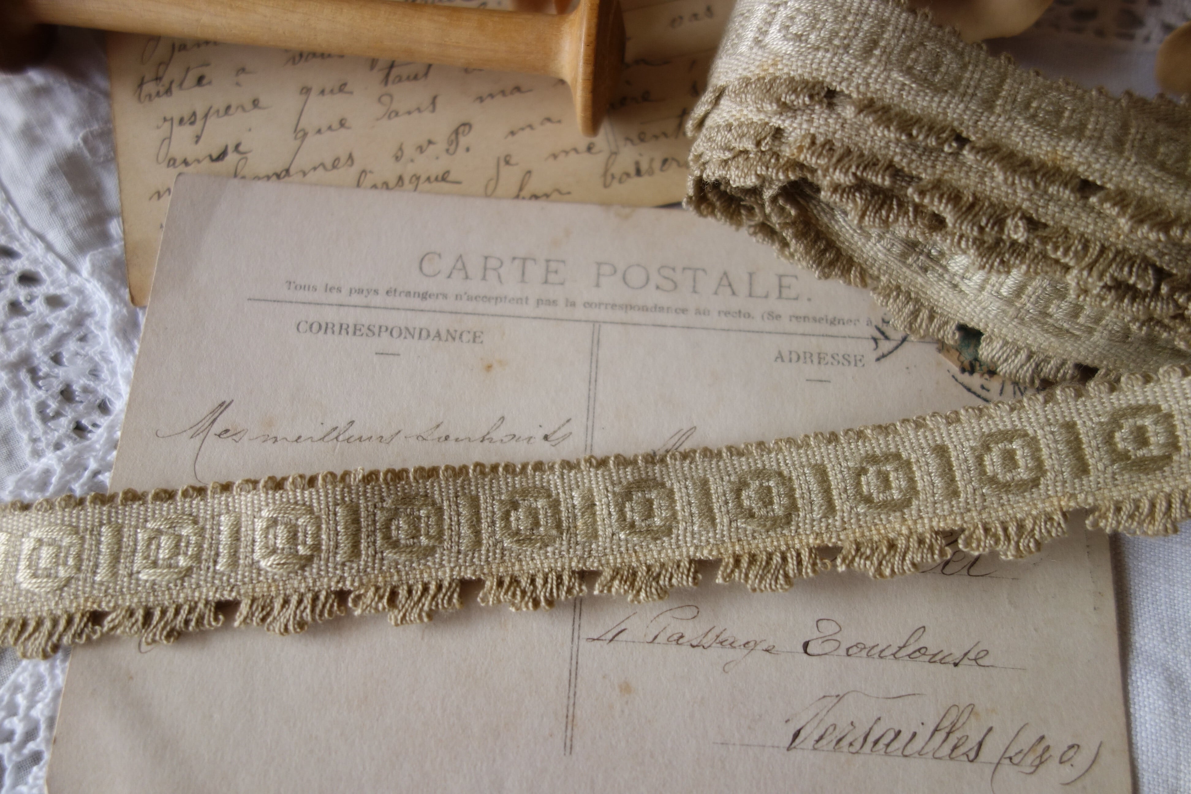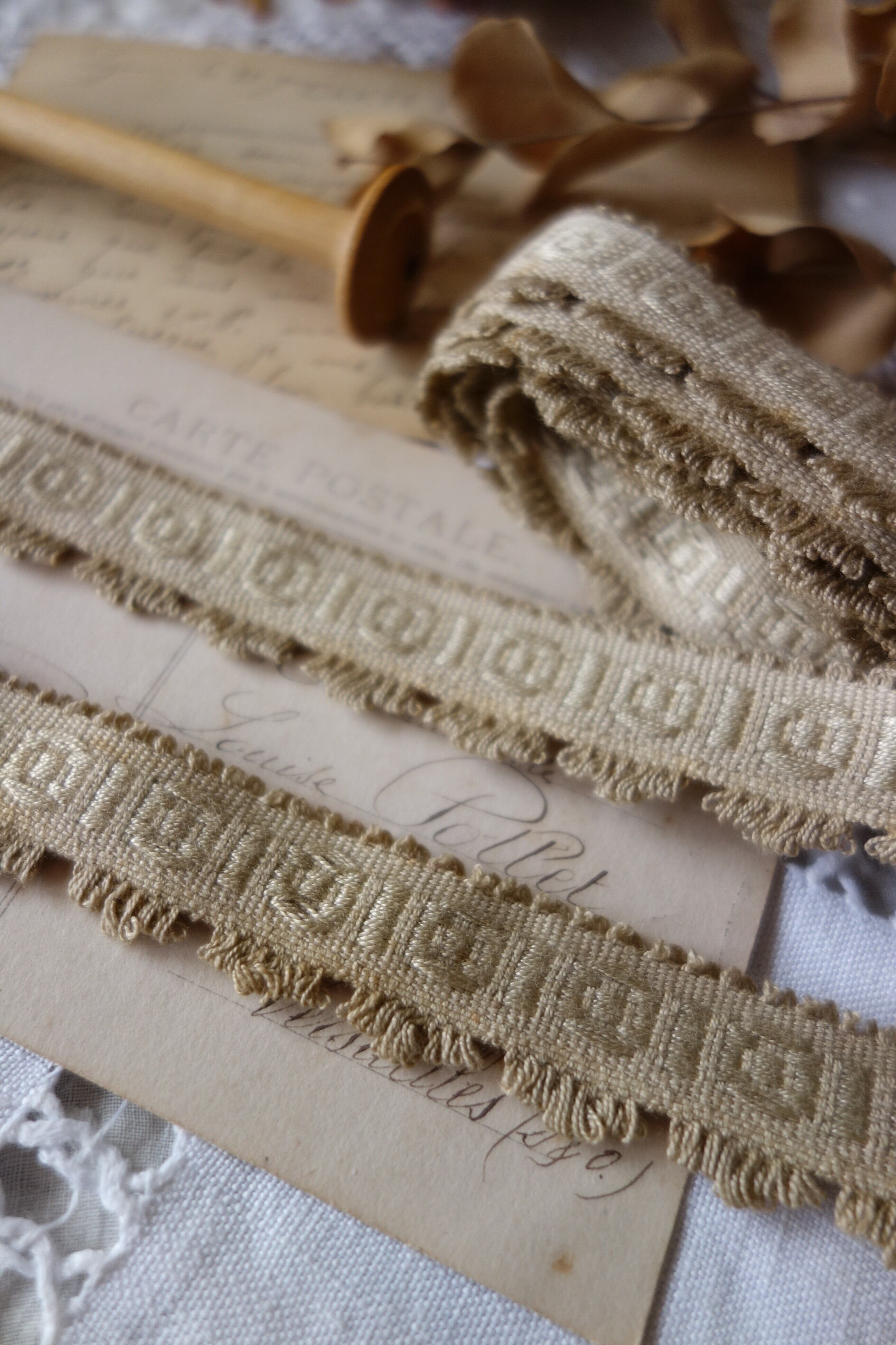 刺繍の模様とフリンジの美しいリボンレースです。