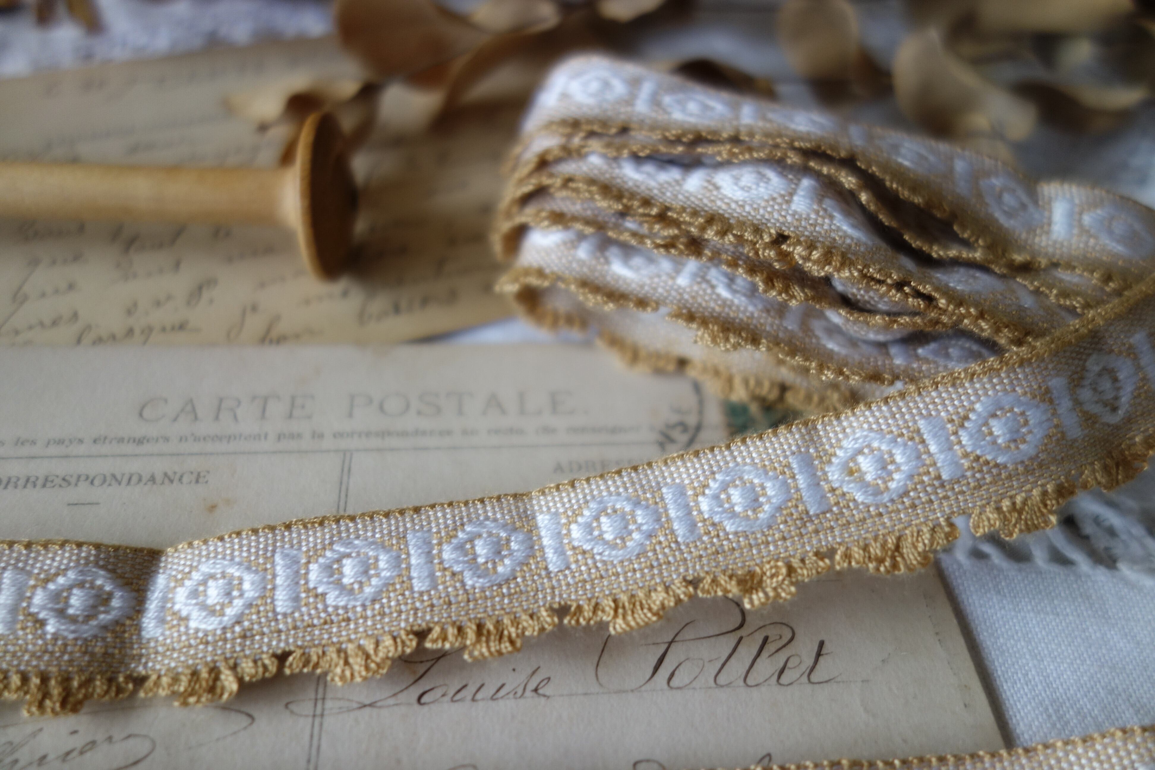40㎝ アンティーク刺繍リボンレース C286 キャメル