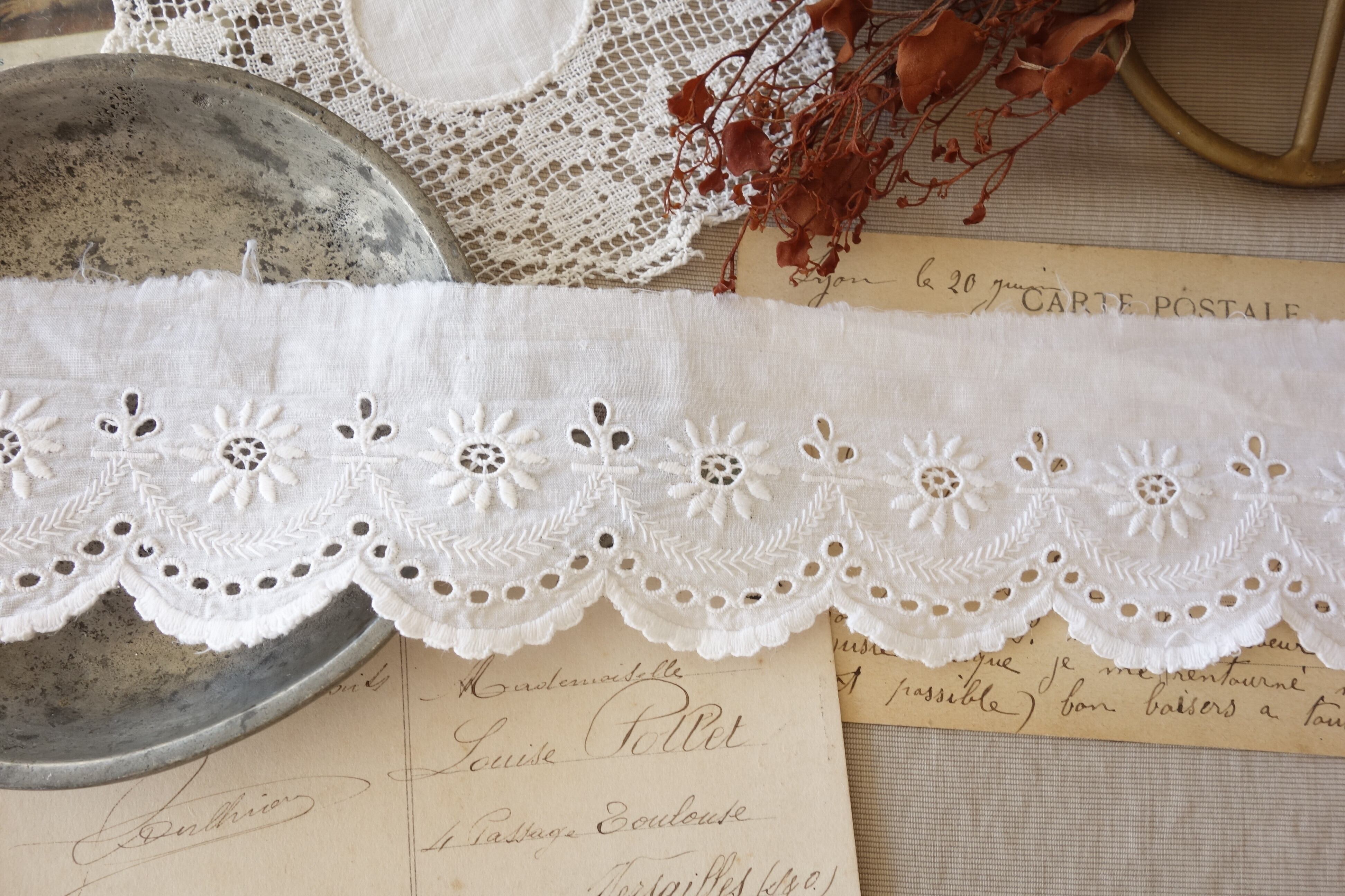 フランスのアンティーク刺繍レース