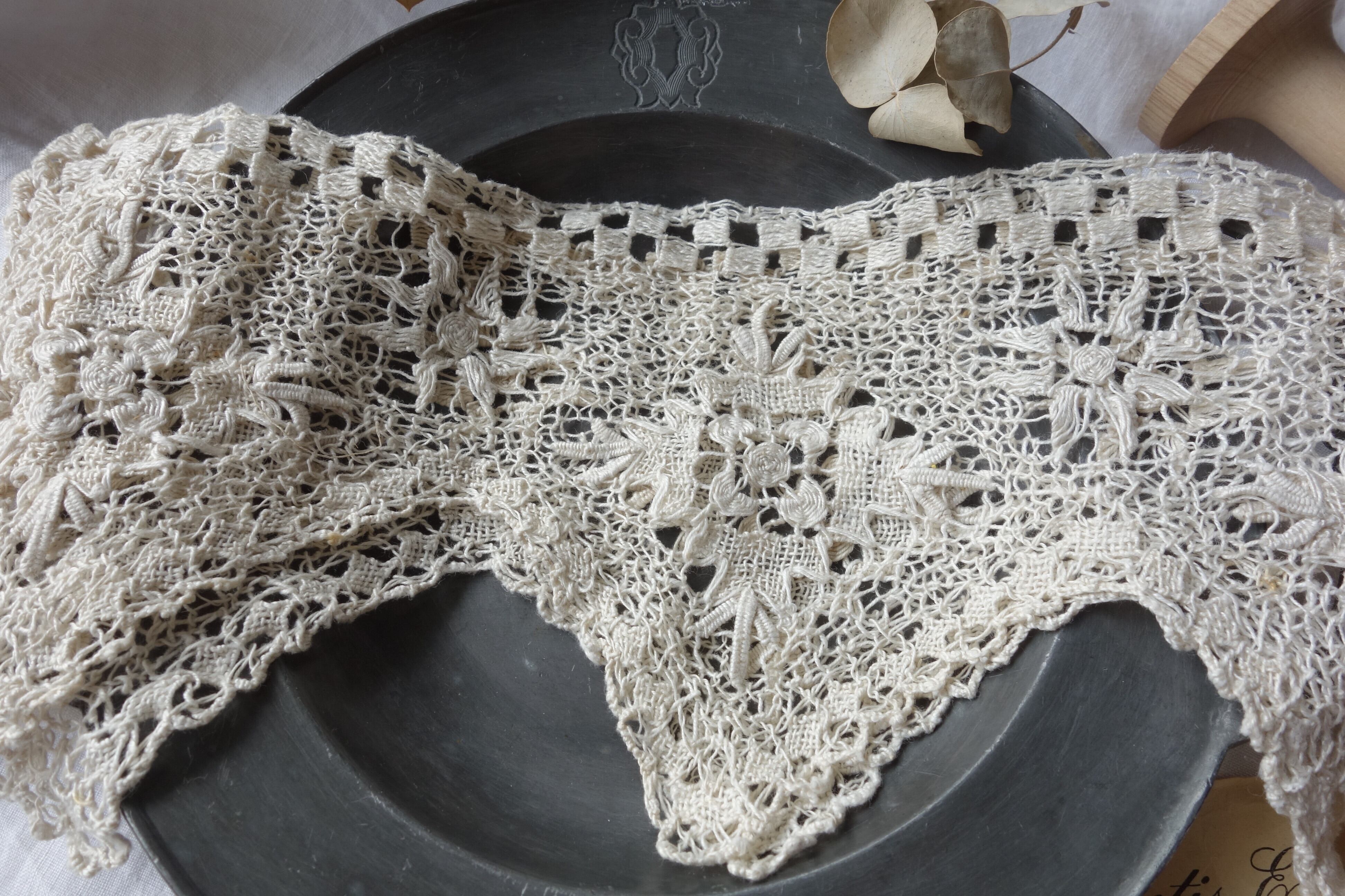 フランスのアンティーク手編みレース