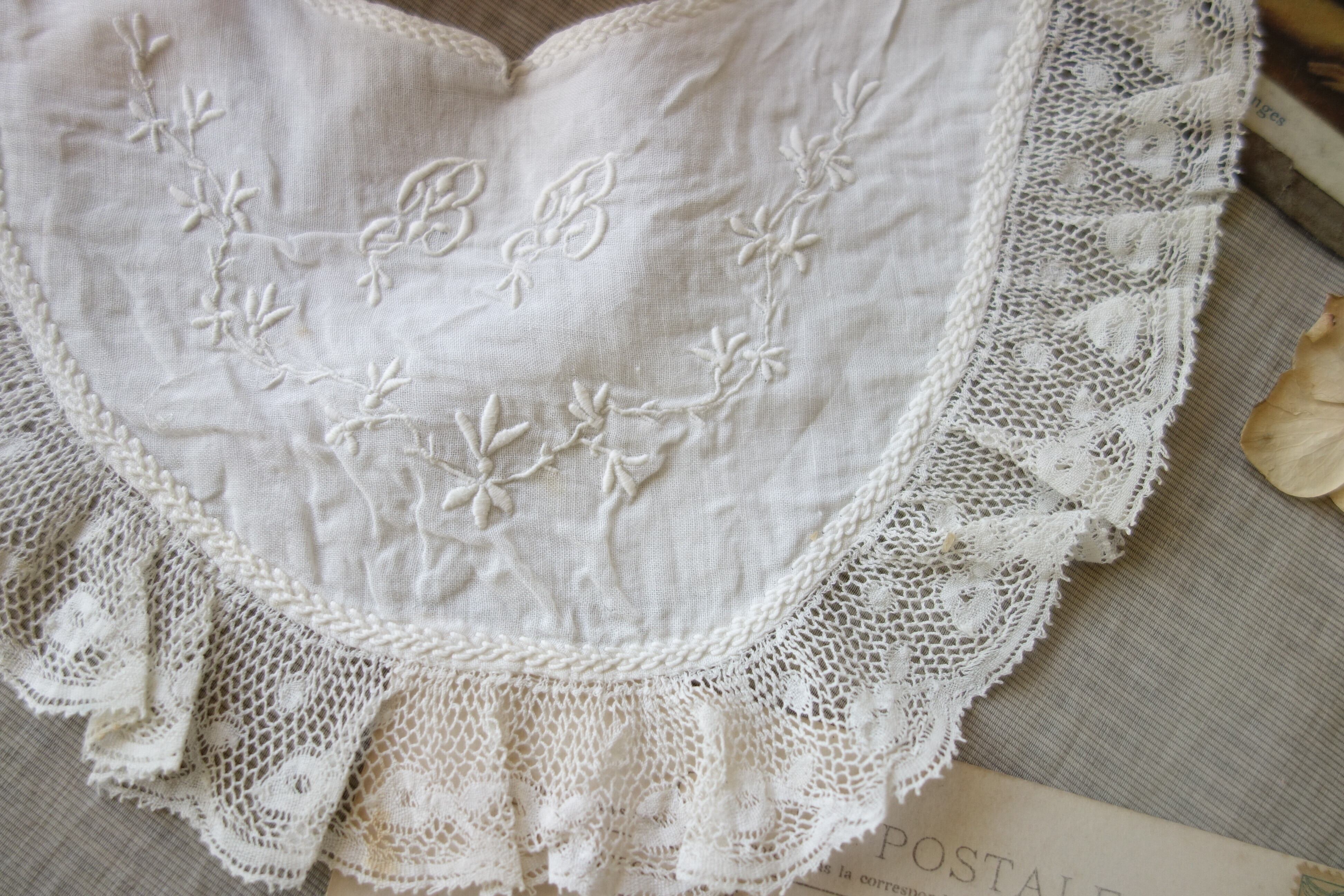 イニシャル刺繍(BB)ボビンレースのフリルが可愛いです。
