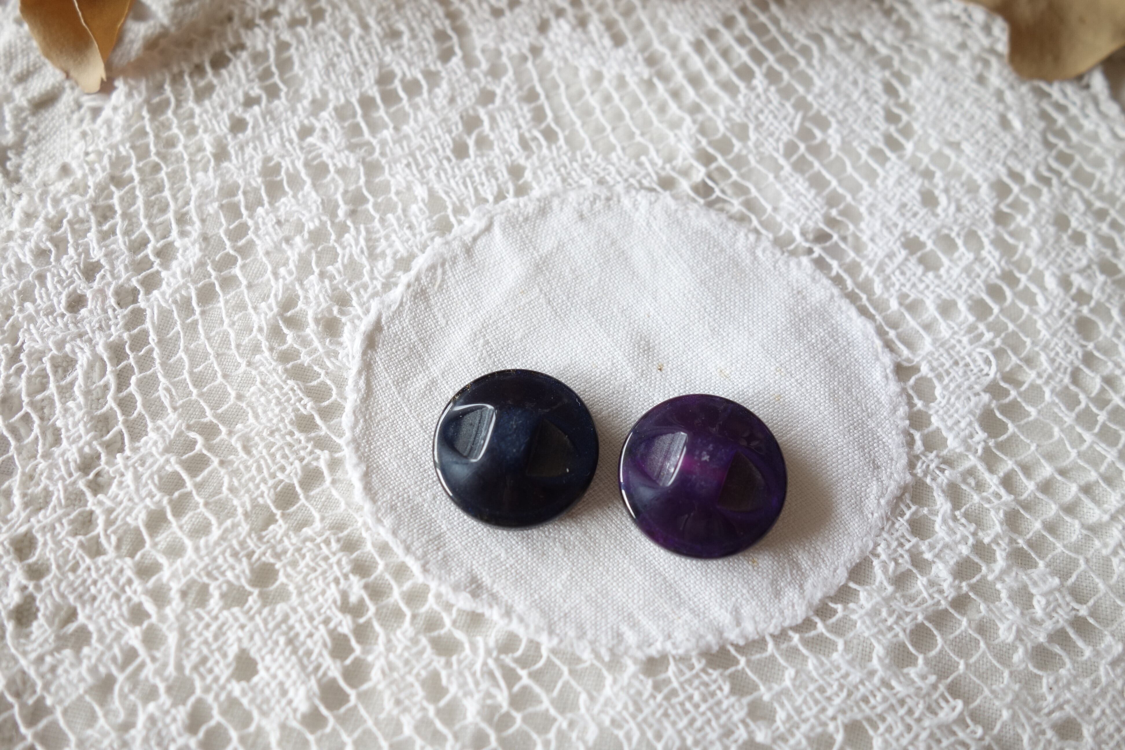 フランス 2個 アンティークボタン A814 ネイビー&パープル