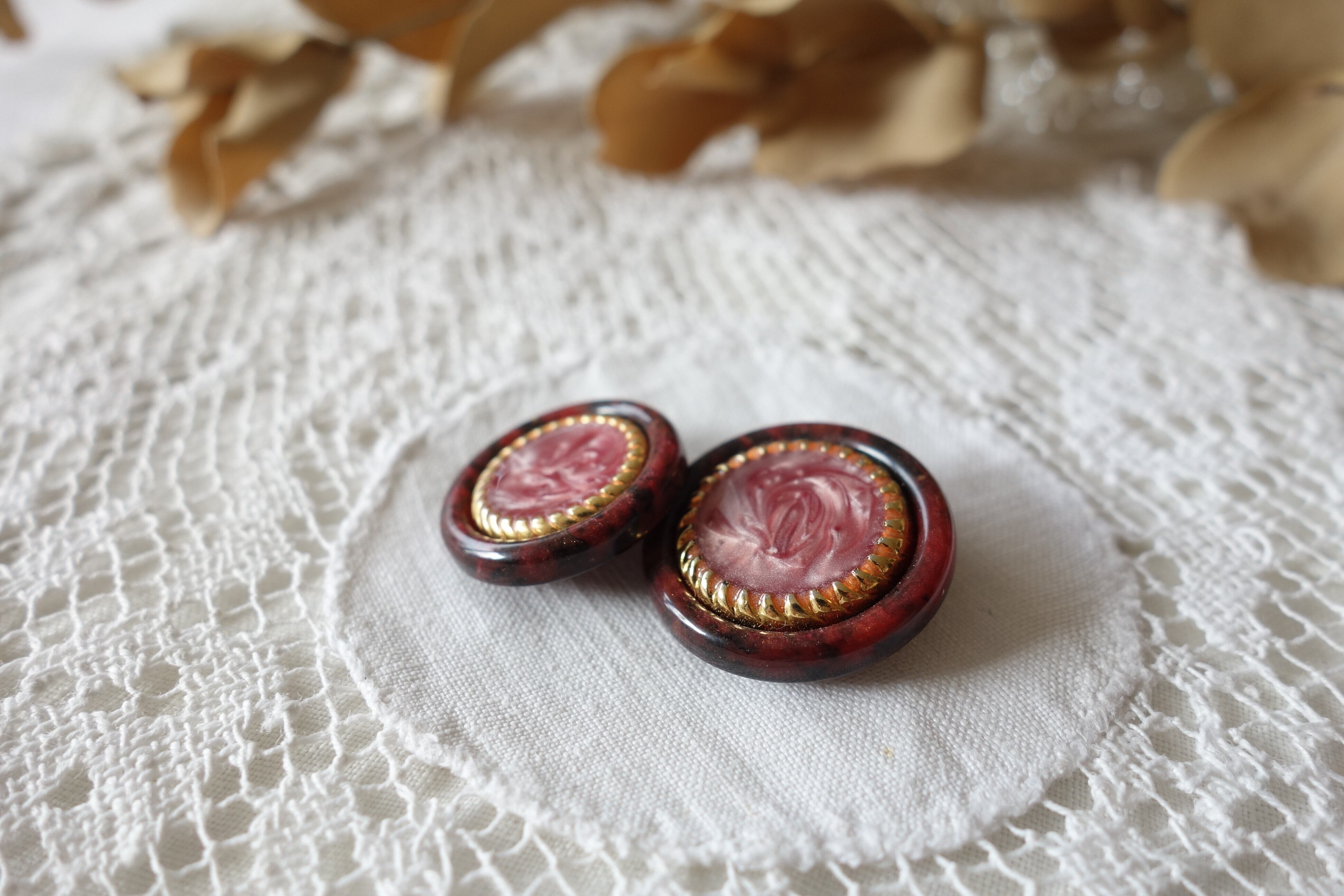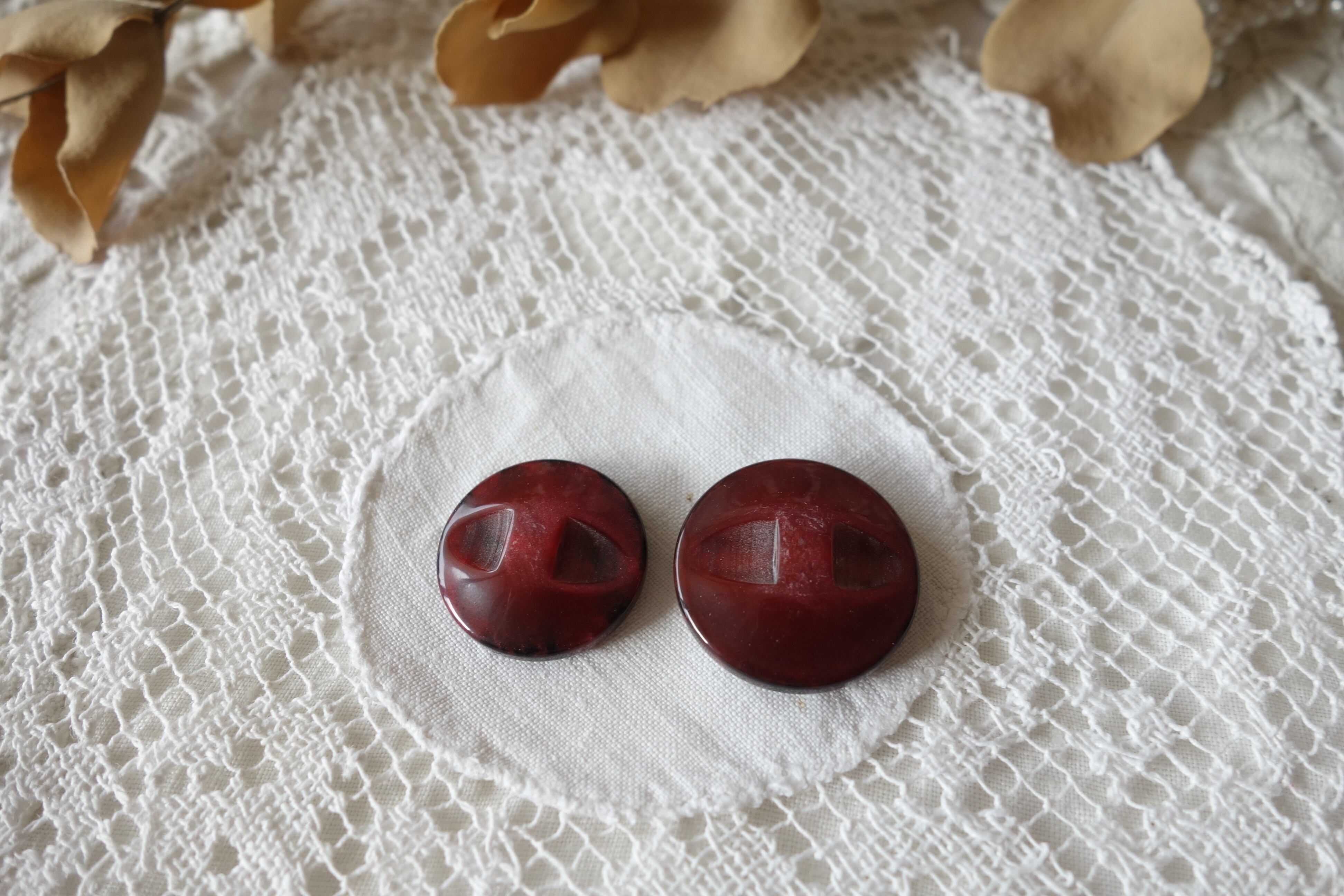 フランス 2個 アンティークボタン A816 プラム