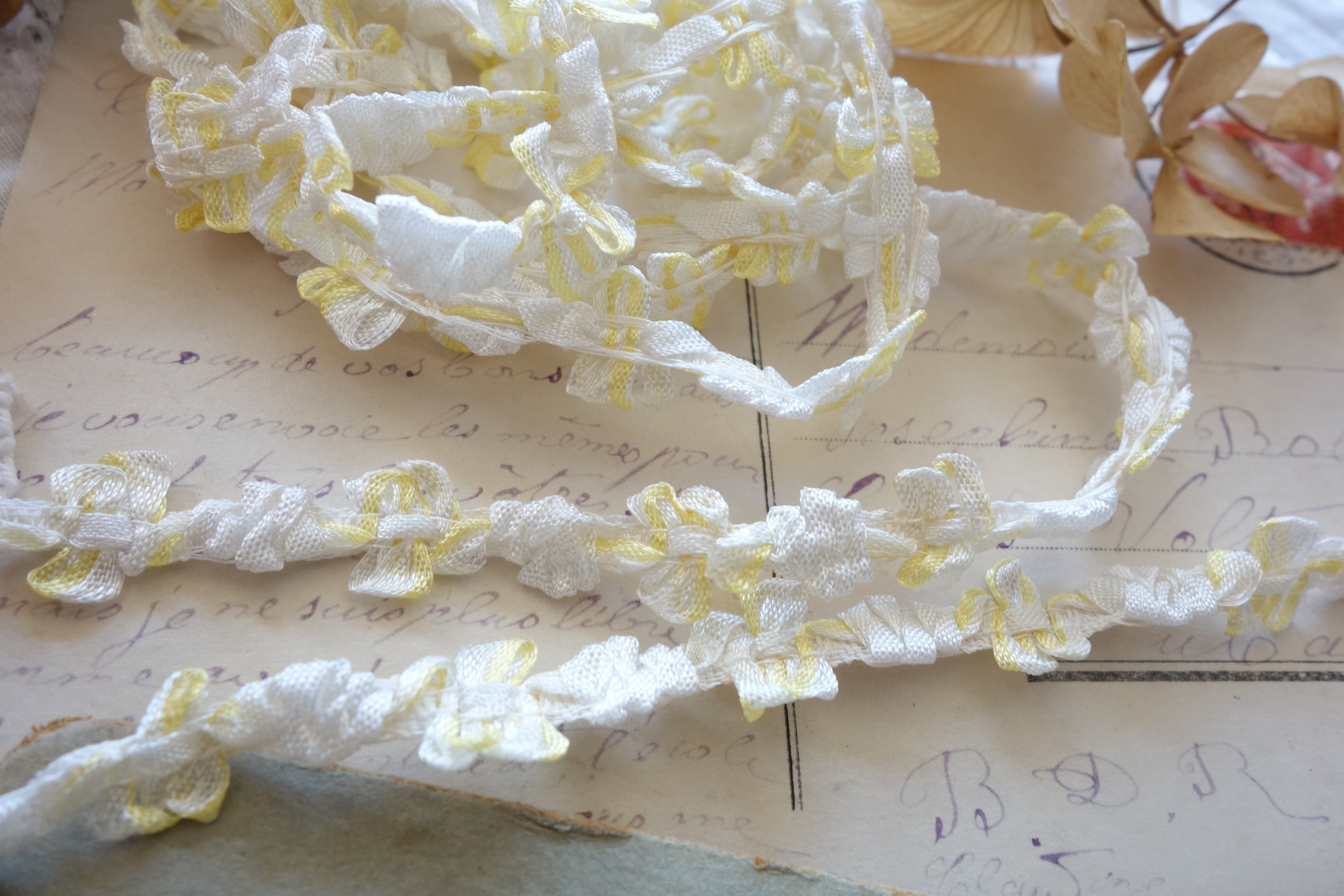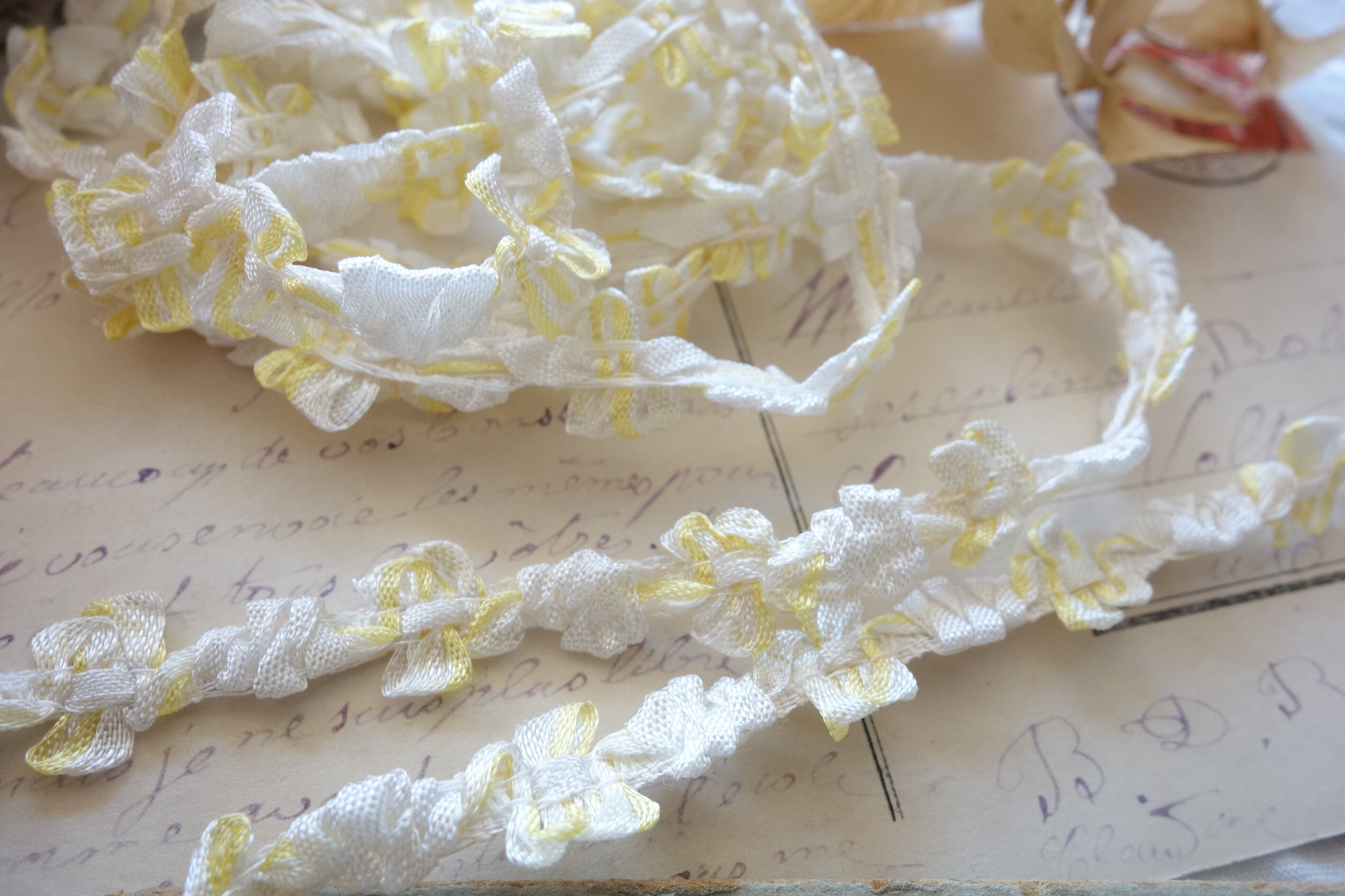 フランスガロン 50㎝ アンティークレースC369 ホワイト&イエロー