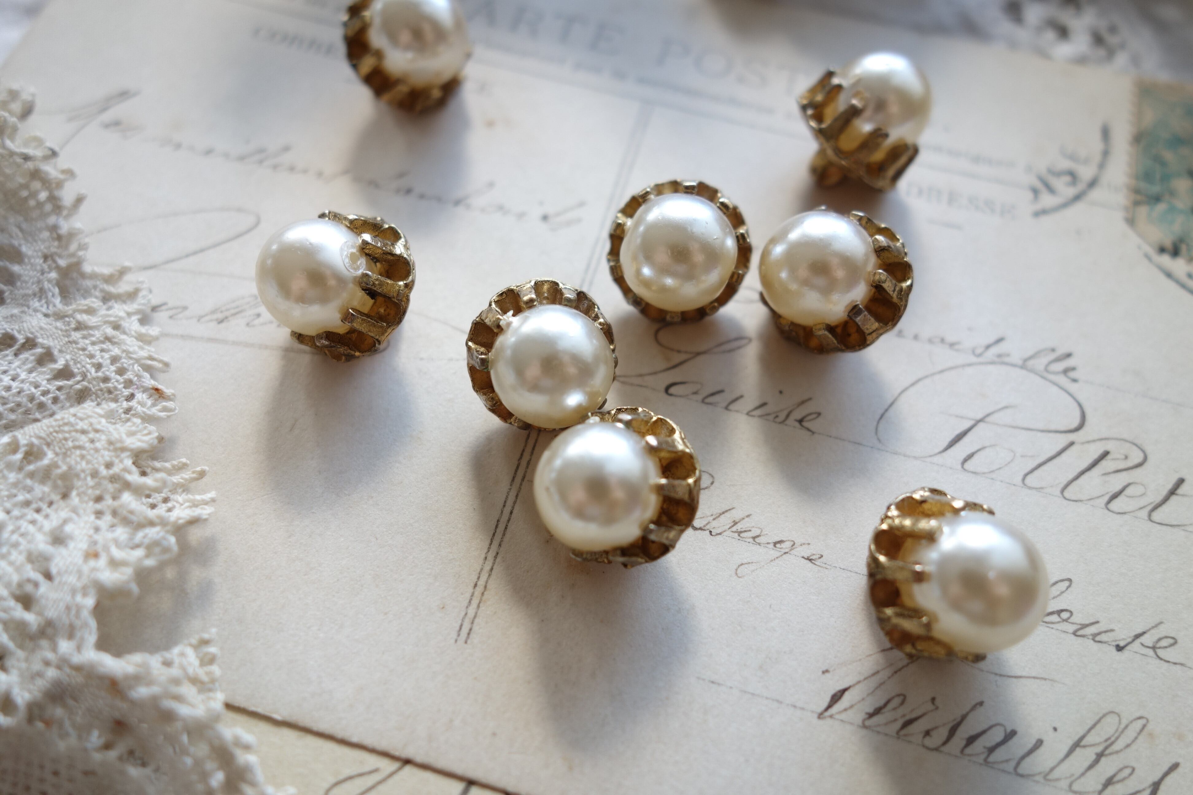 フランス 12㎜ アンティークボタン メタル製A837 ゴールドパール