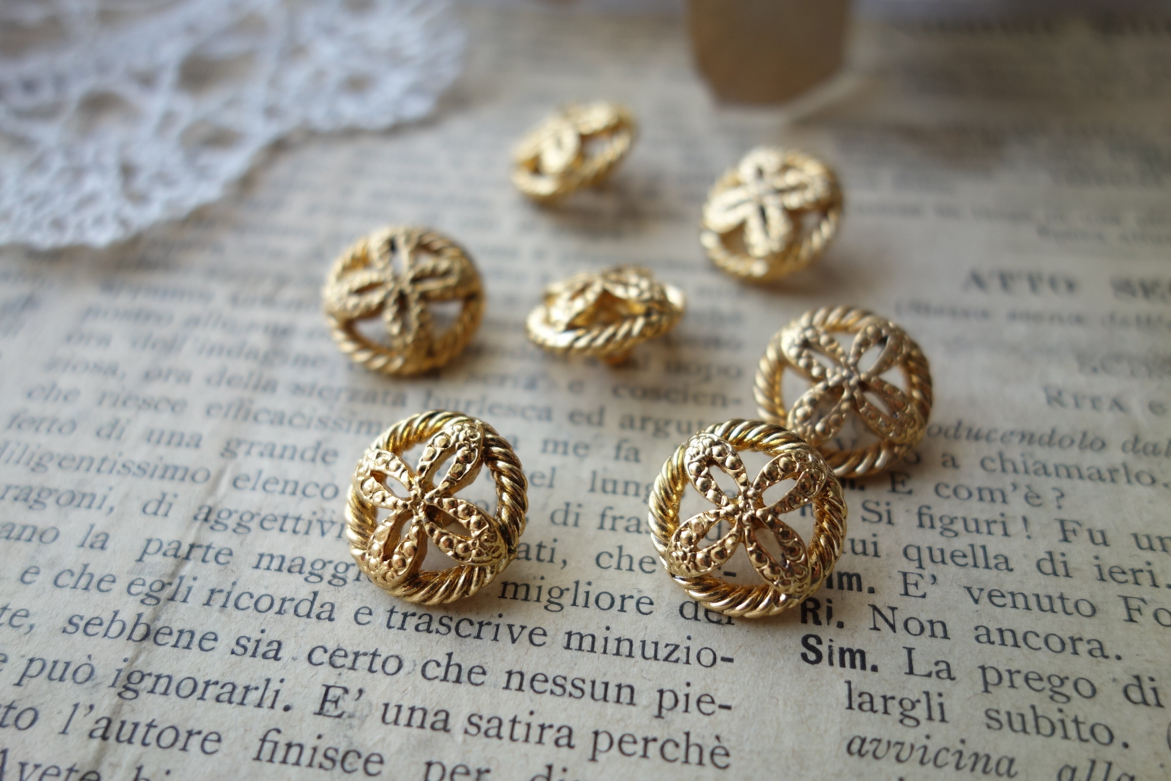 フランス 14㎜ アンティークメタルボタン A840 ゴールド