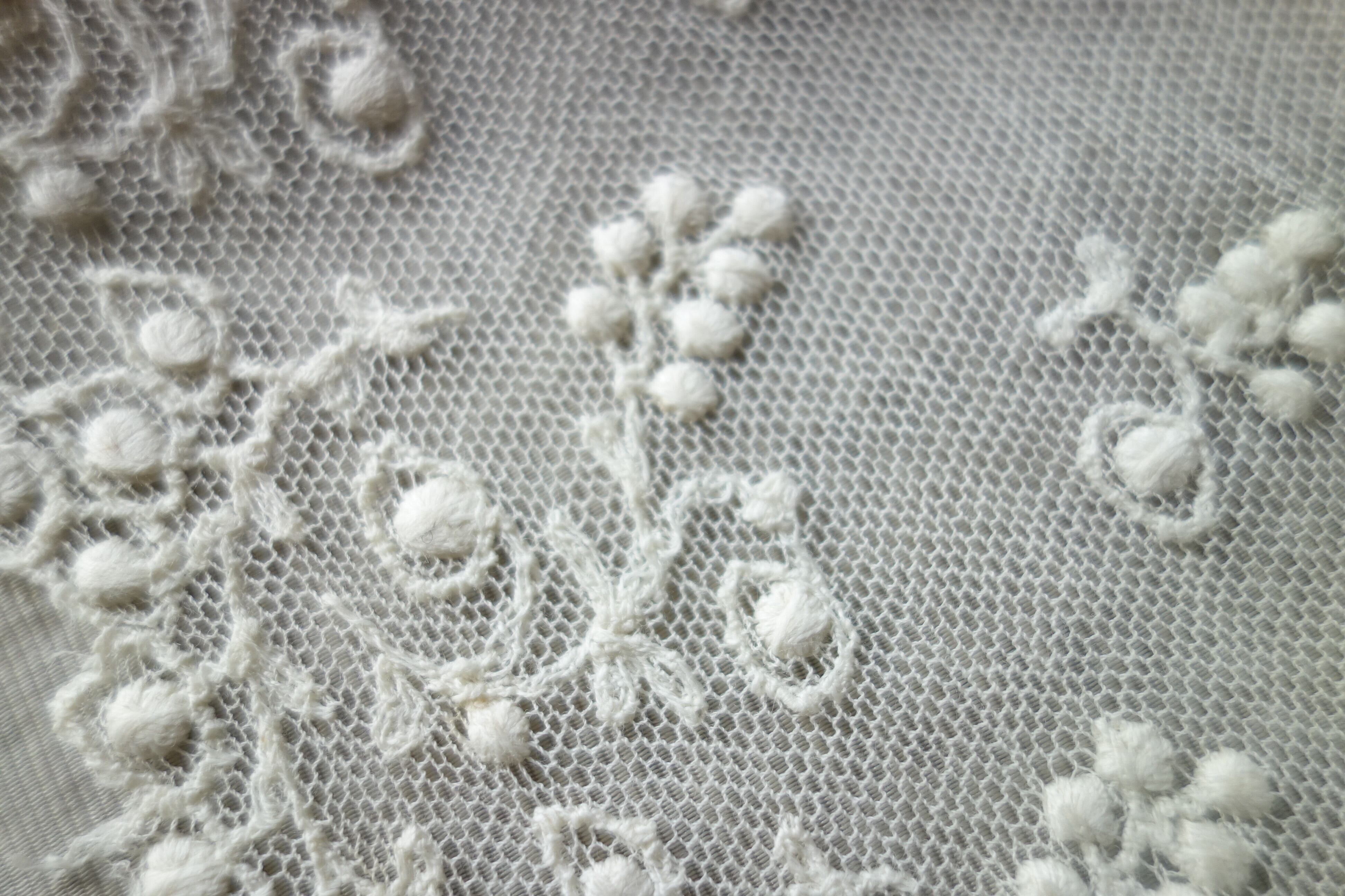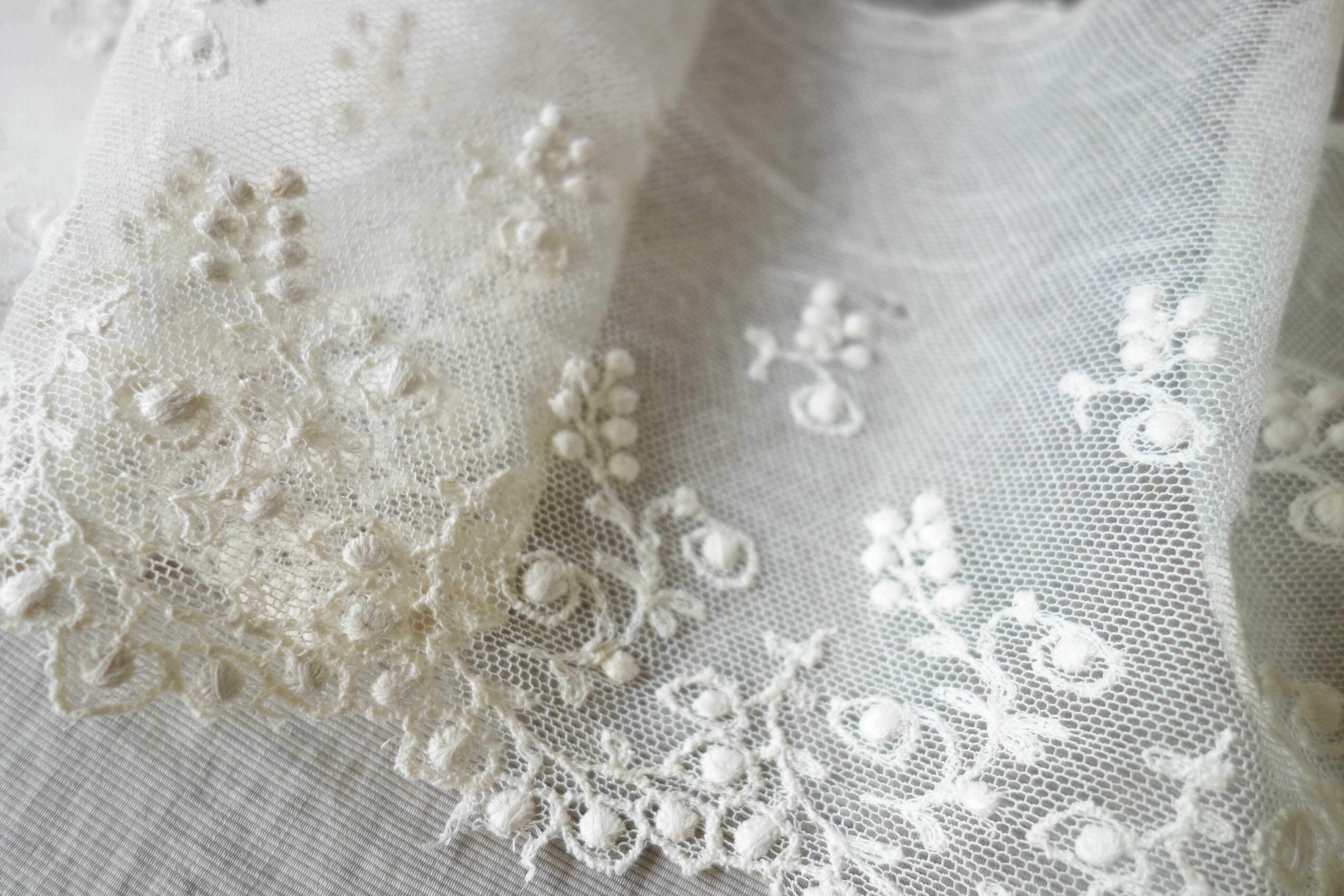 チュールネットに施された刺繍が趣があり素敵なレースです。