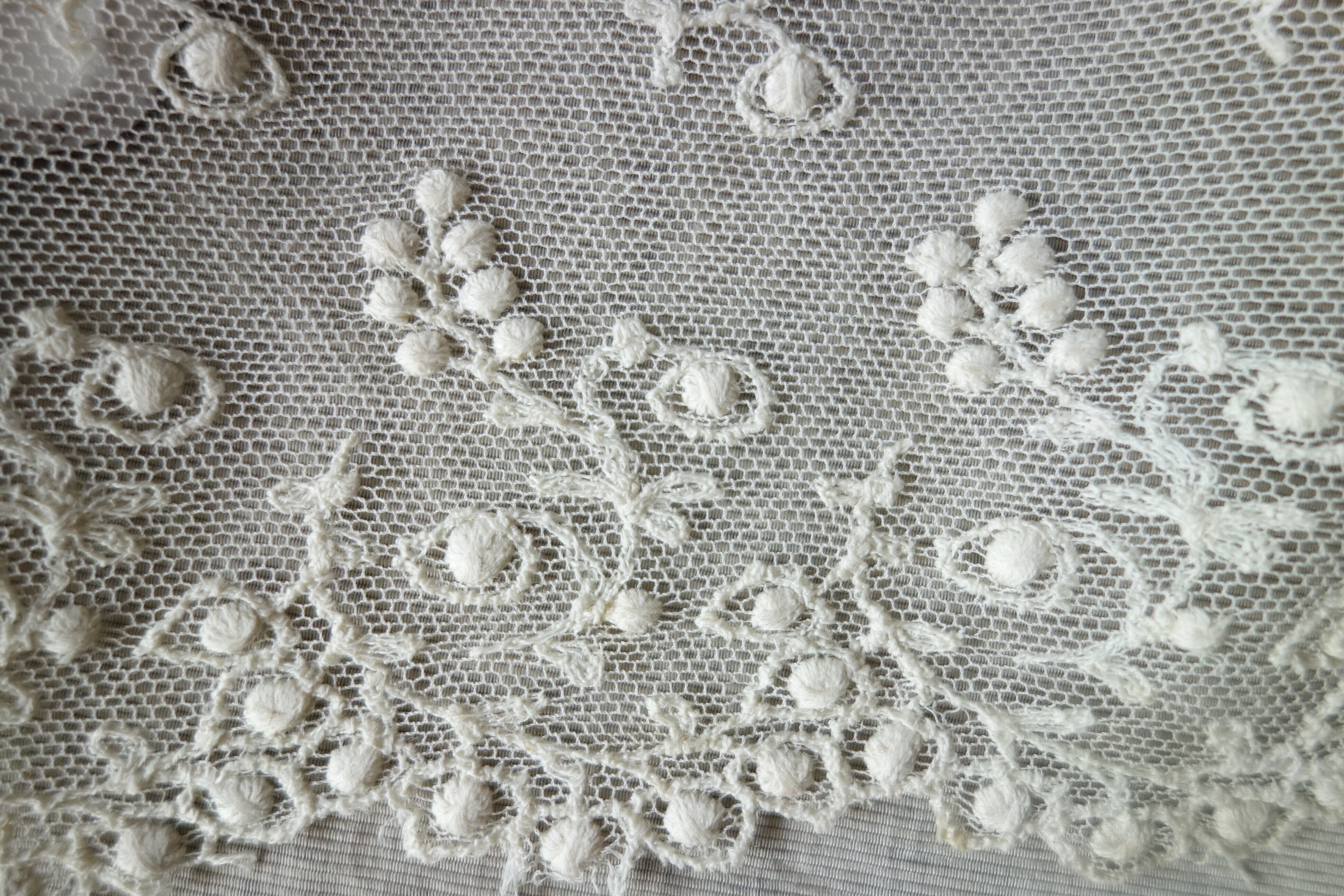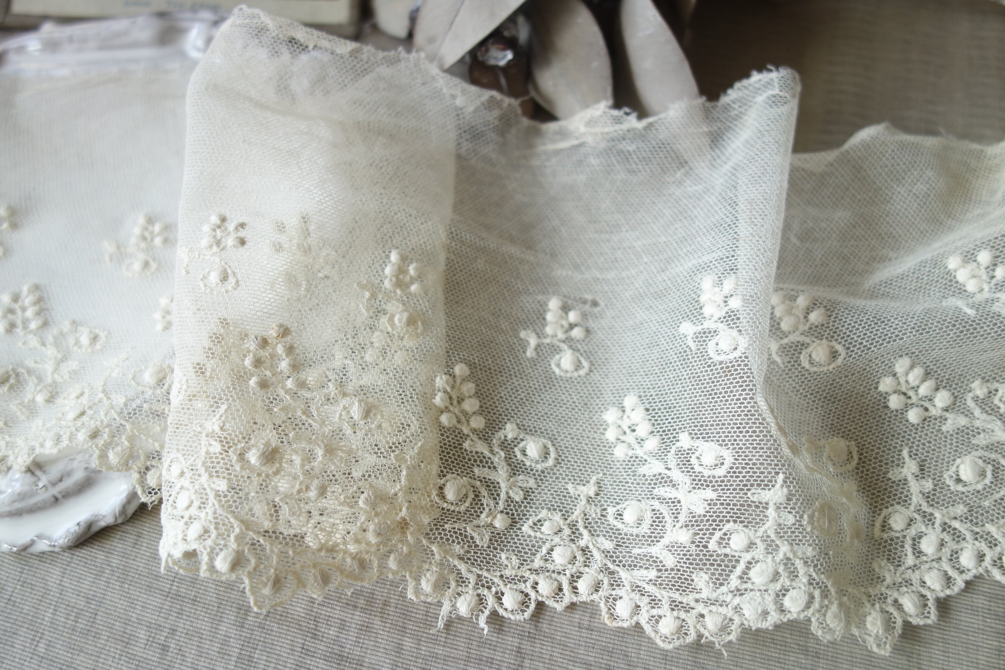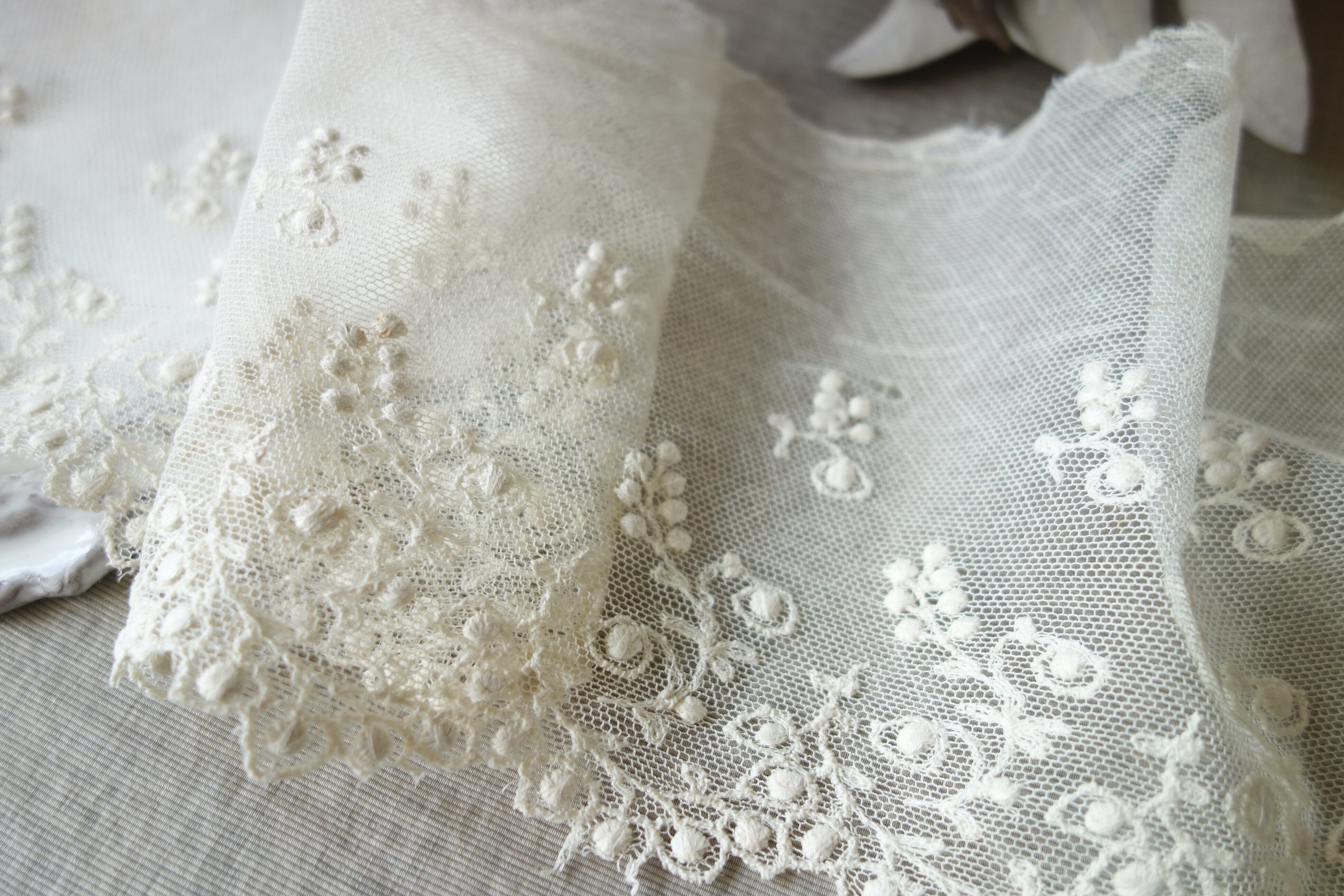 フランス 66㎝ アンティーク刺繍チュール C376 クリーム