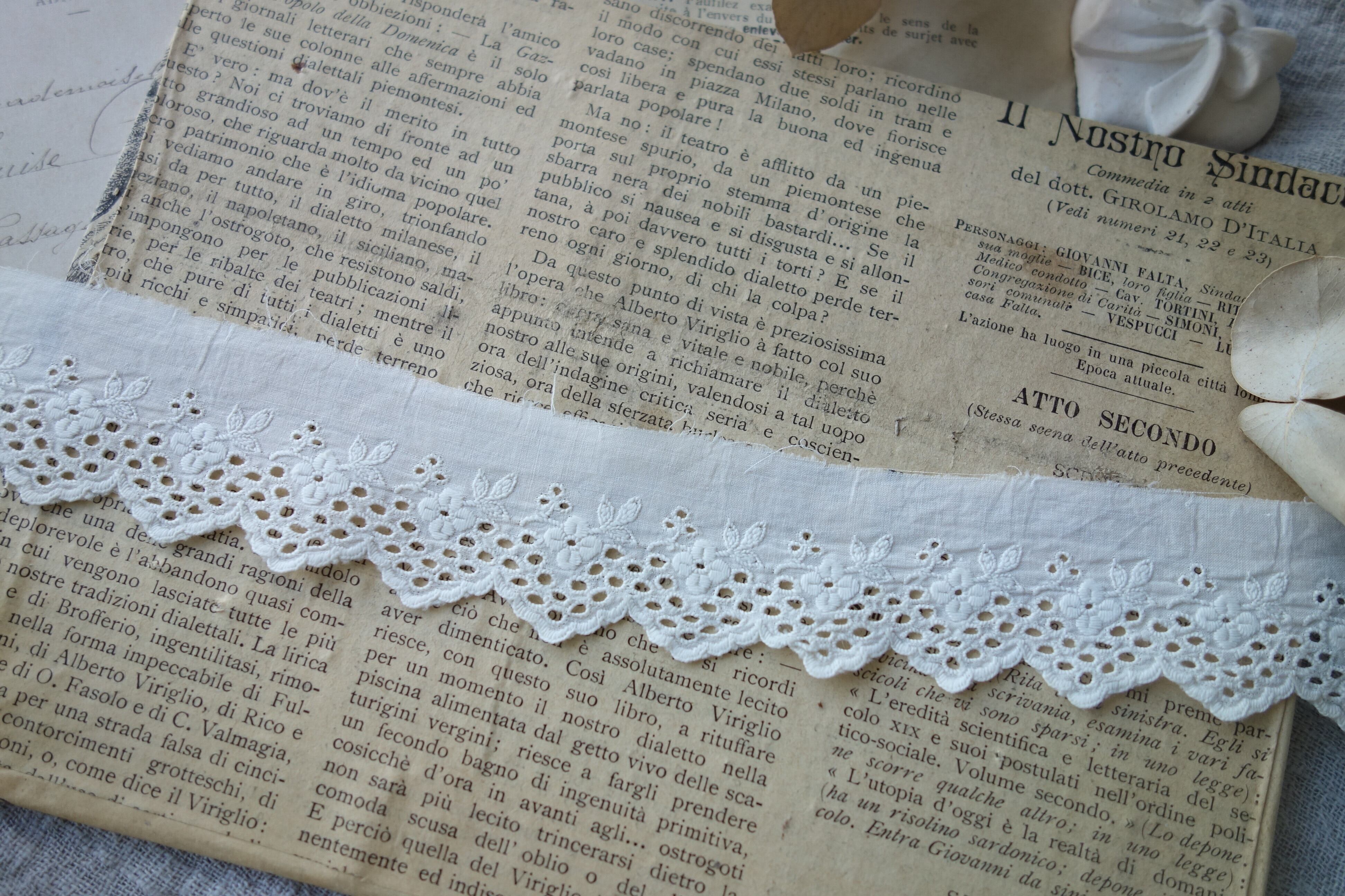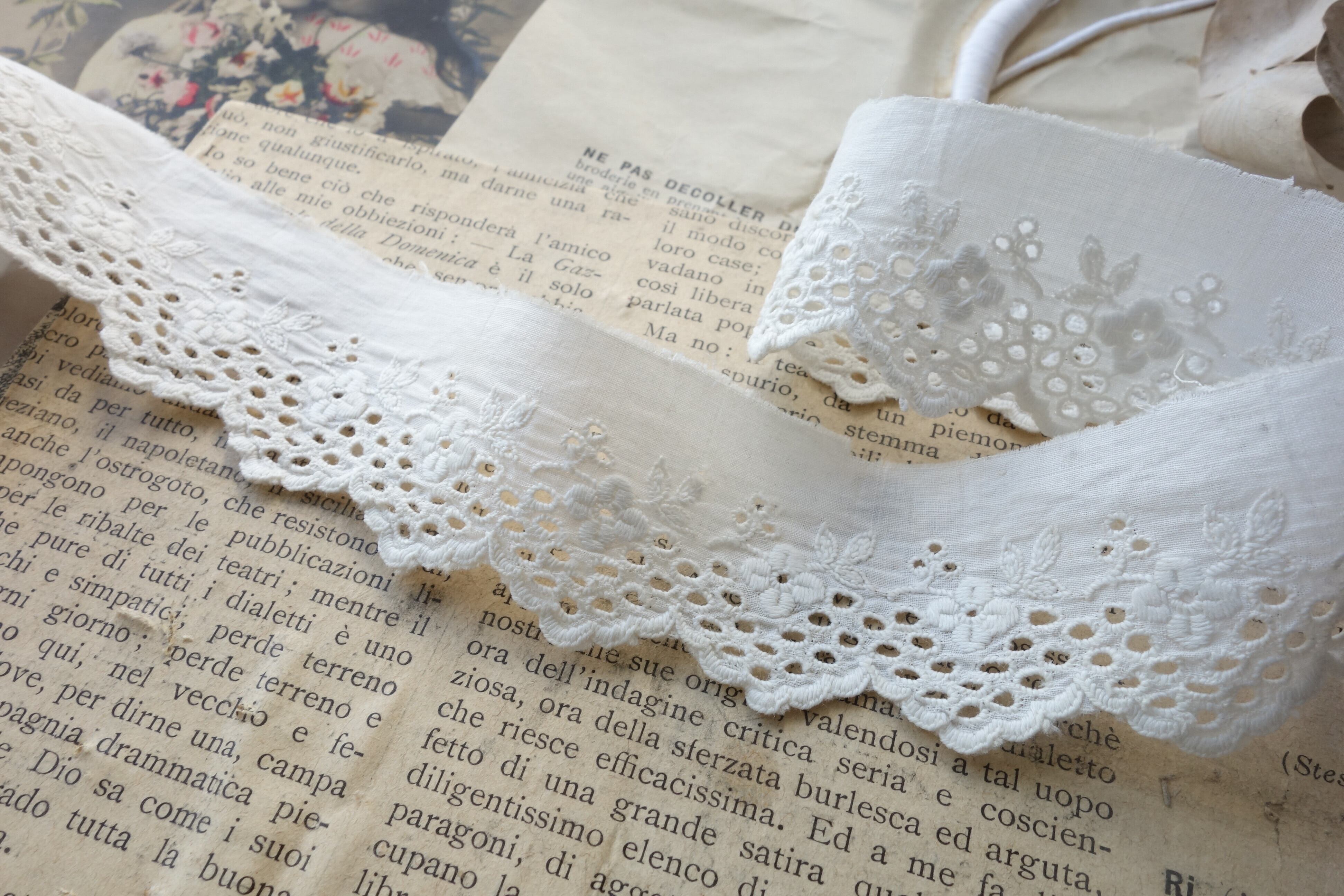 フランス 30㎝ アンティークブロドリーレースB207 エクリュ
