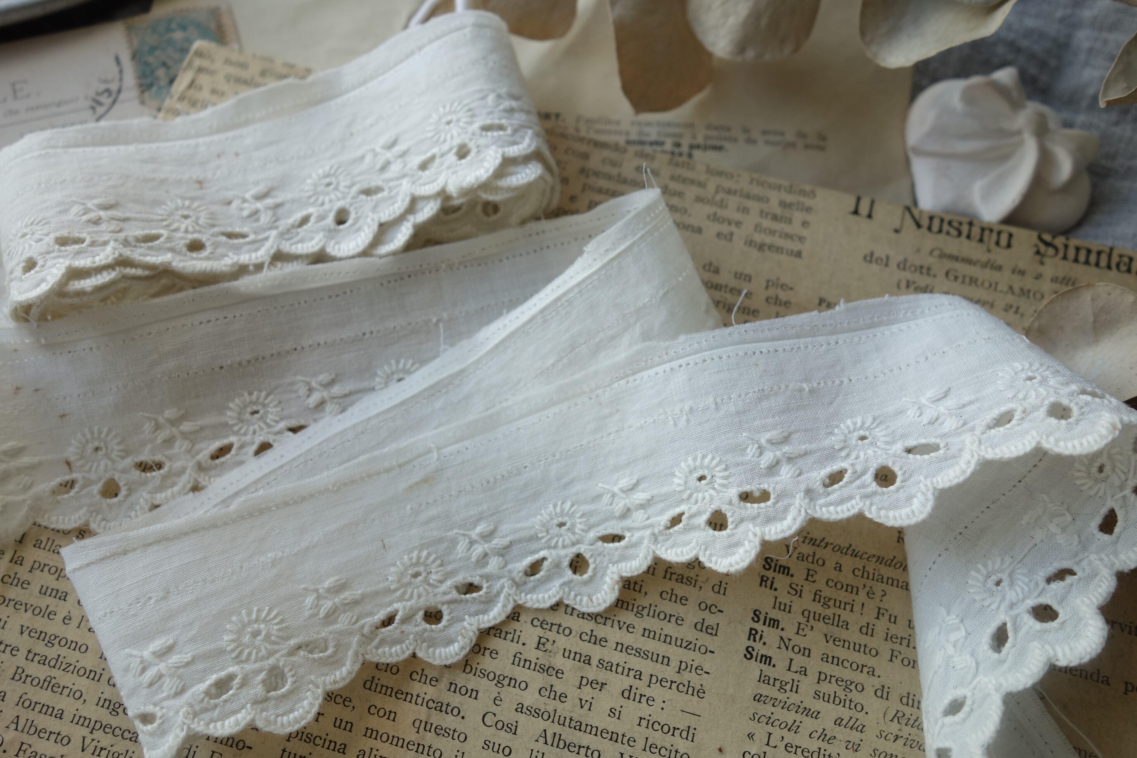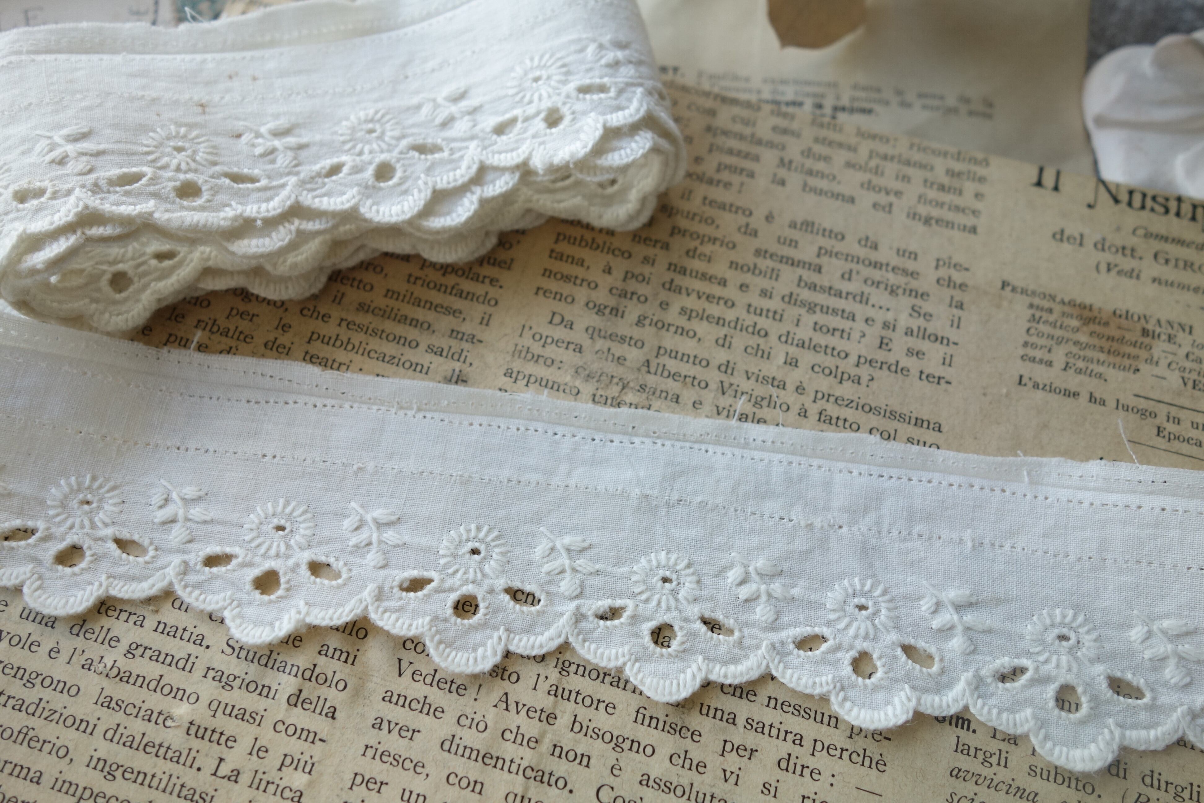 フランスアンティークの刺繍アイレットレースです。