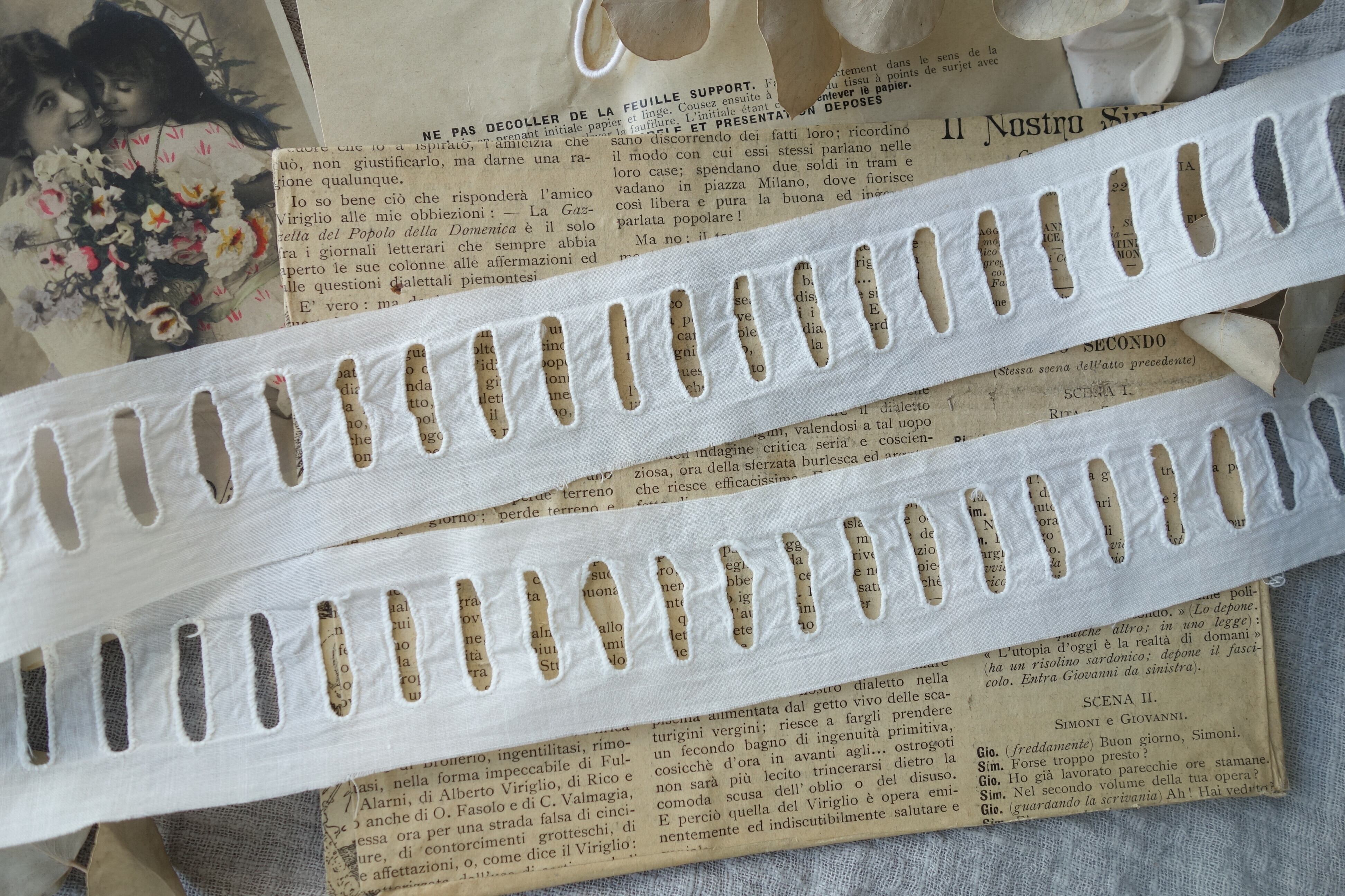 フランス 50㎝ アンティークアイレットレース B209 ホワイト