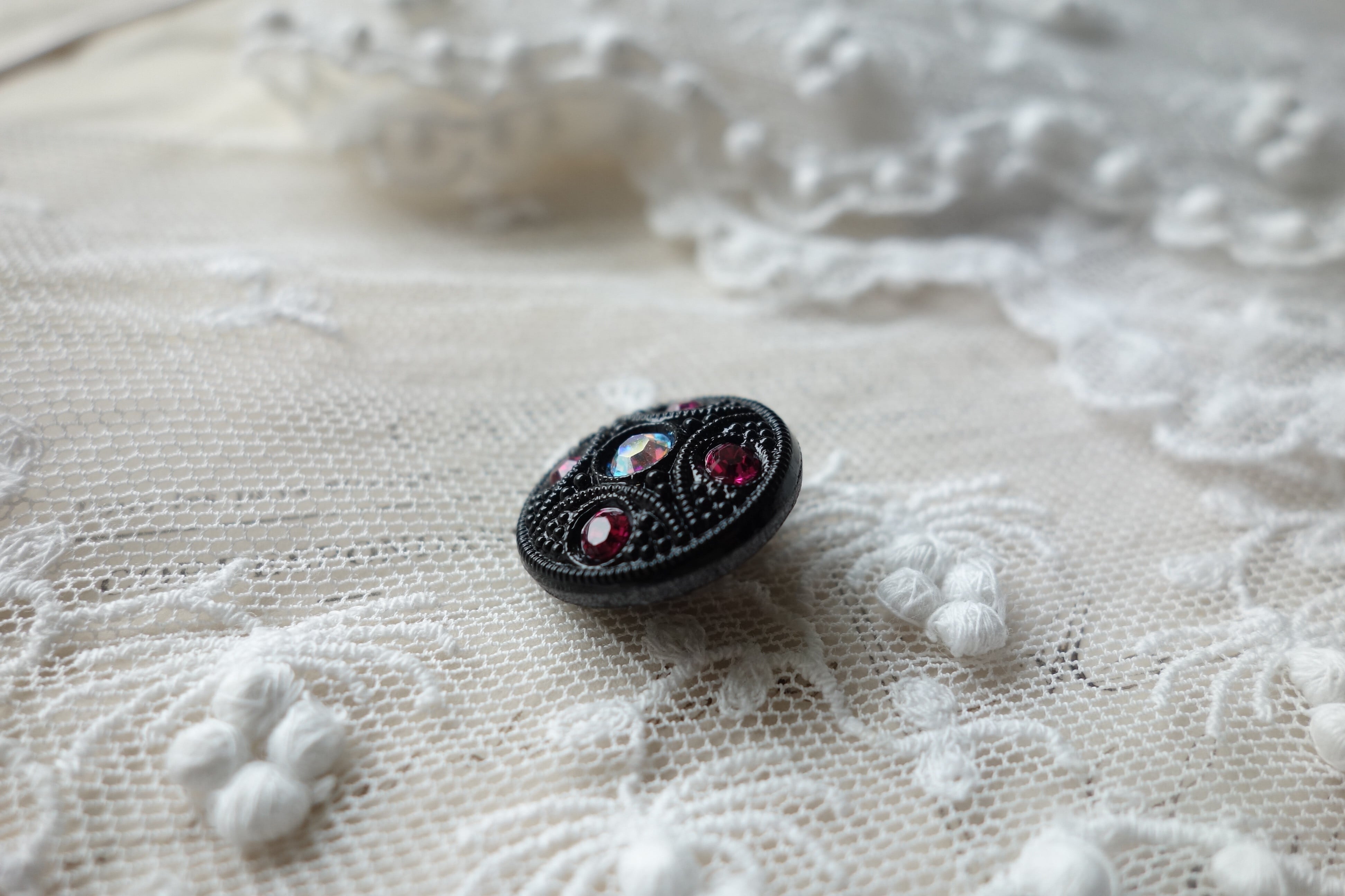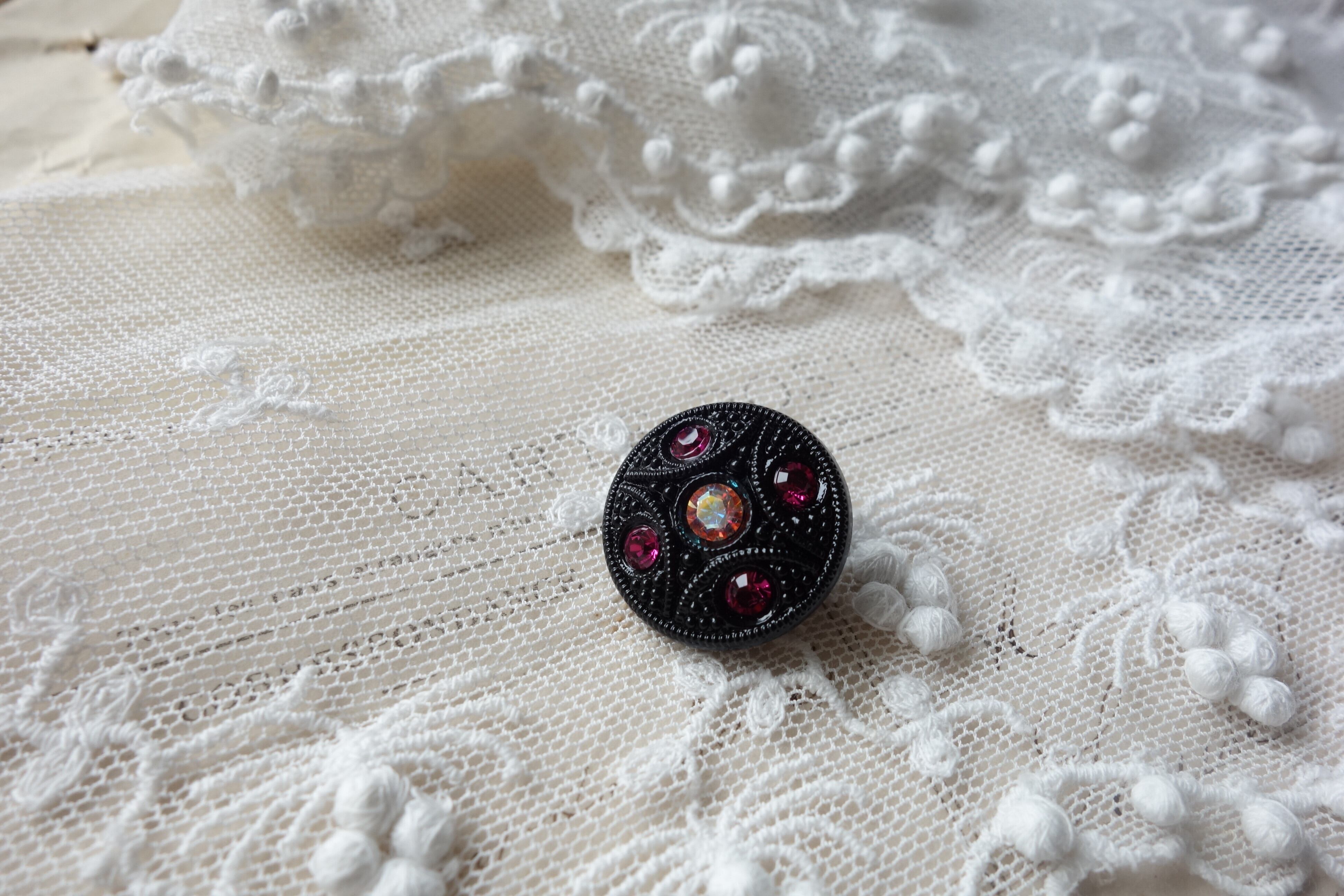 ピンク(マゼンタ)のビジューが付いたガラスボタン