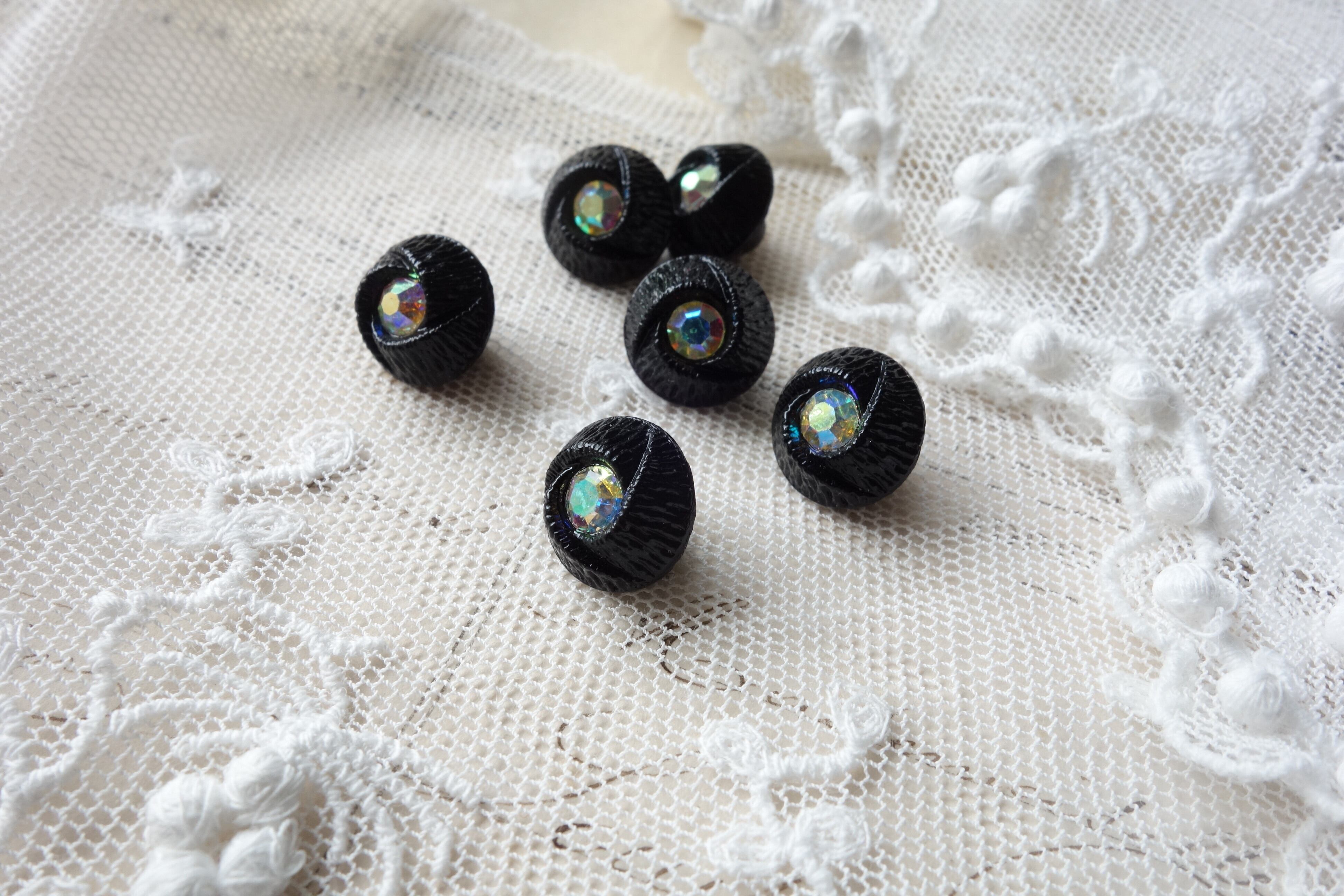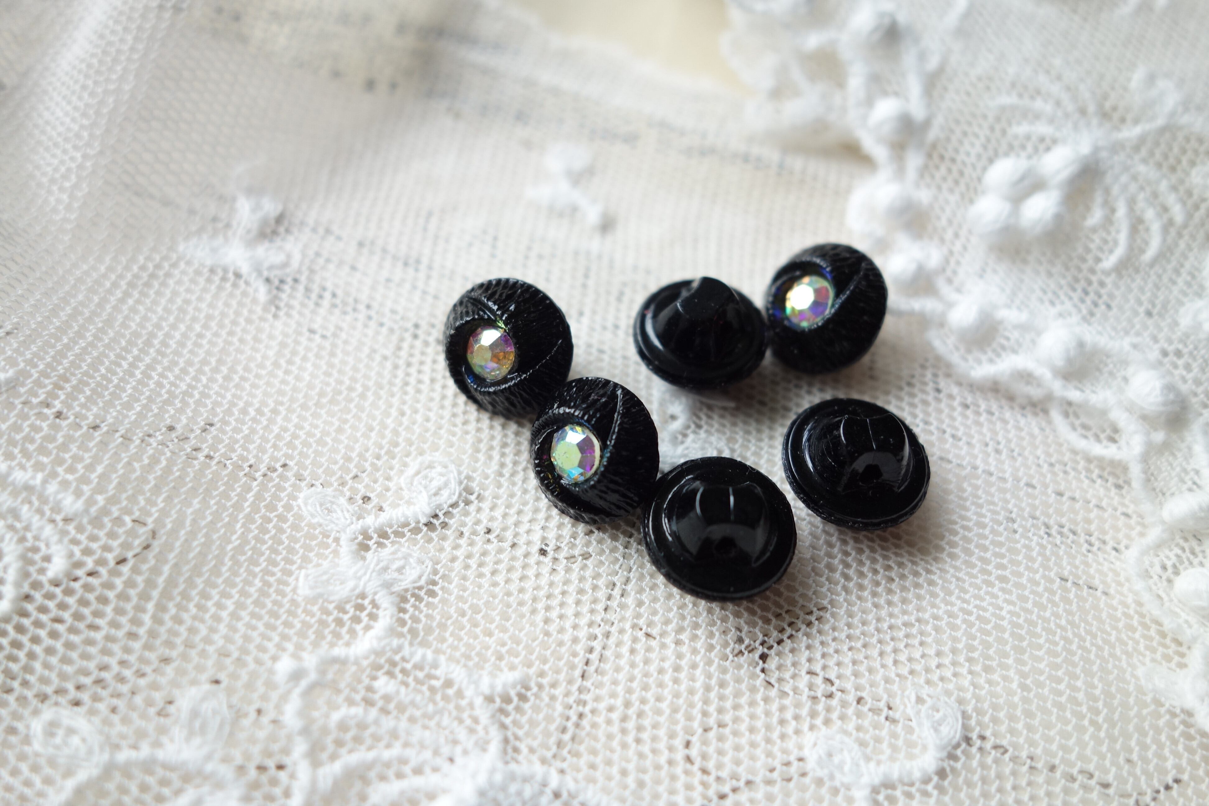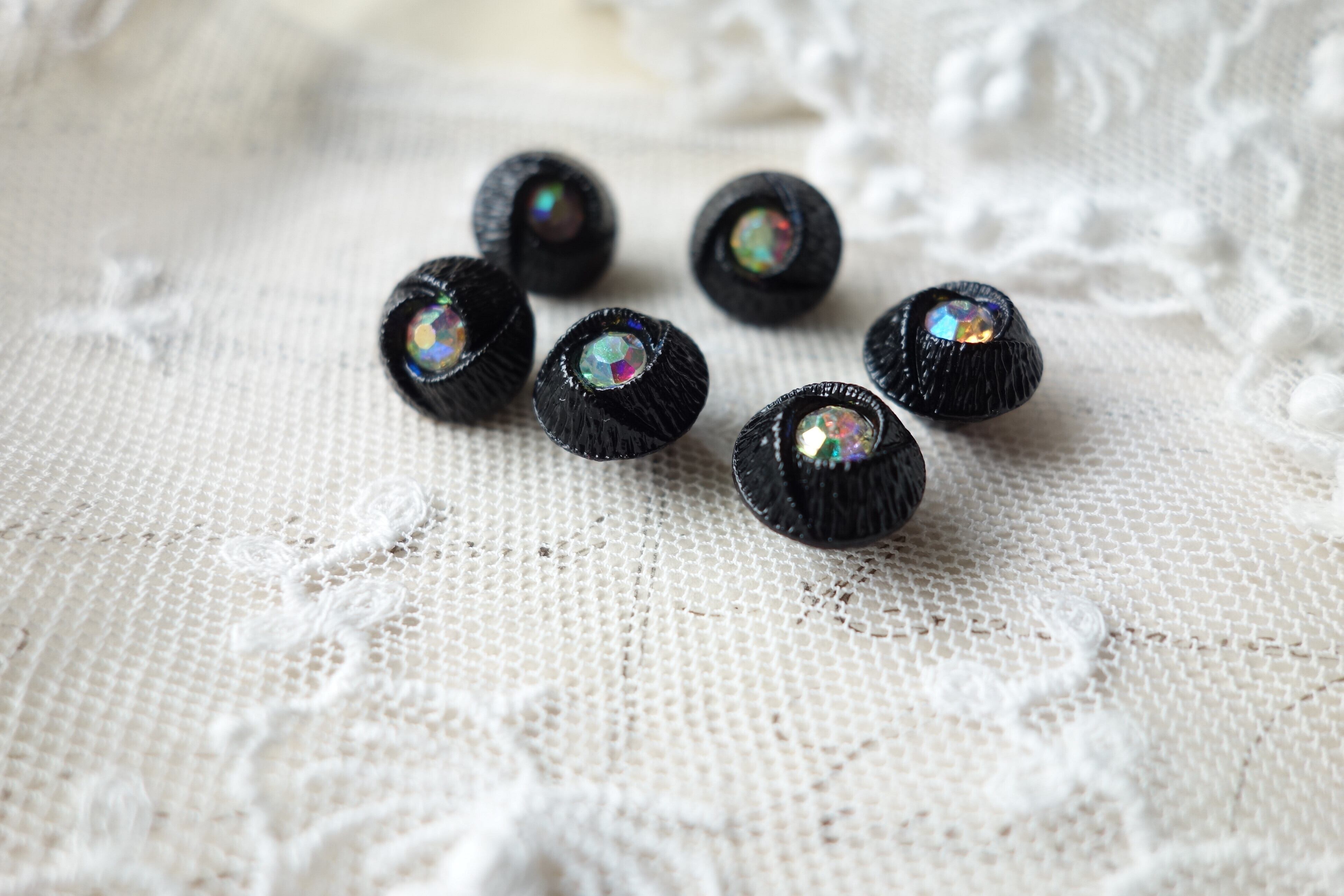 フランス 11㎜ アンティークボタン ガラス製 A854 ブラック