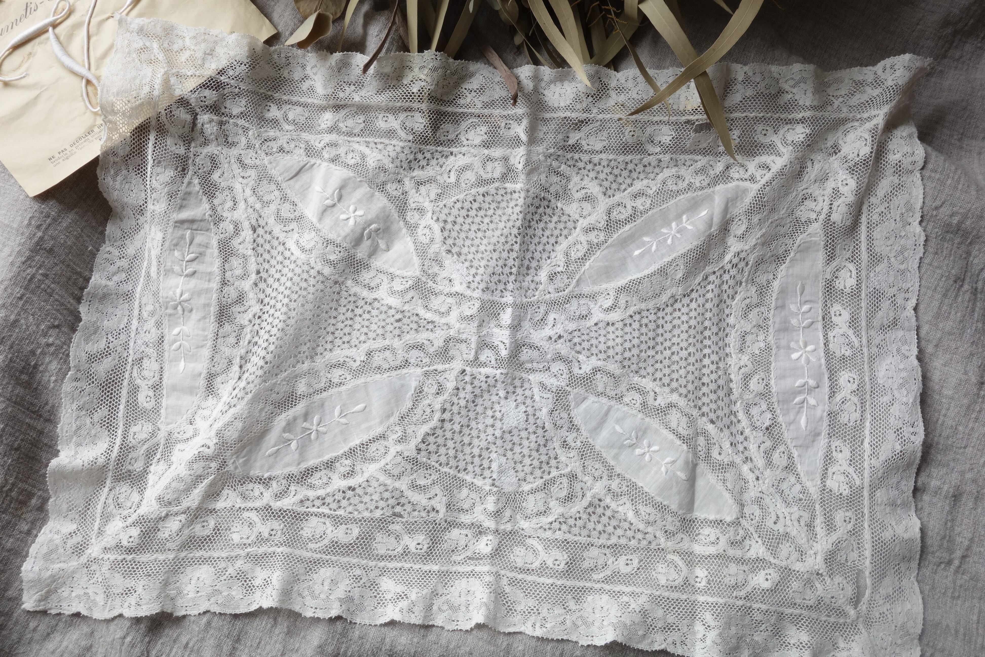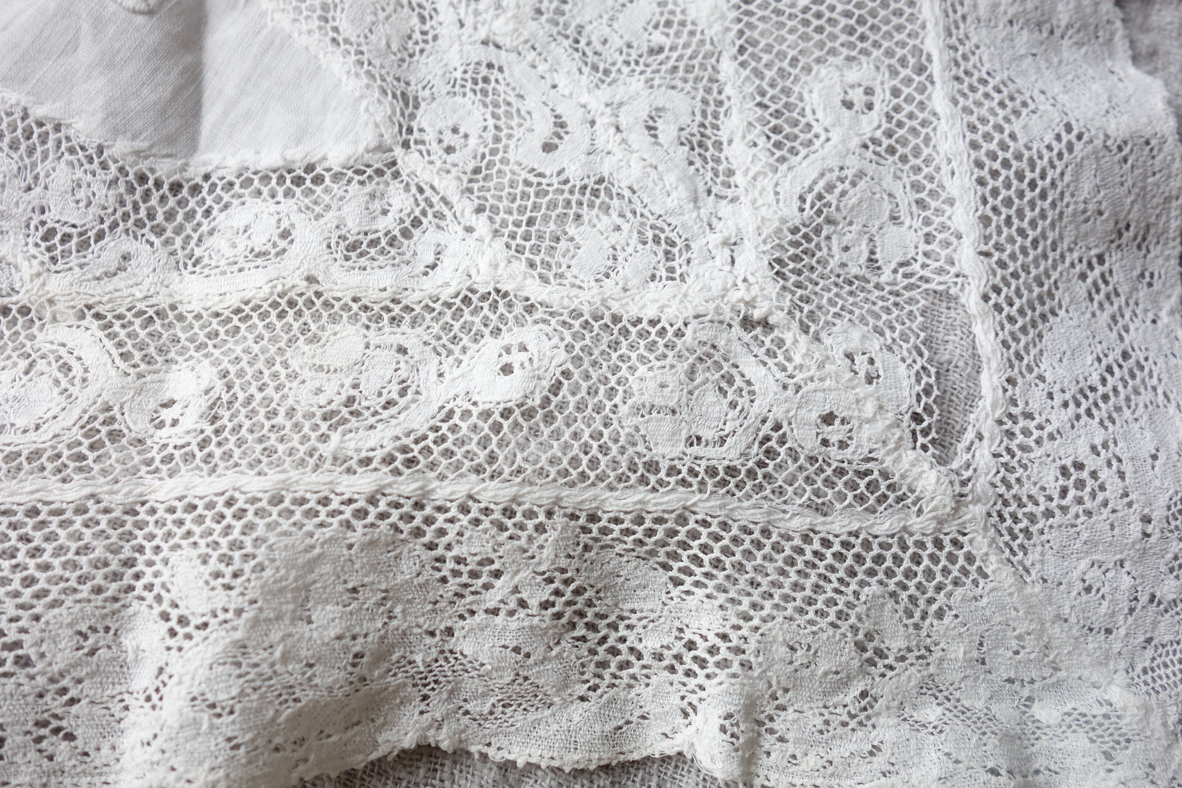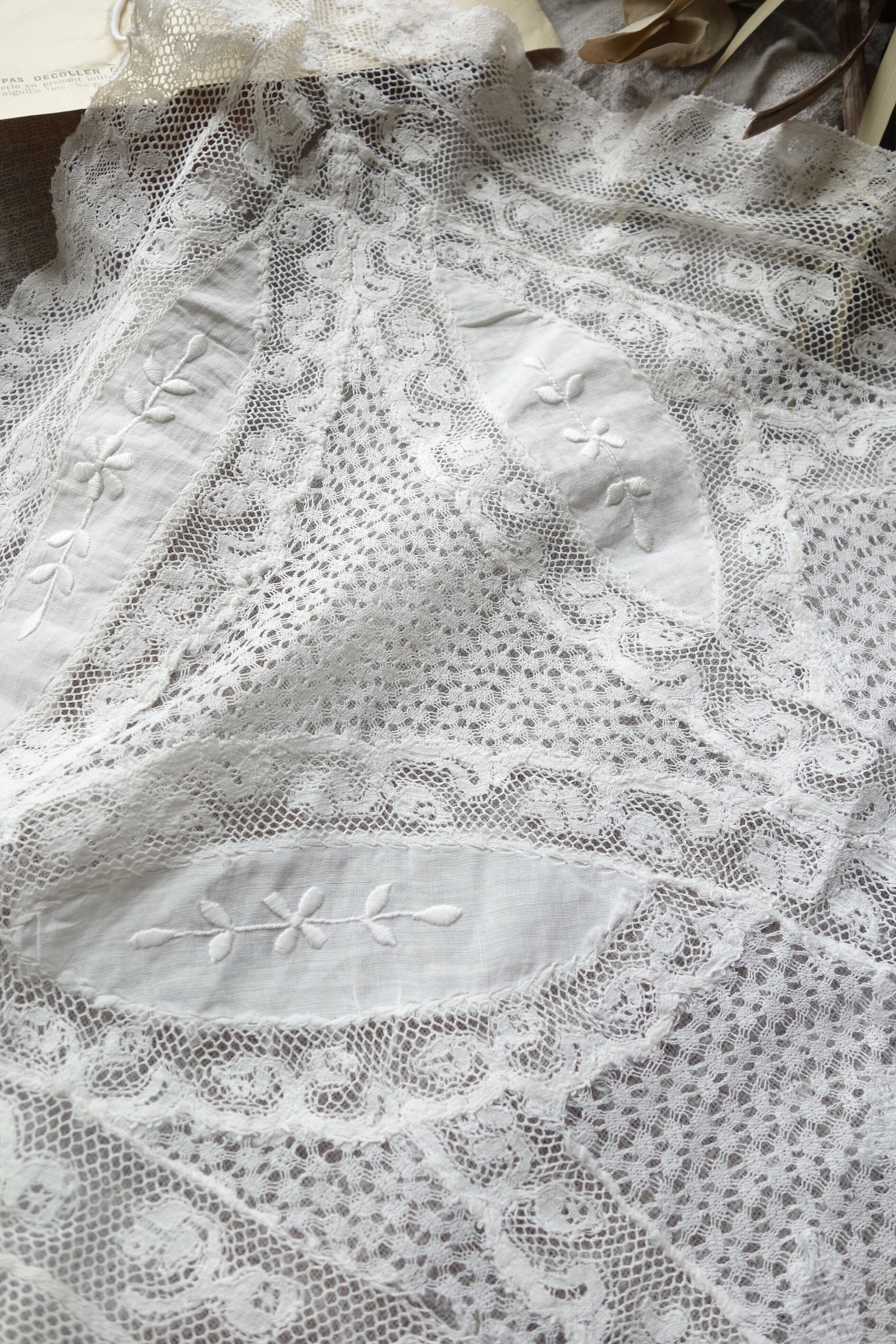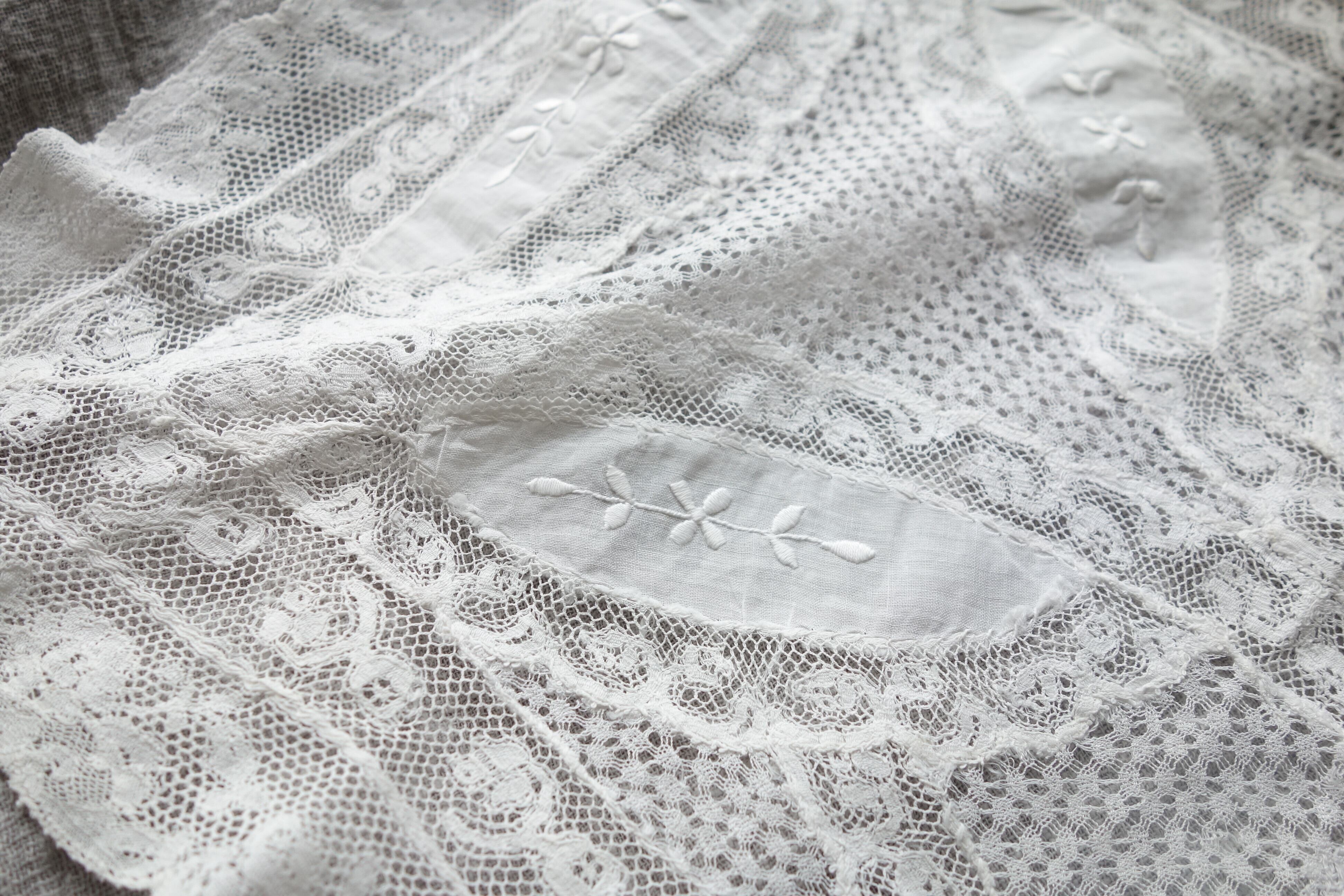 刺繍とレースのパッチワークが美しいドイリー