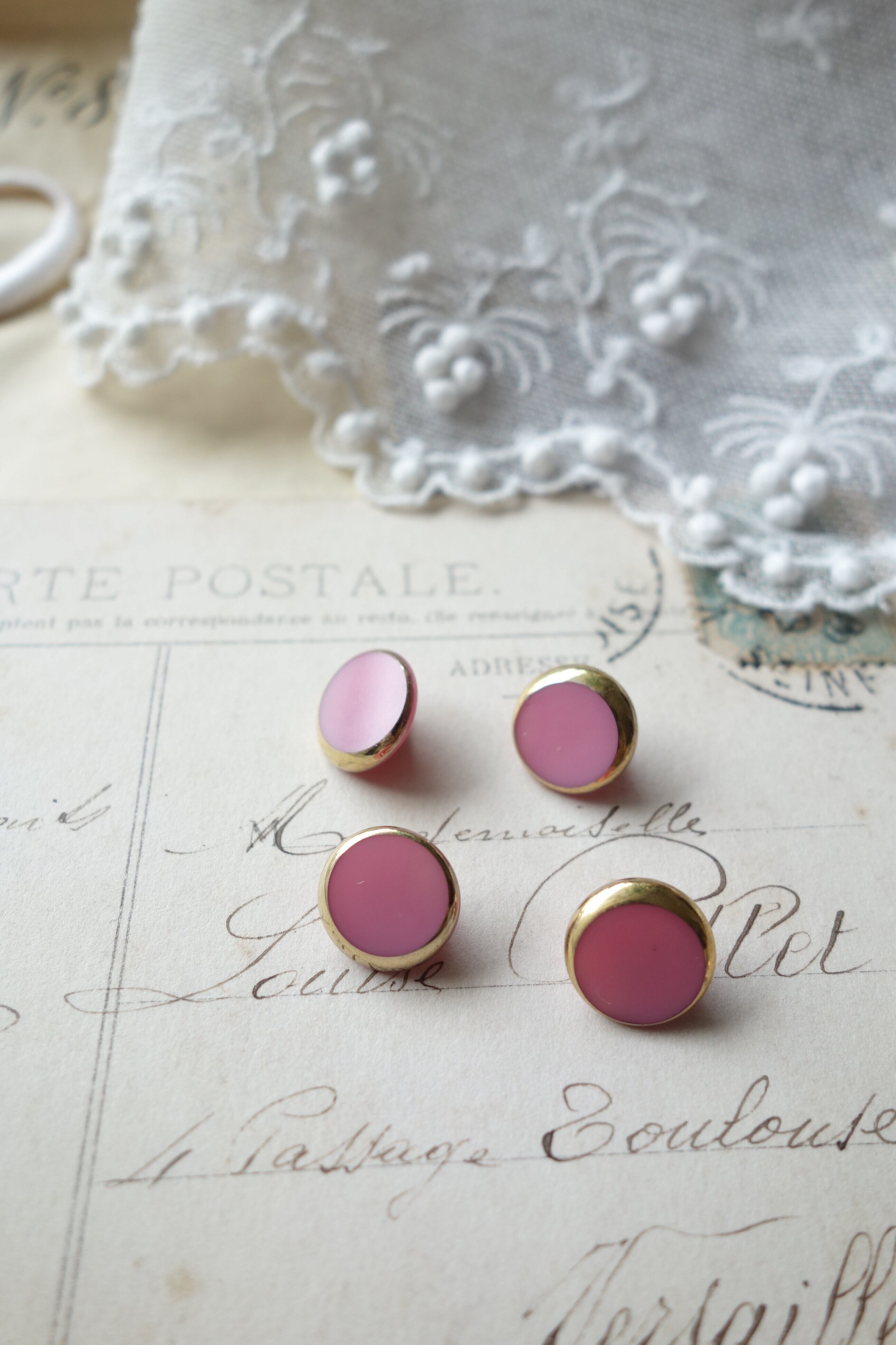 フランス 11㎜ アンティークボタン ガラス製 A857 ピンク
