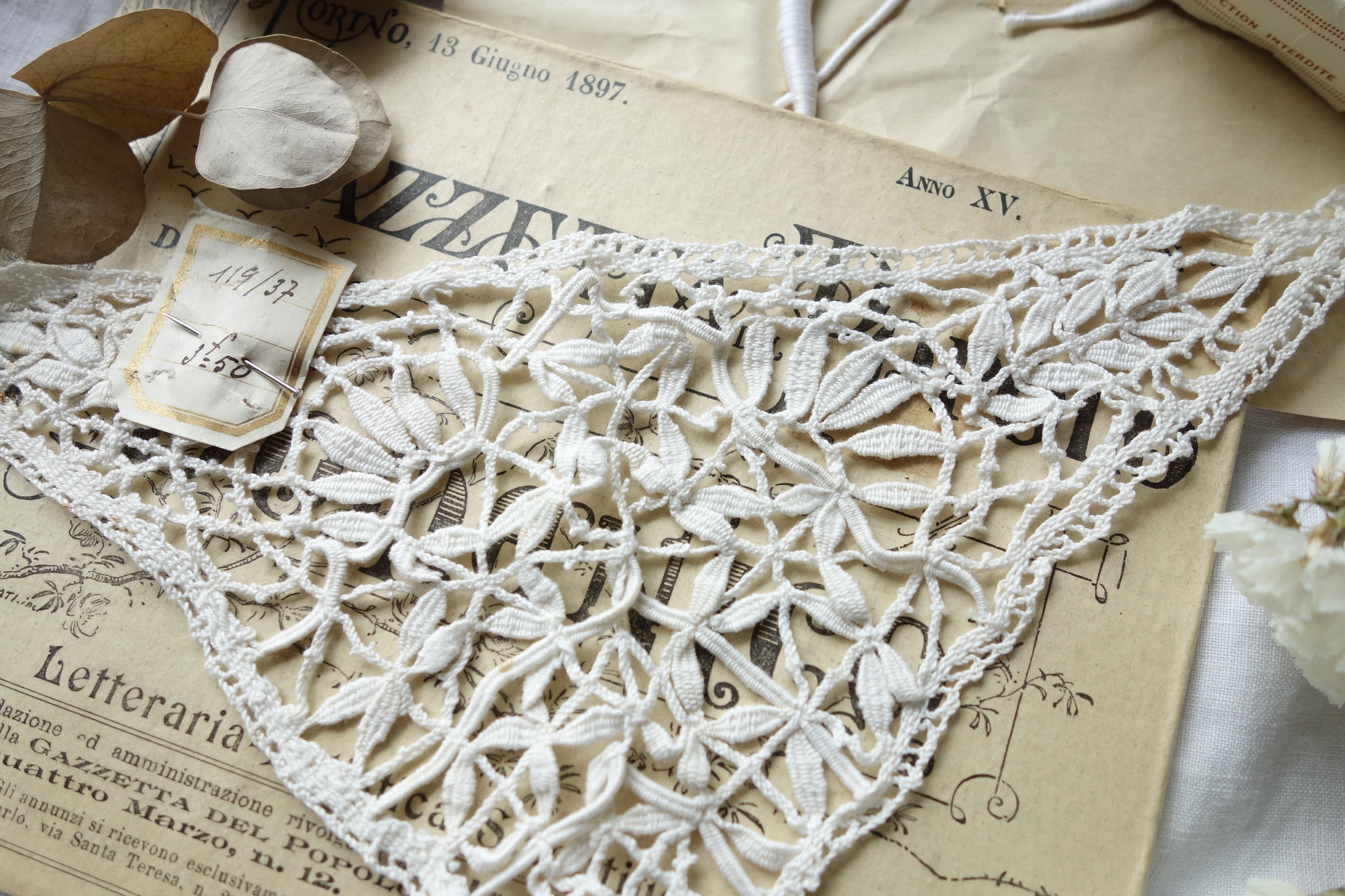 France ラベル付 アンティーク三角モチーフ B226 アイボリー