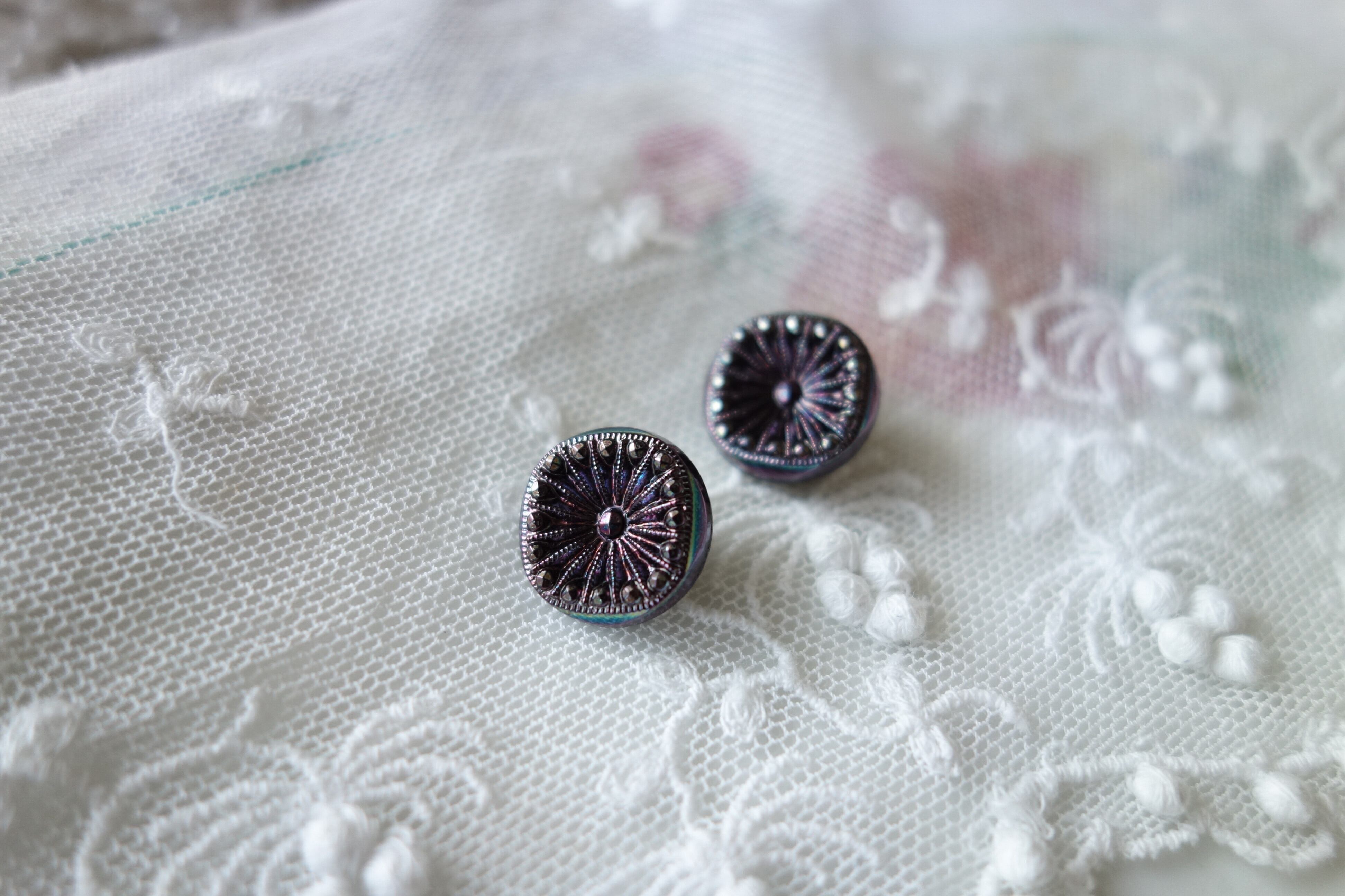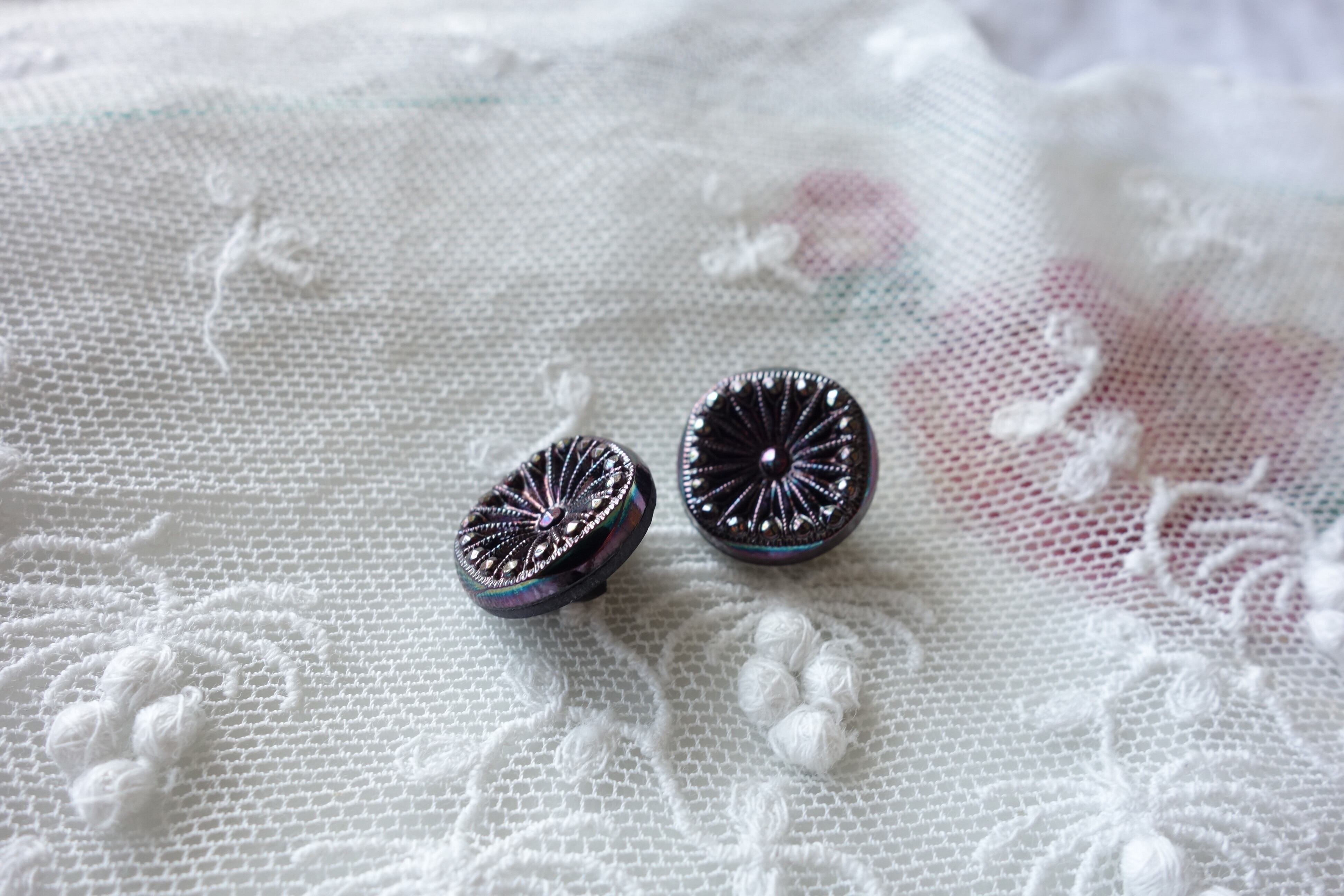 アンティークボタン ガラス製 A905 ブラウンパープル