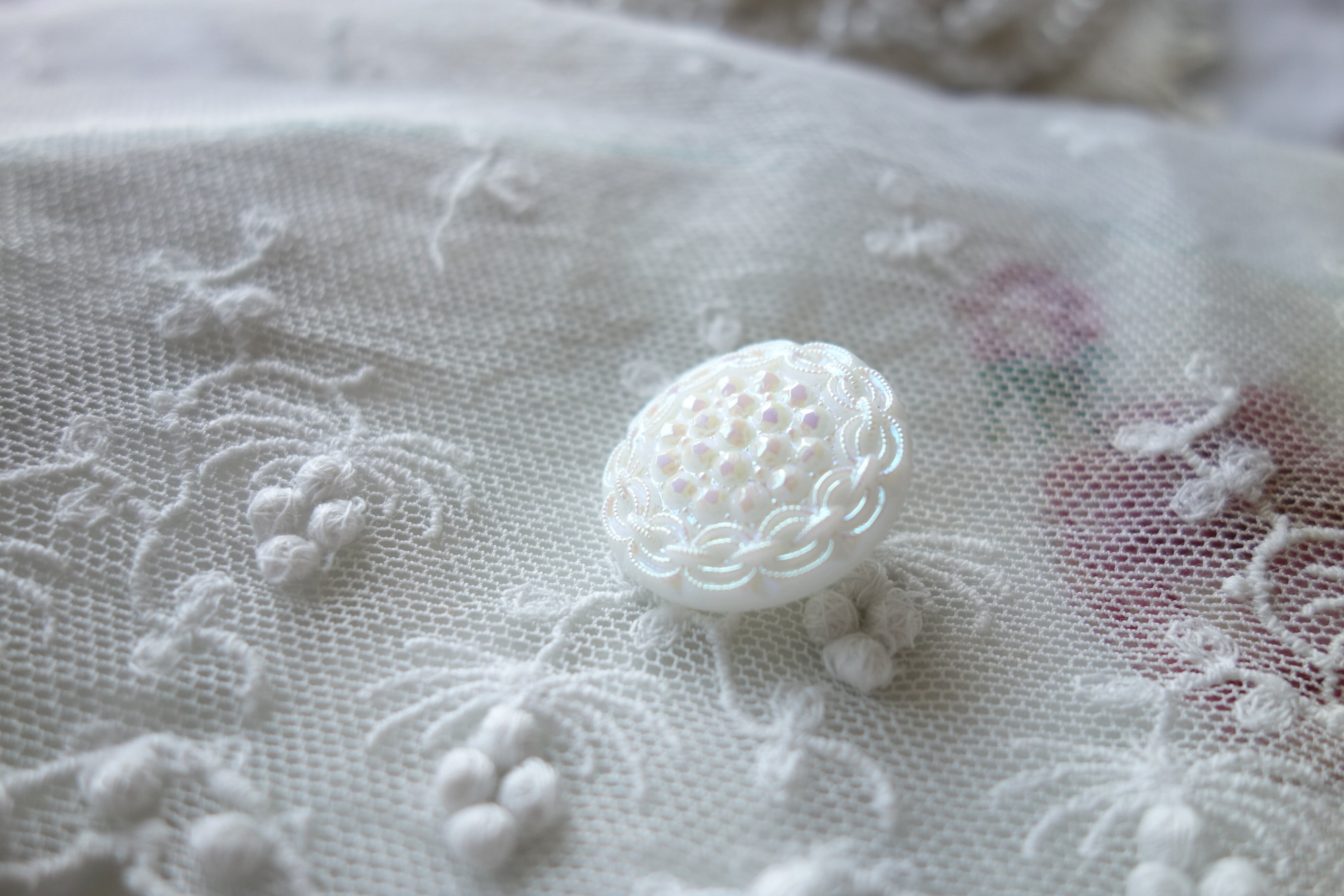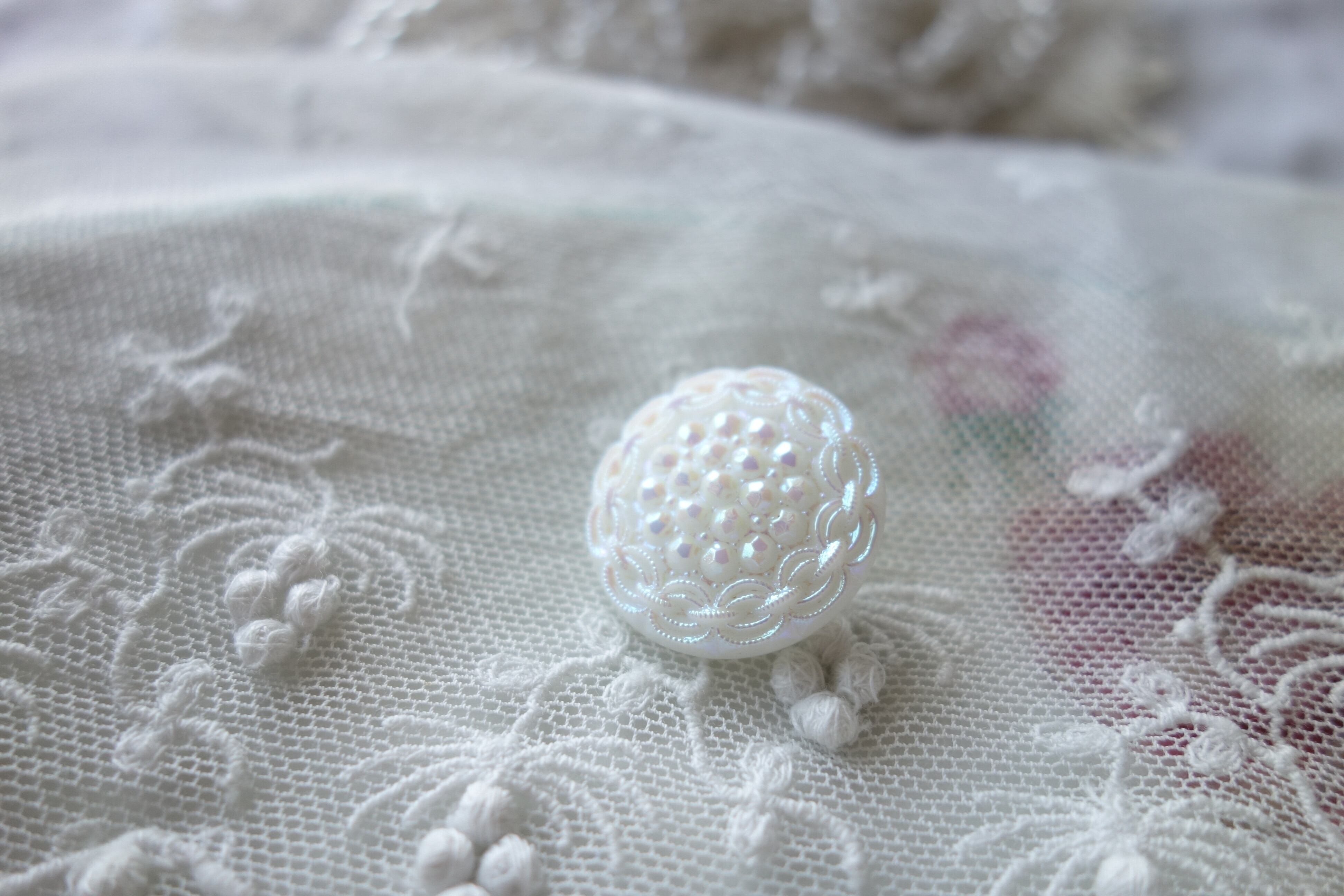 白いガラスボタンにフラワーデザイン
