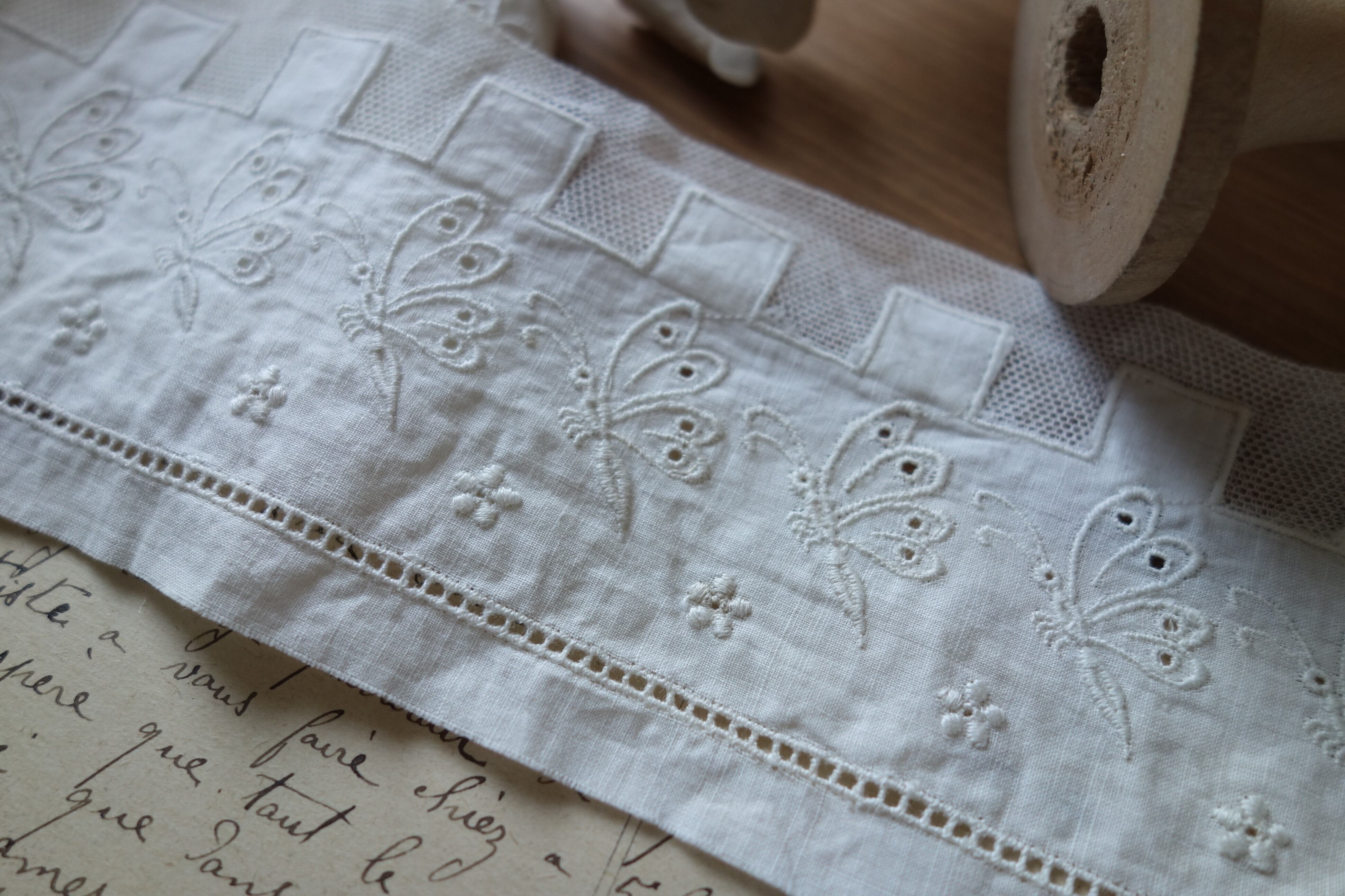 蝶モチーフ アンティーク刺繍レース C449