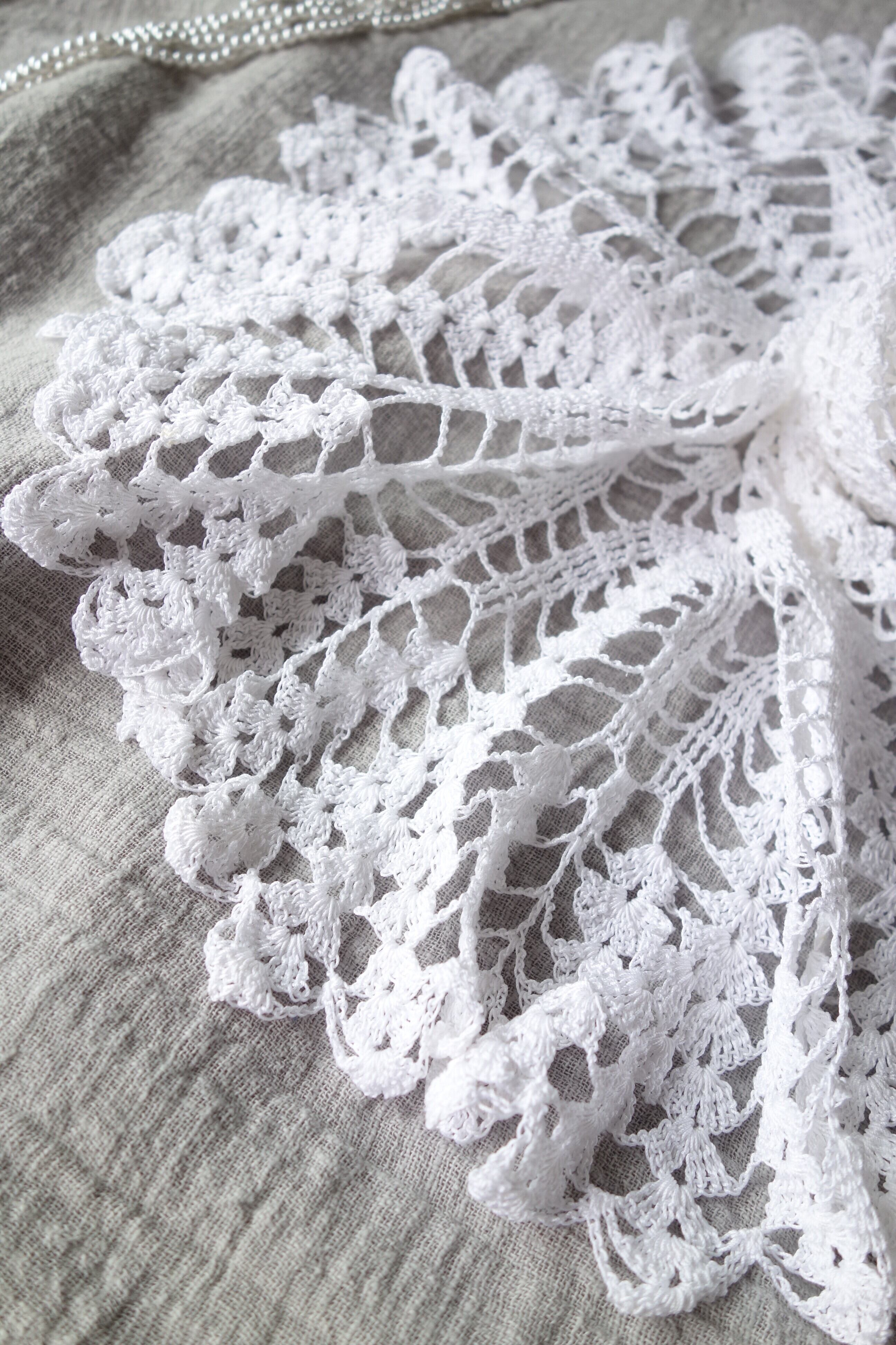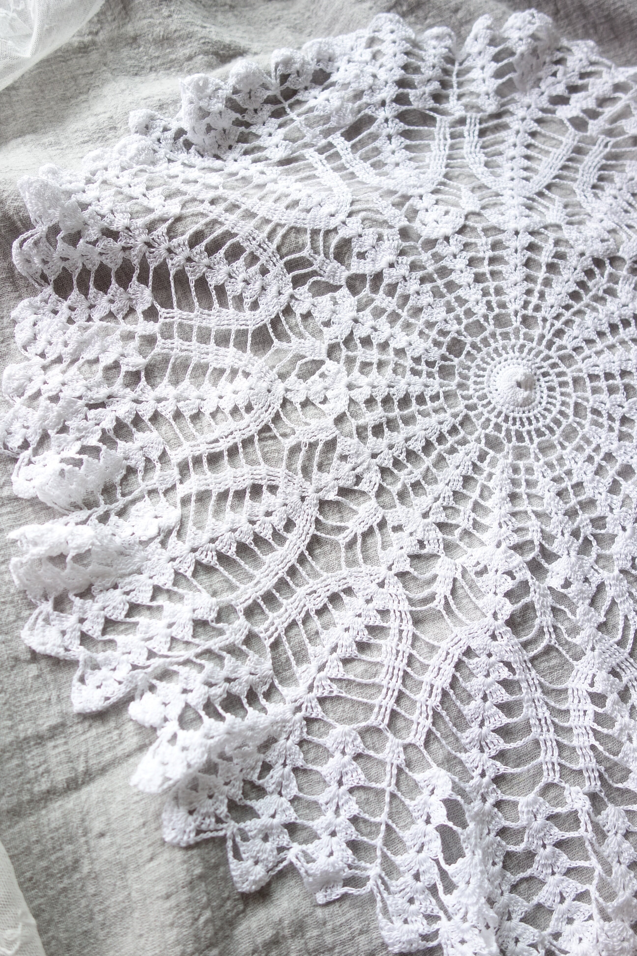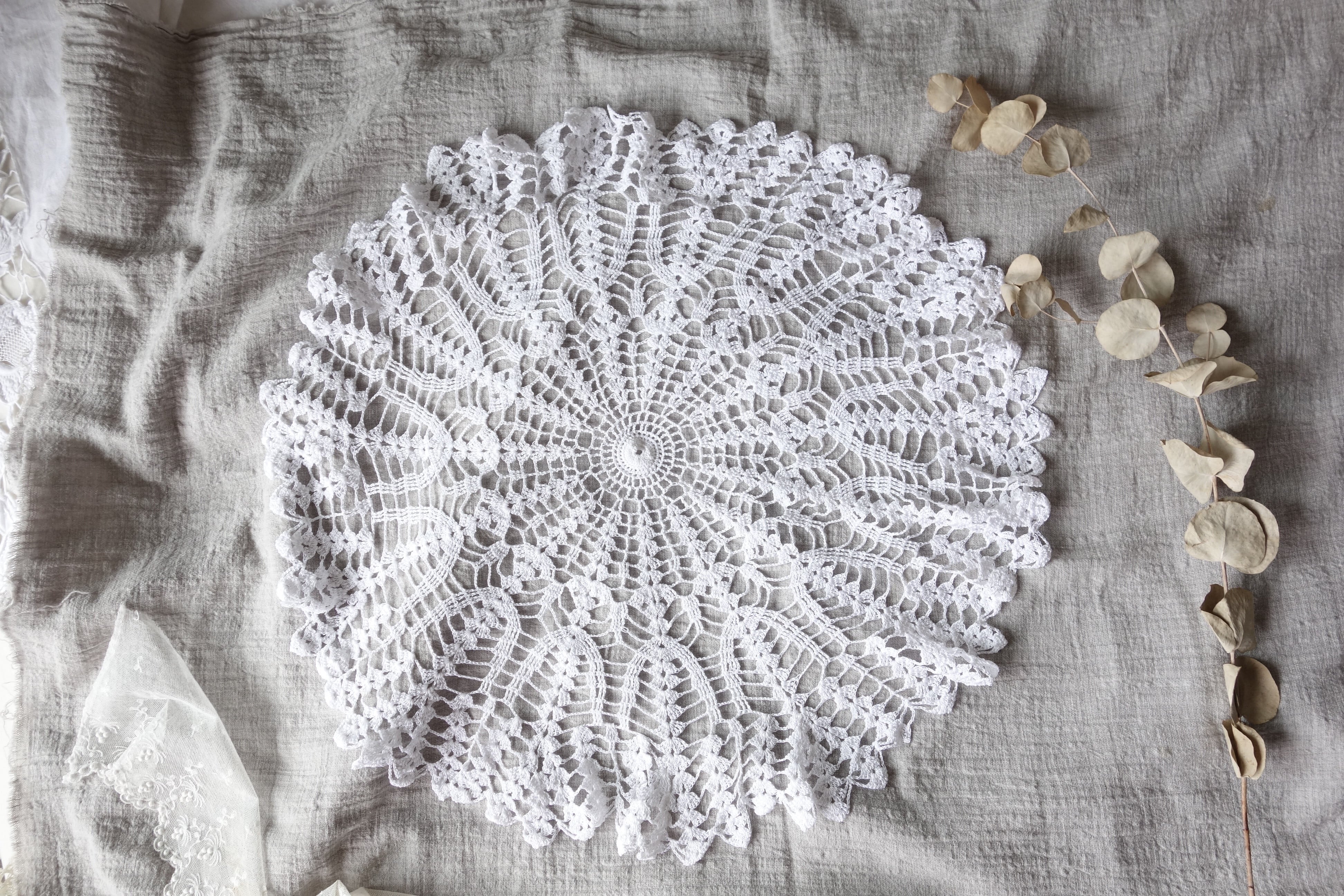 50㎝ アンティーク手編みレースドイリー B285 ホワイト