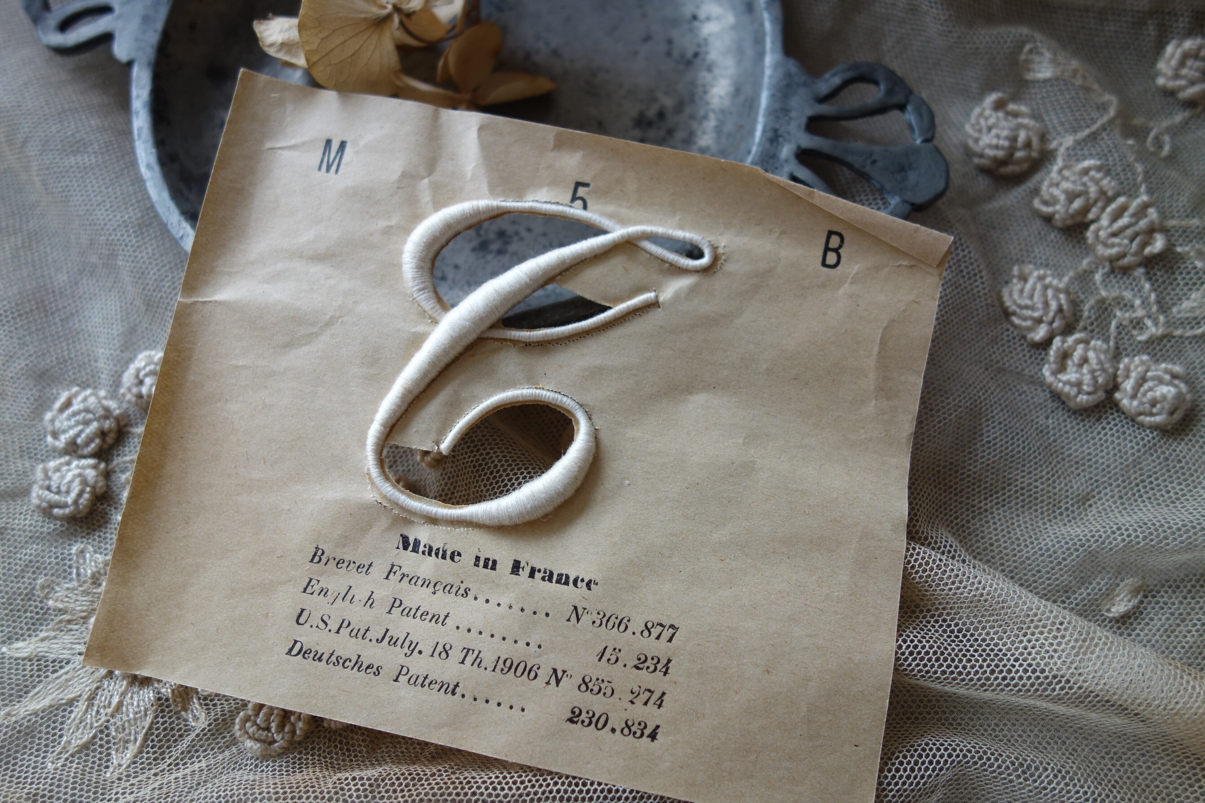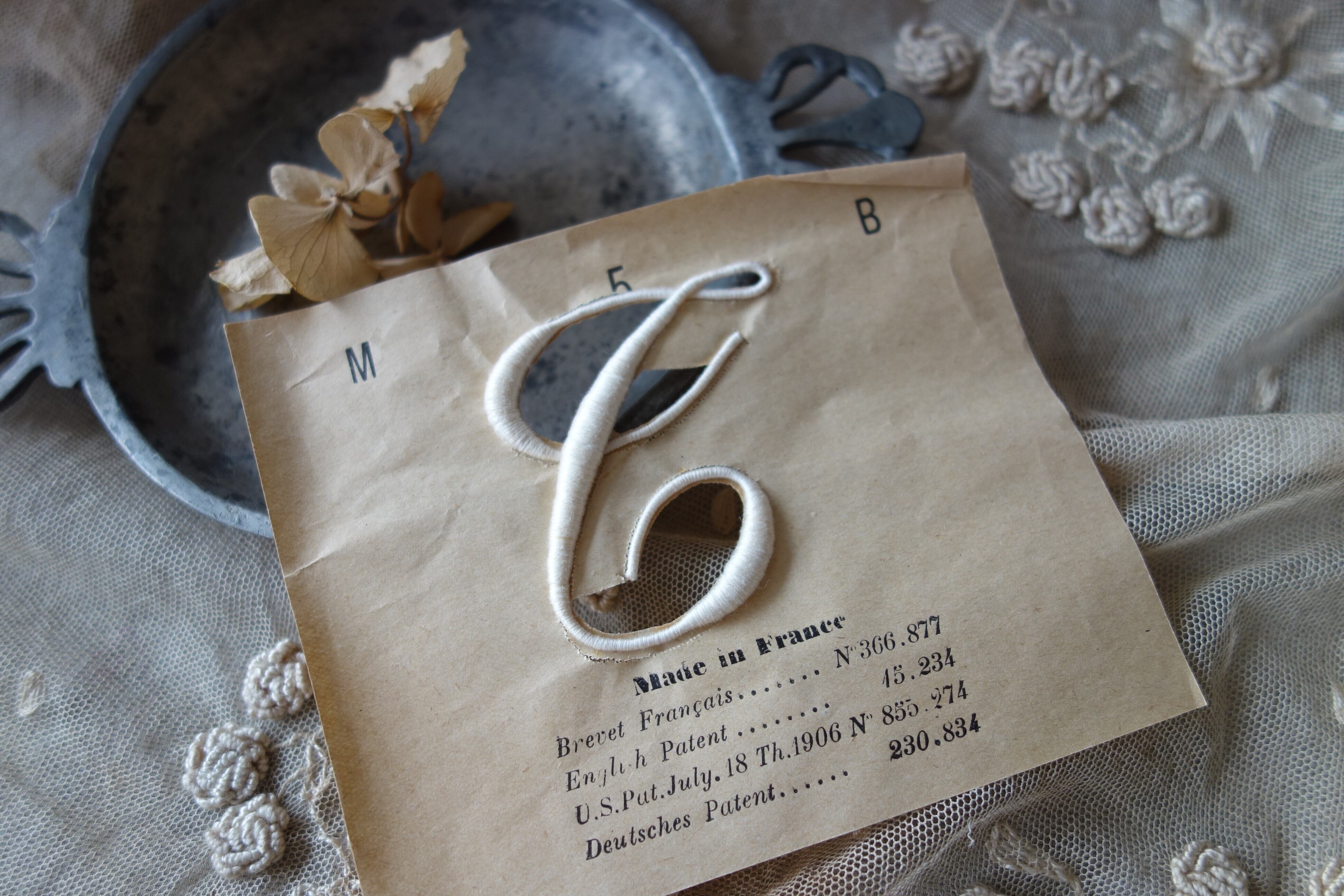 France製 アンティーク モノグラム刺繍イニシャル D075