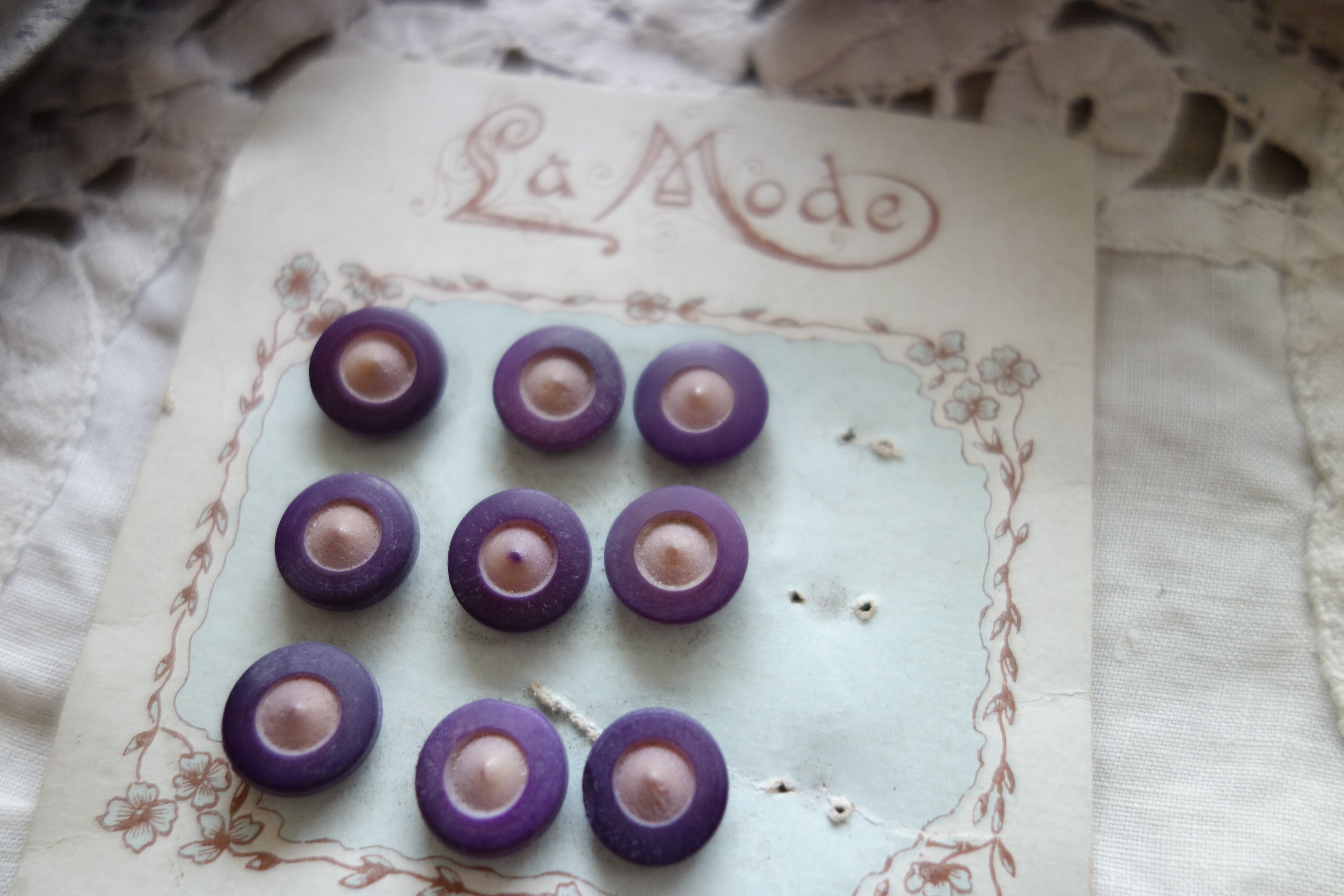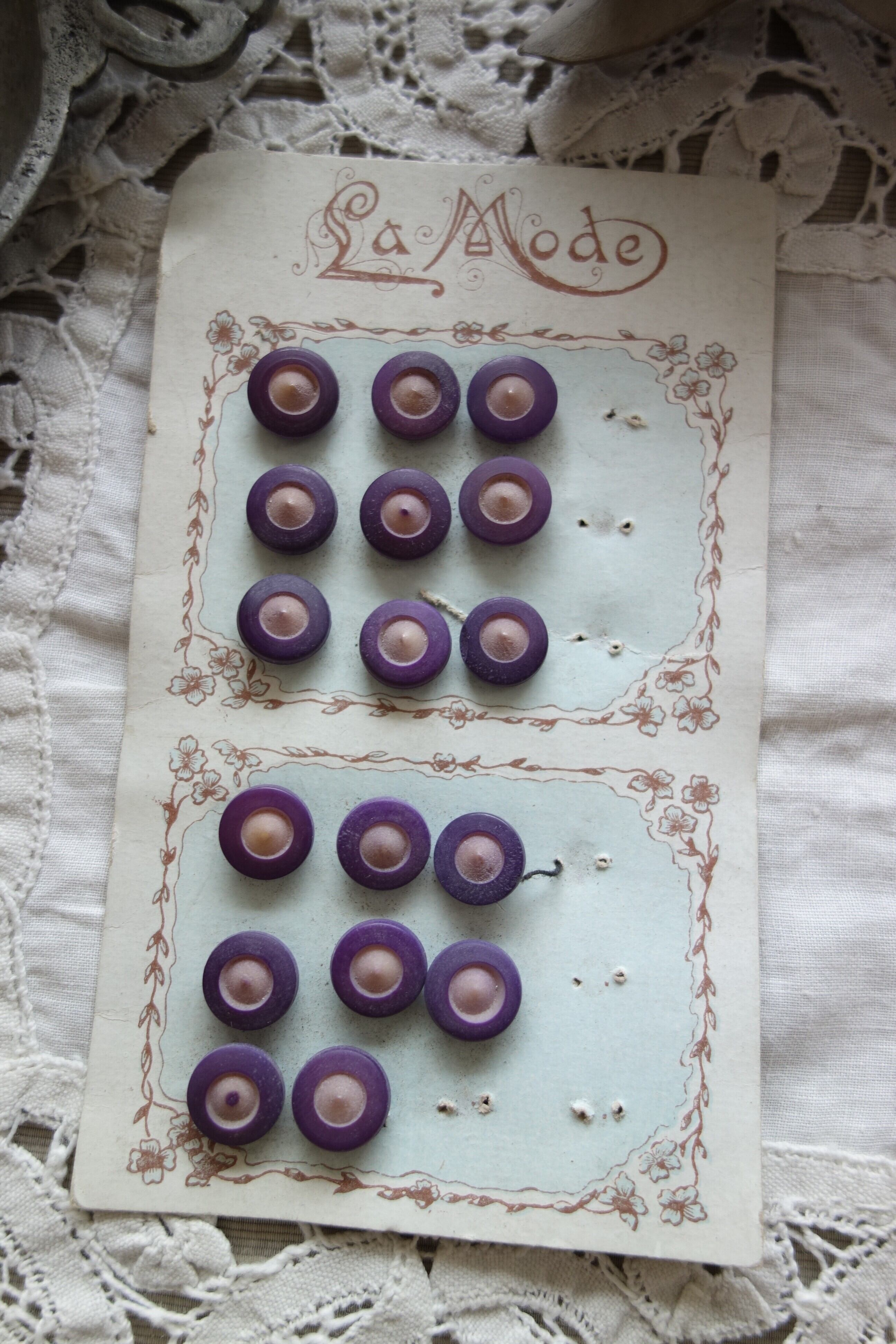 France製 アンティークミニボタン シート付 A941 パープル