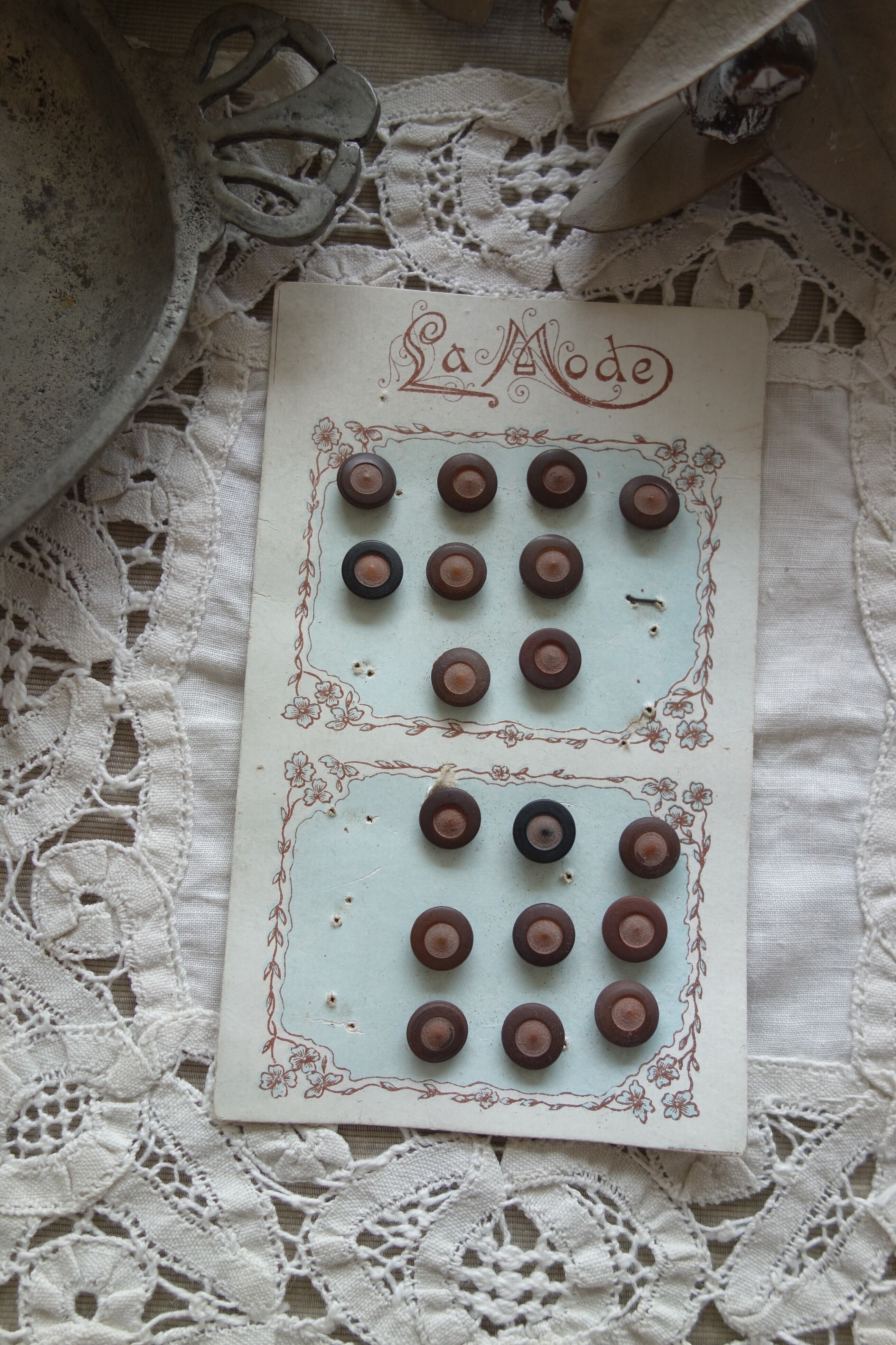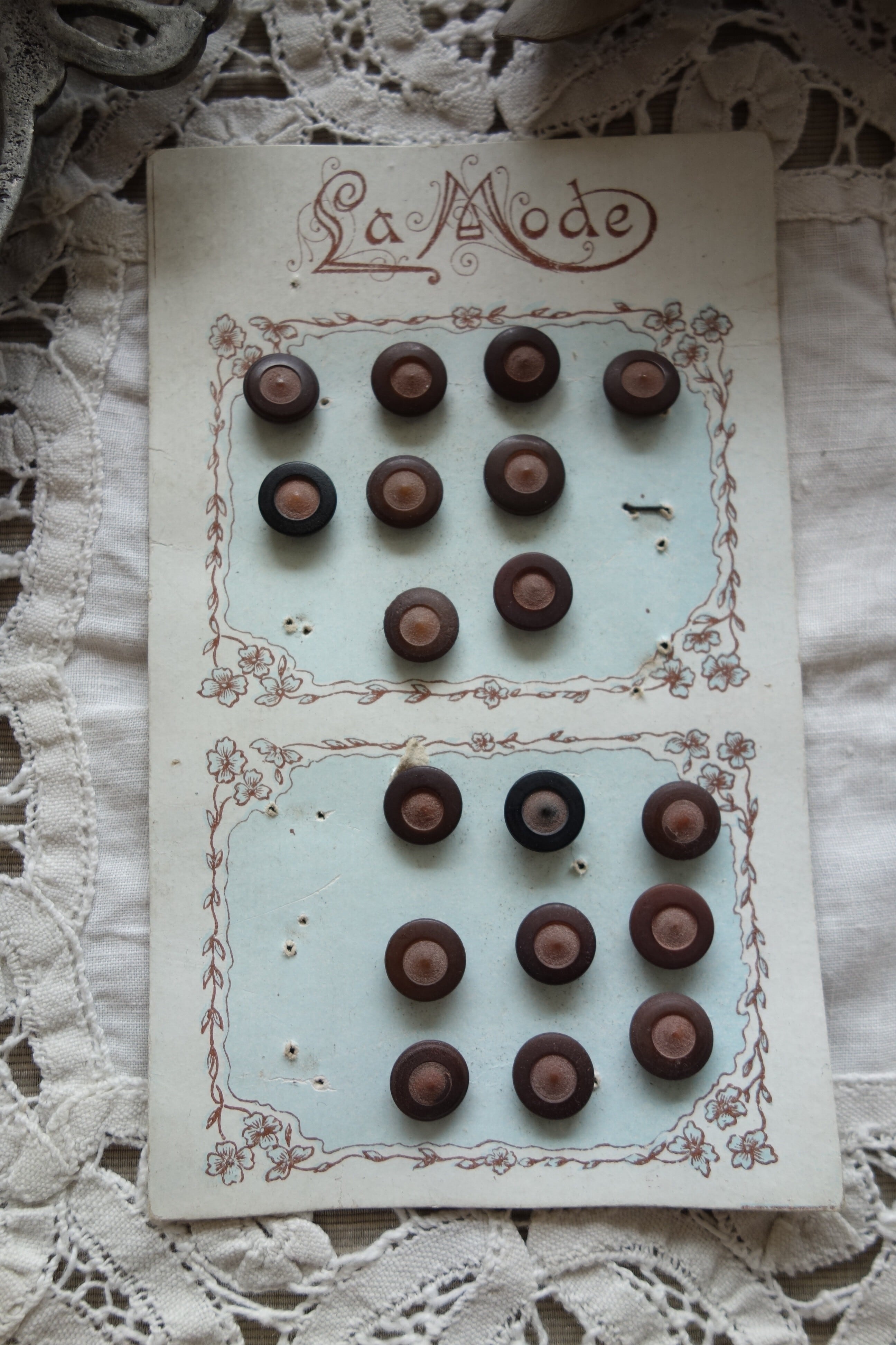 France製 アンティークミニボタン シート付 A942 ブラウン