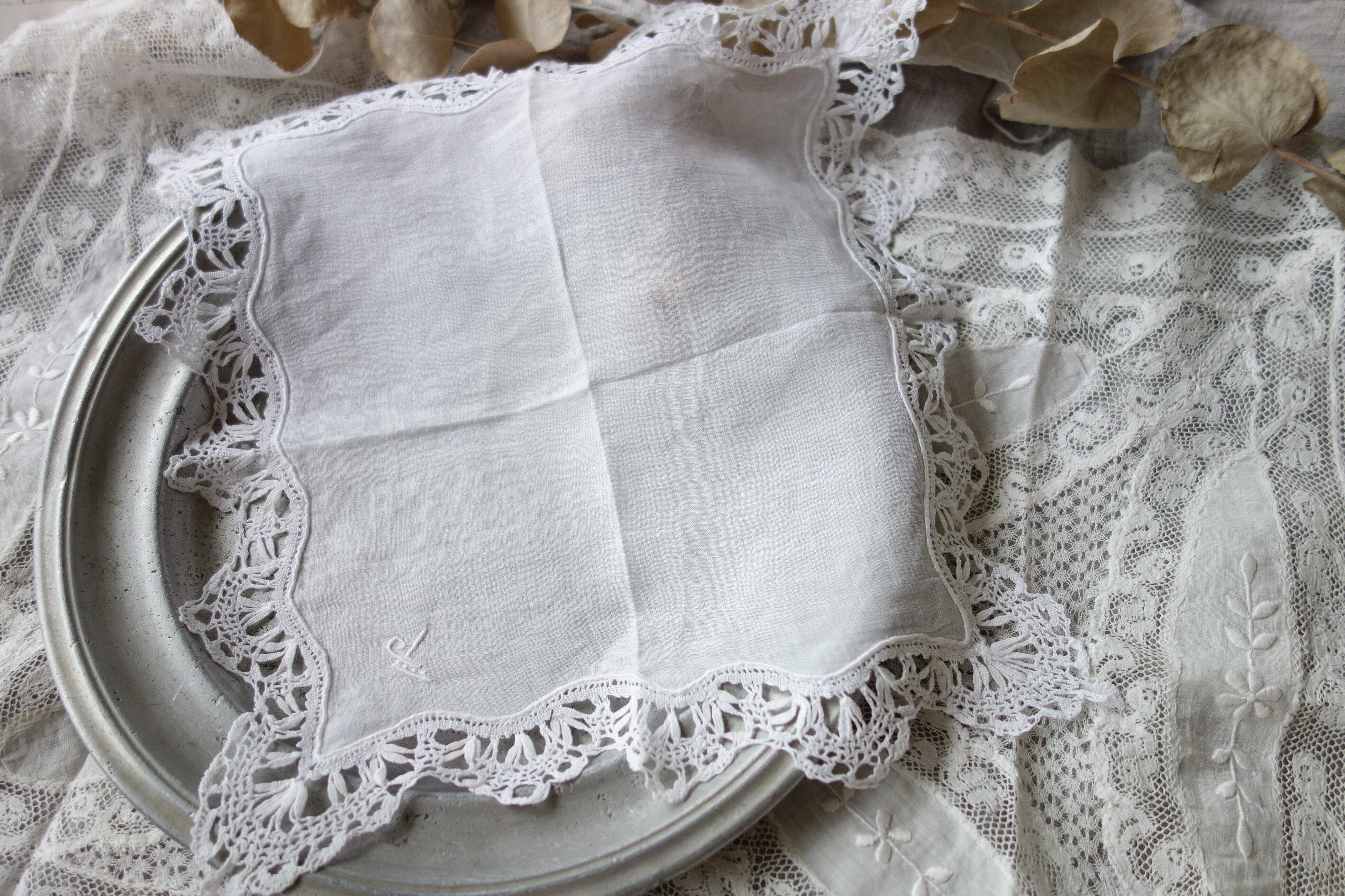 France製 アンティークレースハンカチ B299