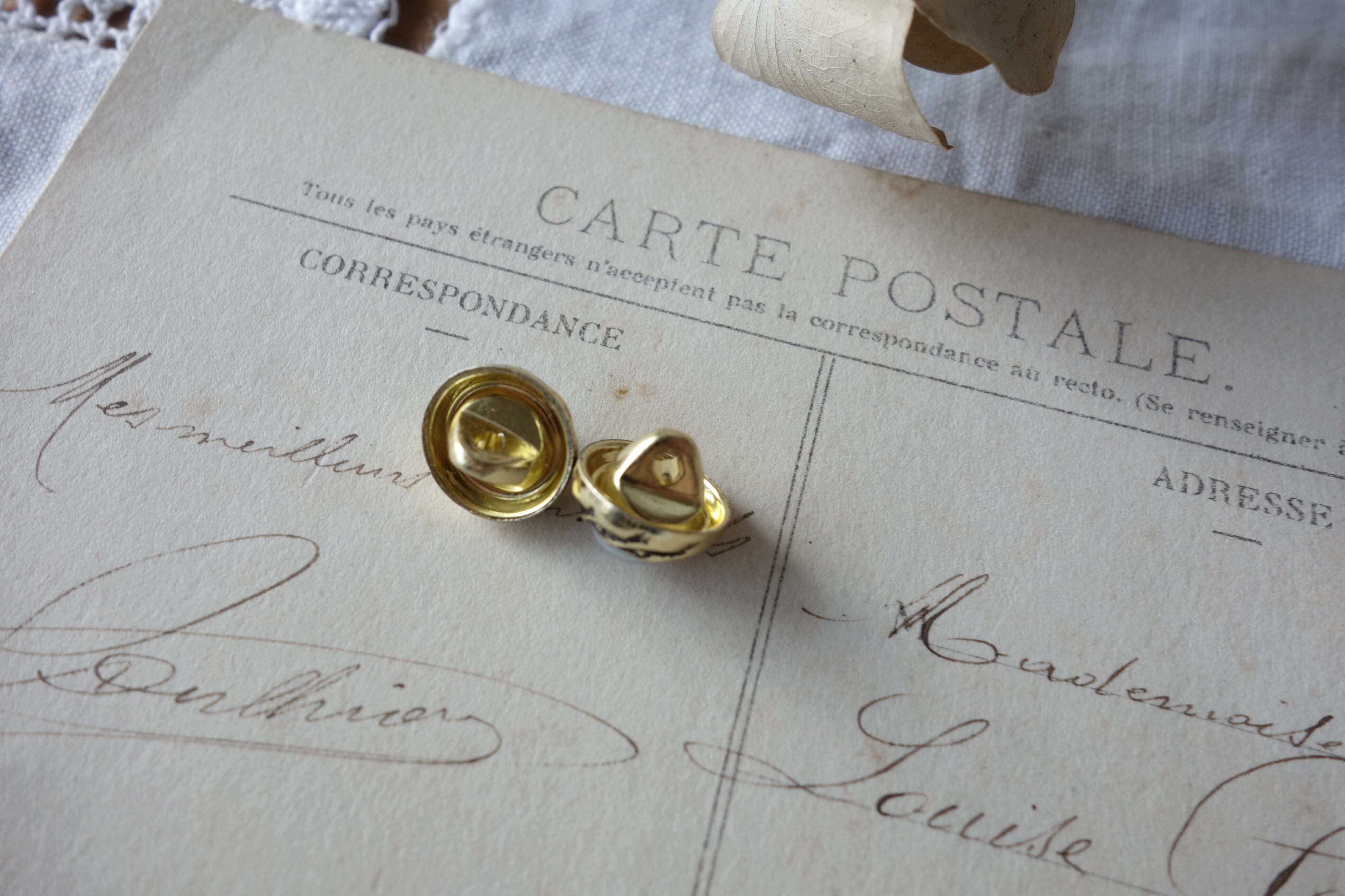 フランス 2個 11㎜ アンティークボタン A953 ゴールド