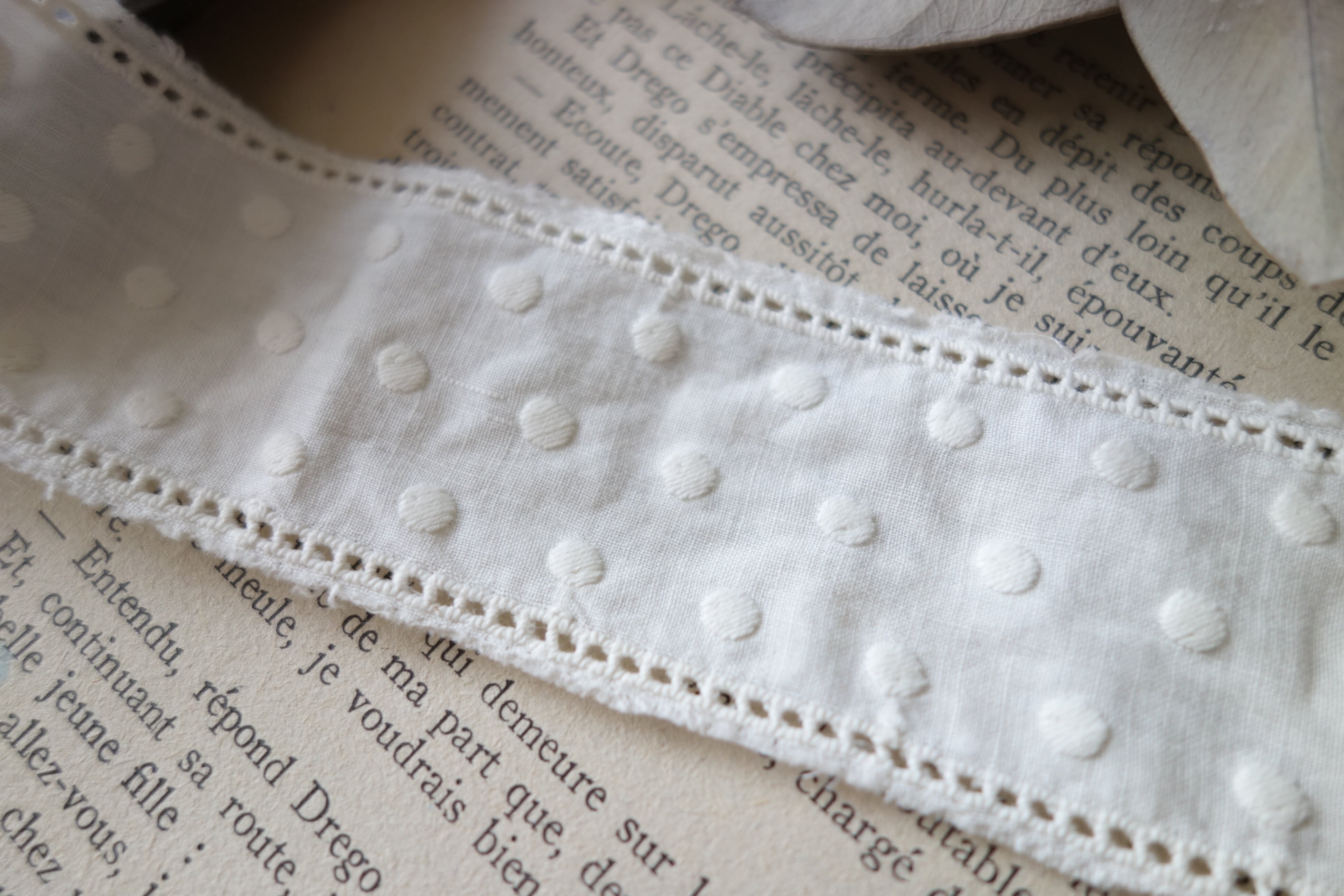 France製 33㎝ アンティークレース B319 ドット柄 アイボリー
