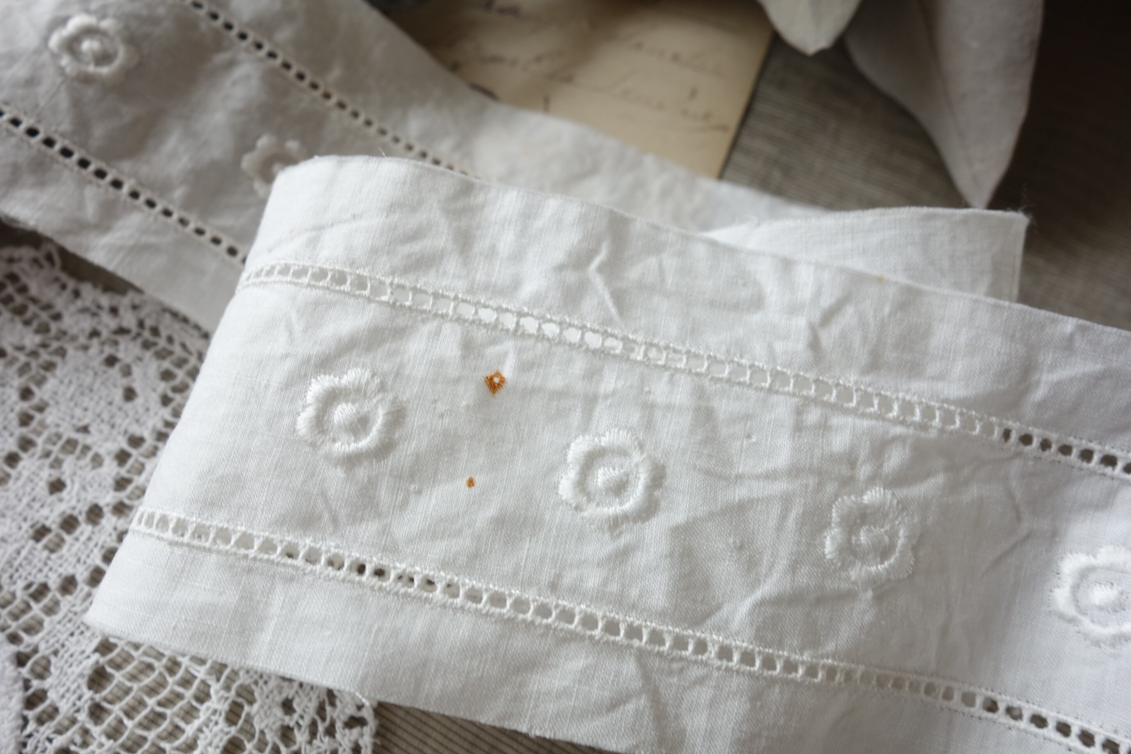 France製 40㎝ アンティーク刺繍レース B320 アイボリー