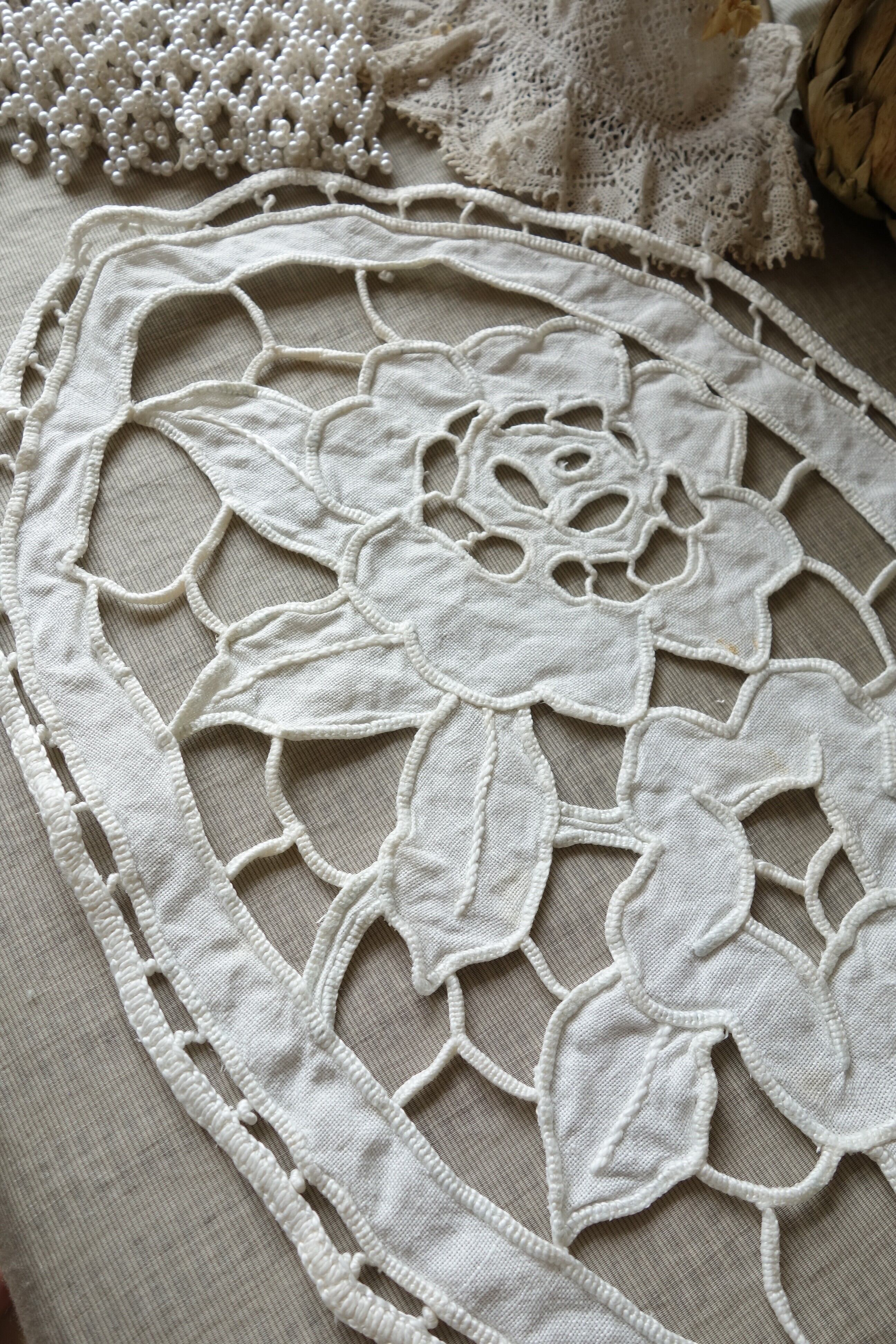 カットワーク刺繍の楕円刺繍ドイリー