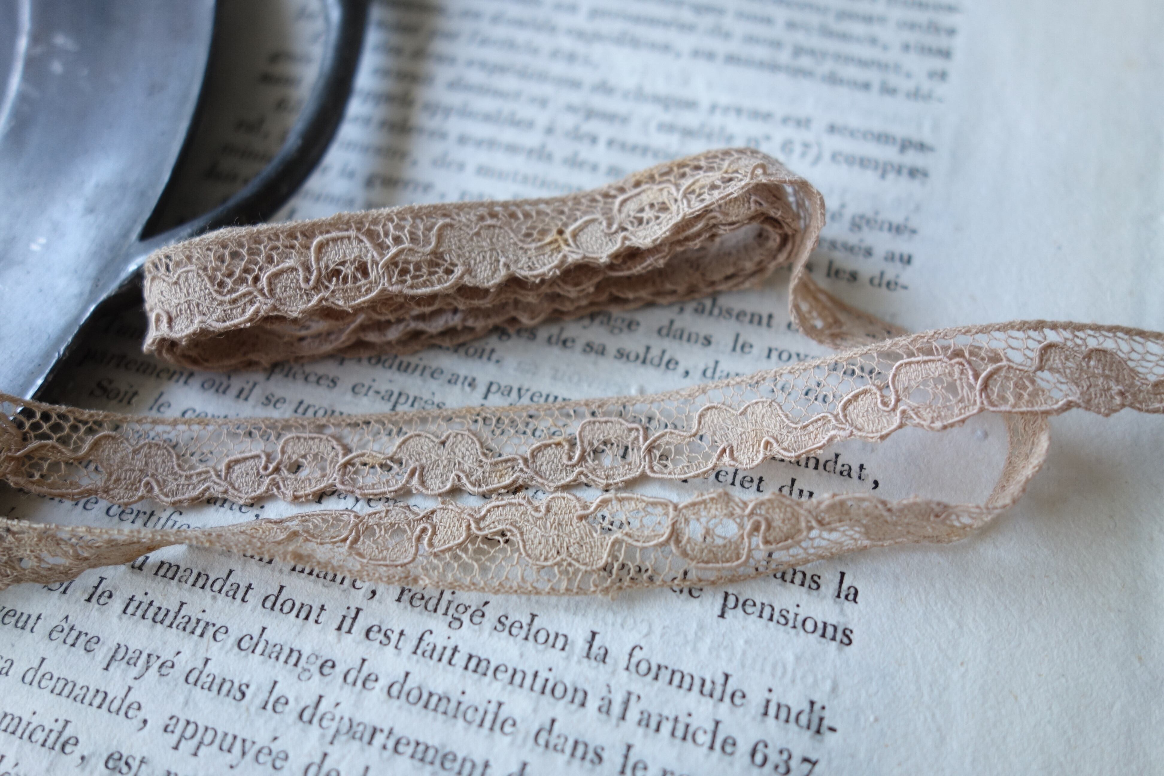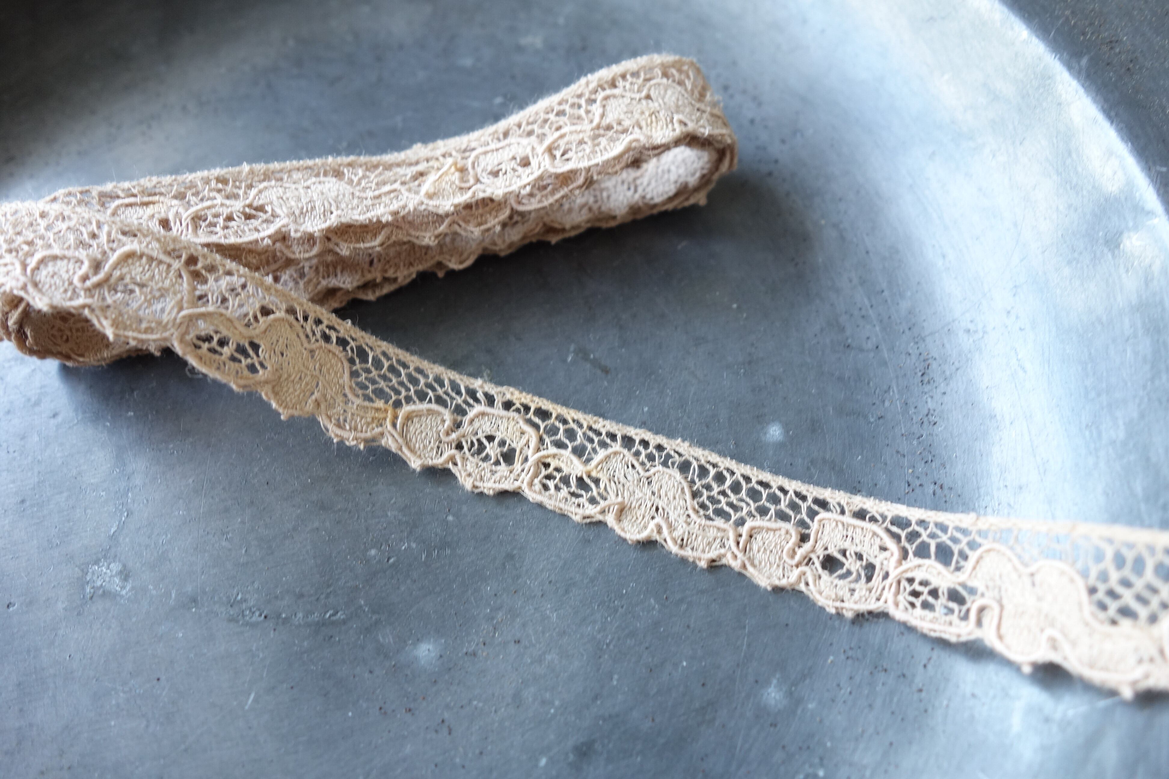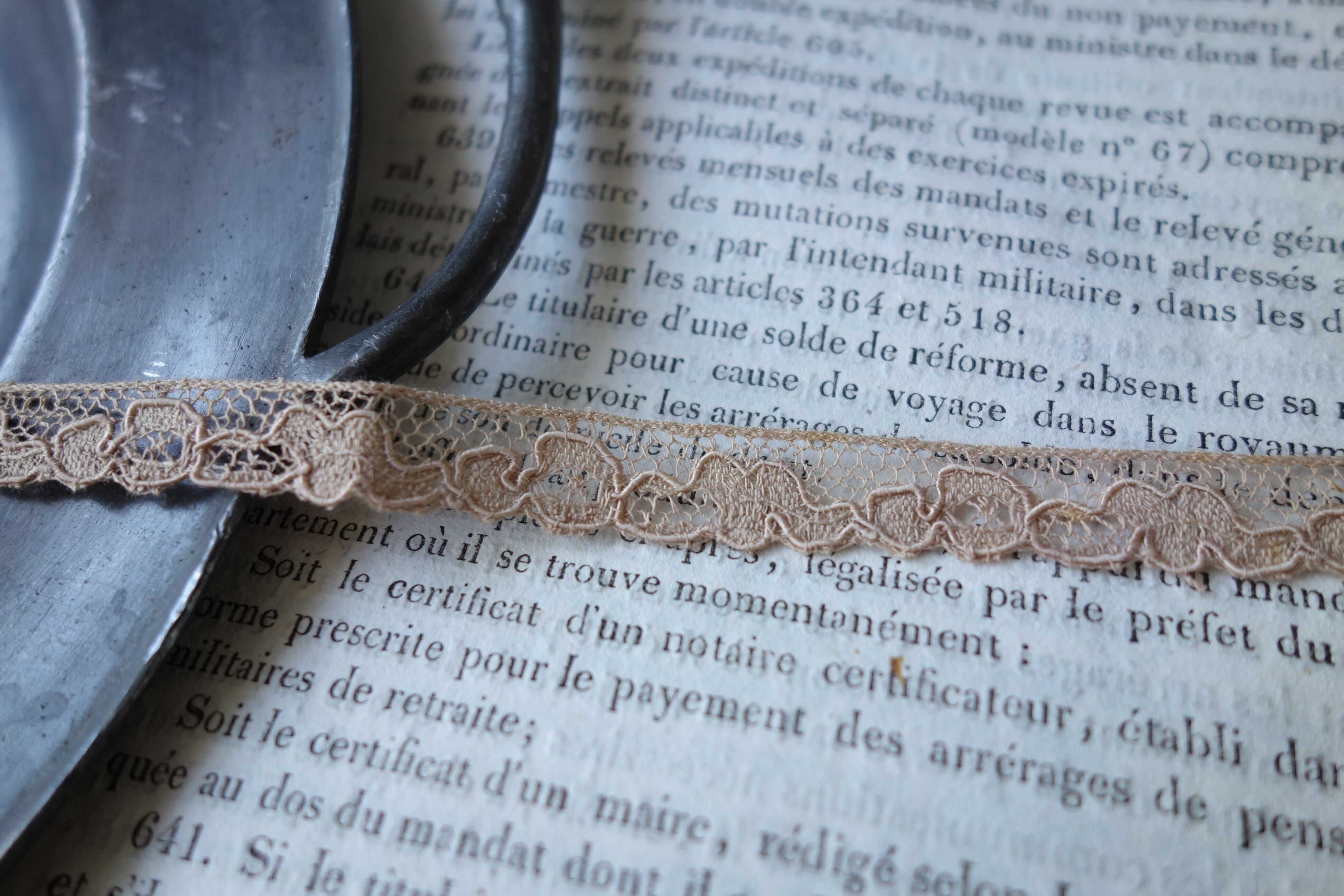 フランス 30㎝ アンティーク刺繍レース C478 ココアブラウン